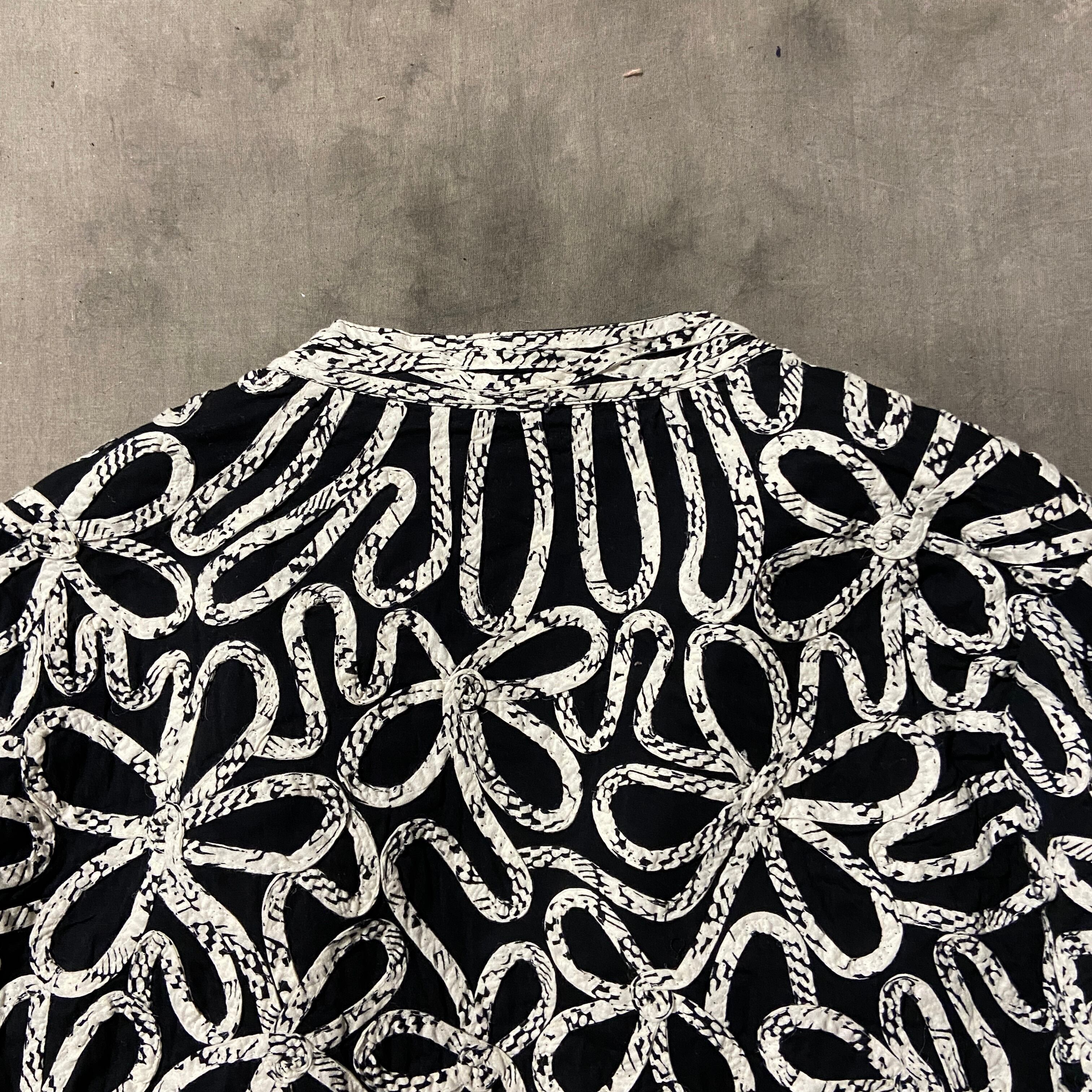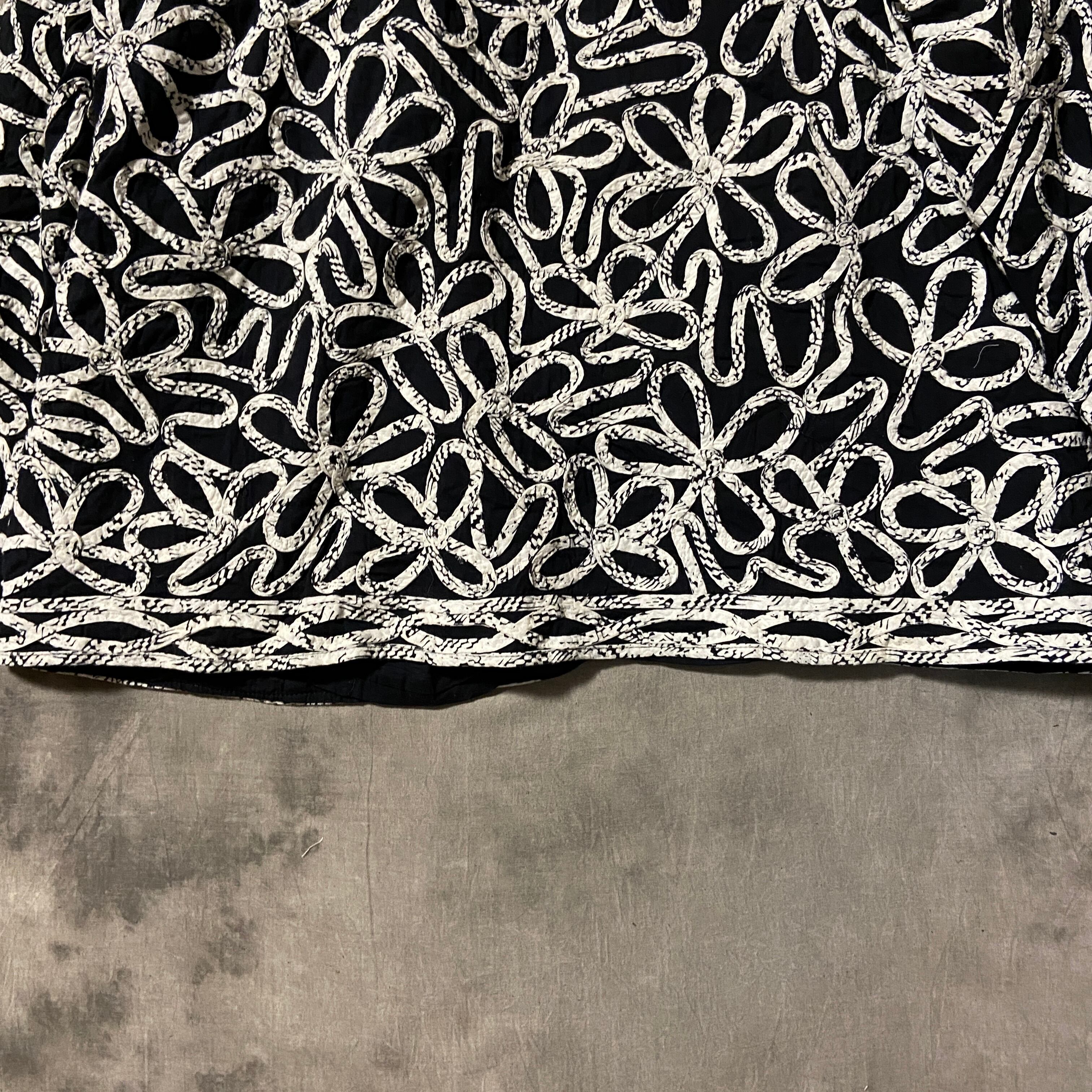 黒地に丁寧に縫い付けられたフラワーデザインが手の込んだ1着。