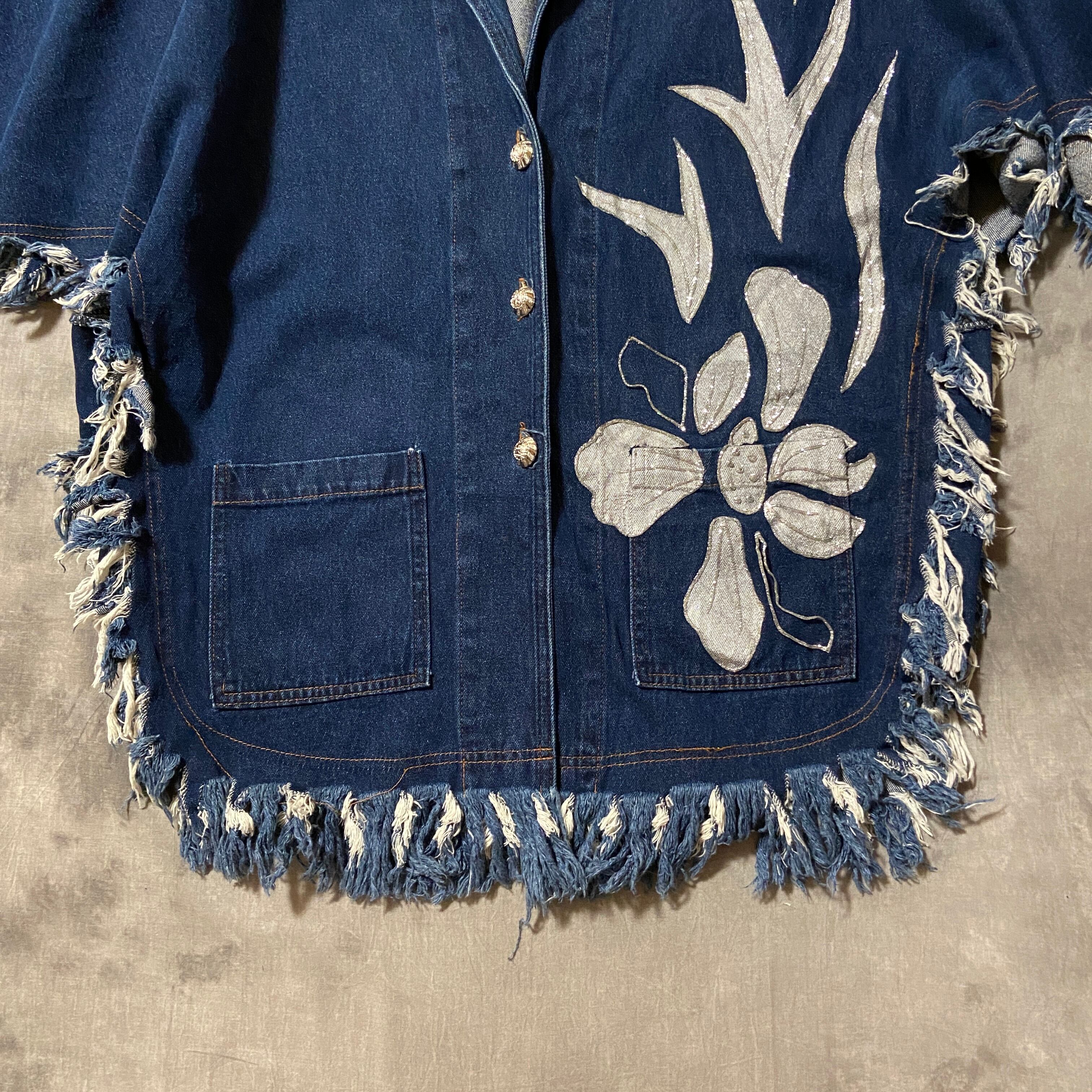 袖丈55cm(首元から採寸)、身幅62cm、着丈90cm(内フリンジ8cm)