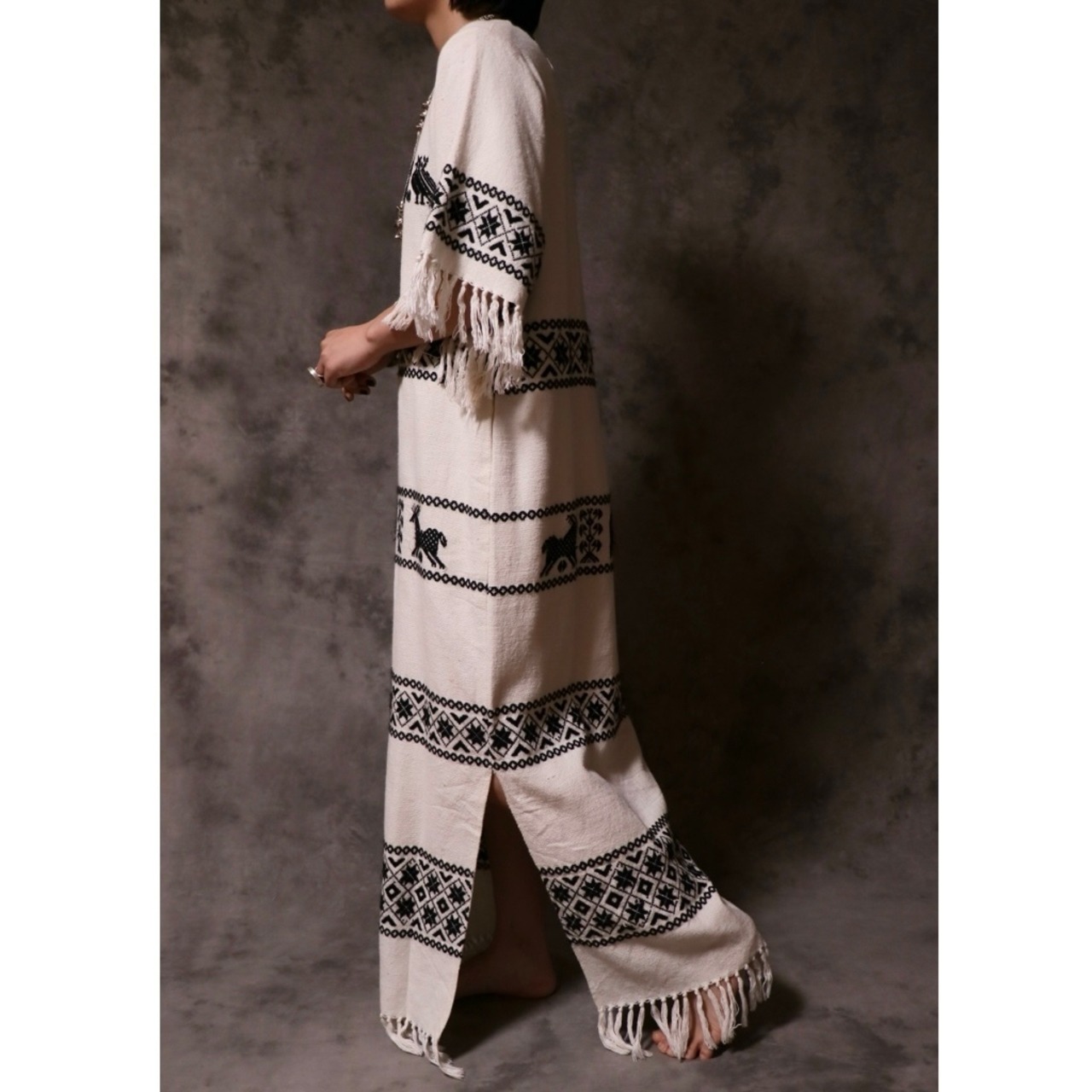肩幅41cm、身幅48cm、袖丈36cm(内約6cmフリンジ)、着丈136cm(内約6cmフリンジ)