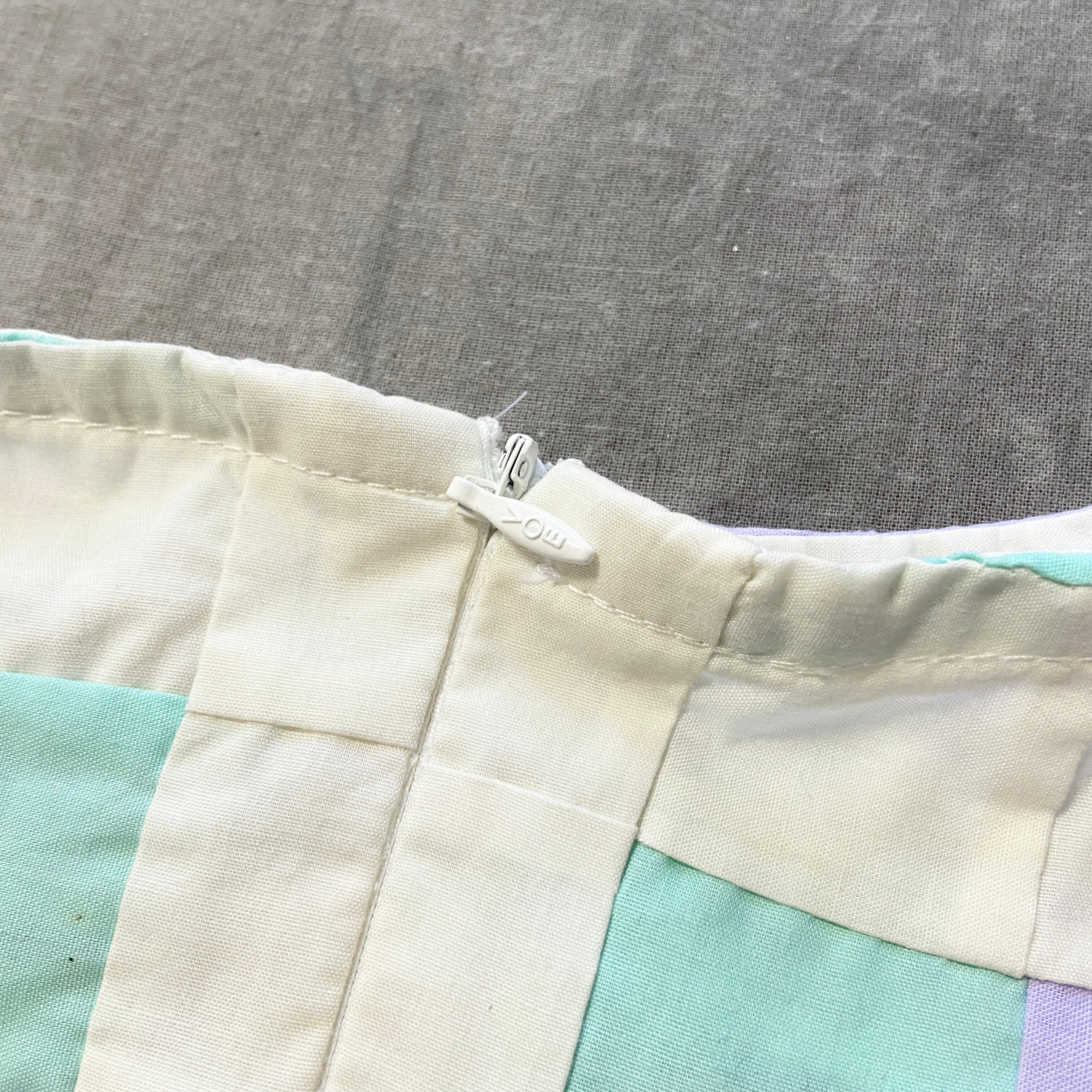 可愛らしくなりすぎない珍しいデザインの配色と形のパッチワーク。