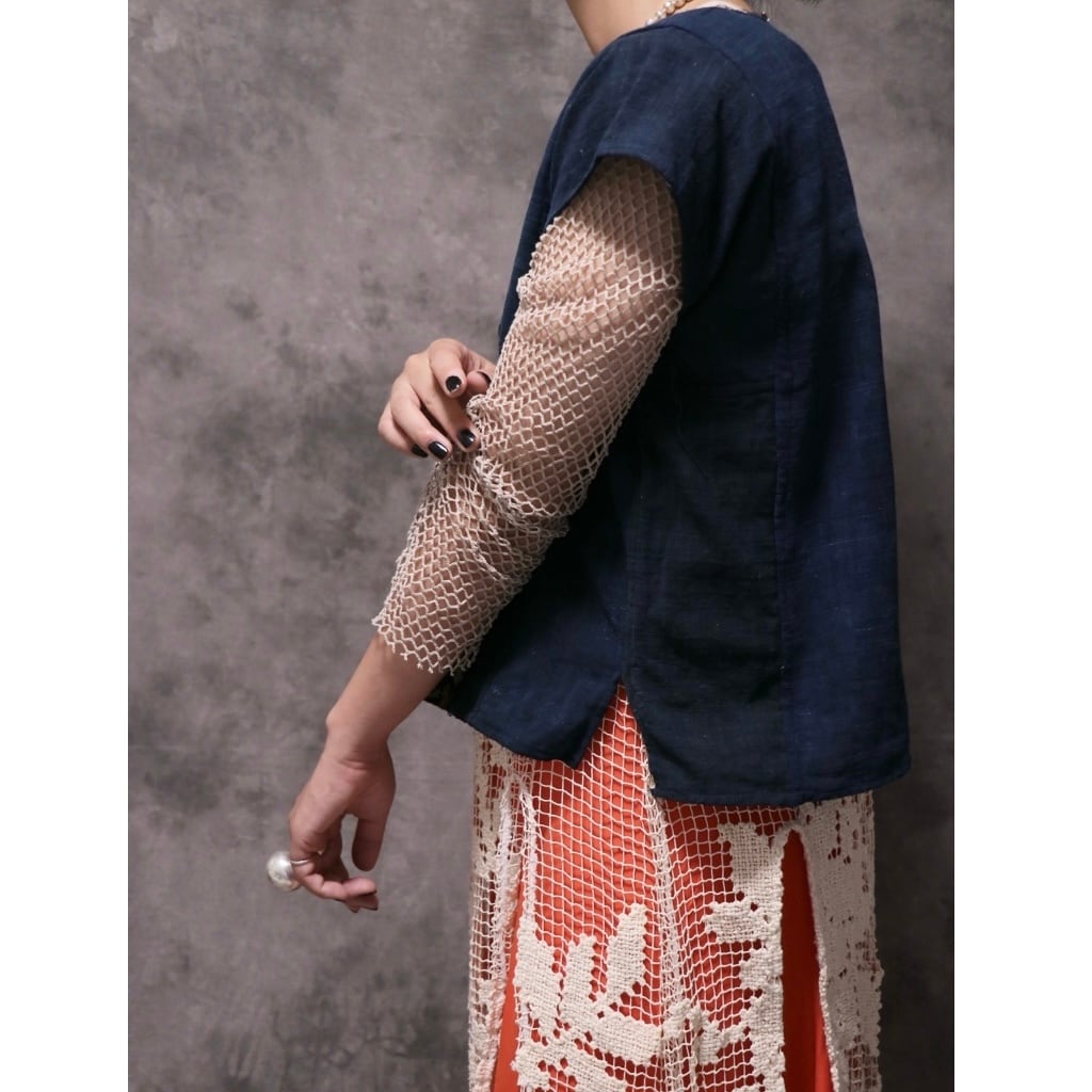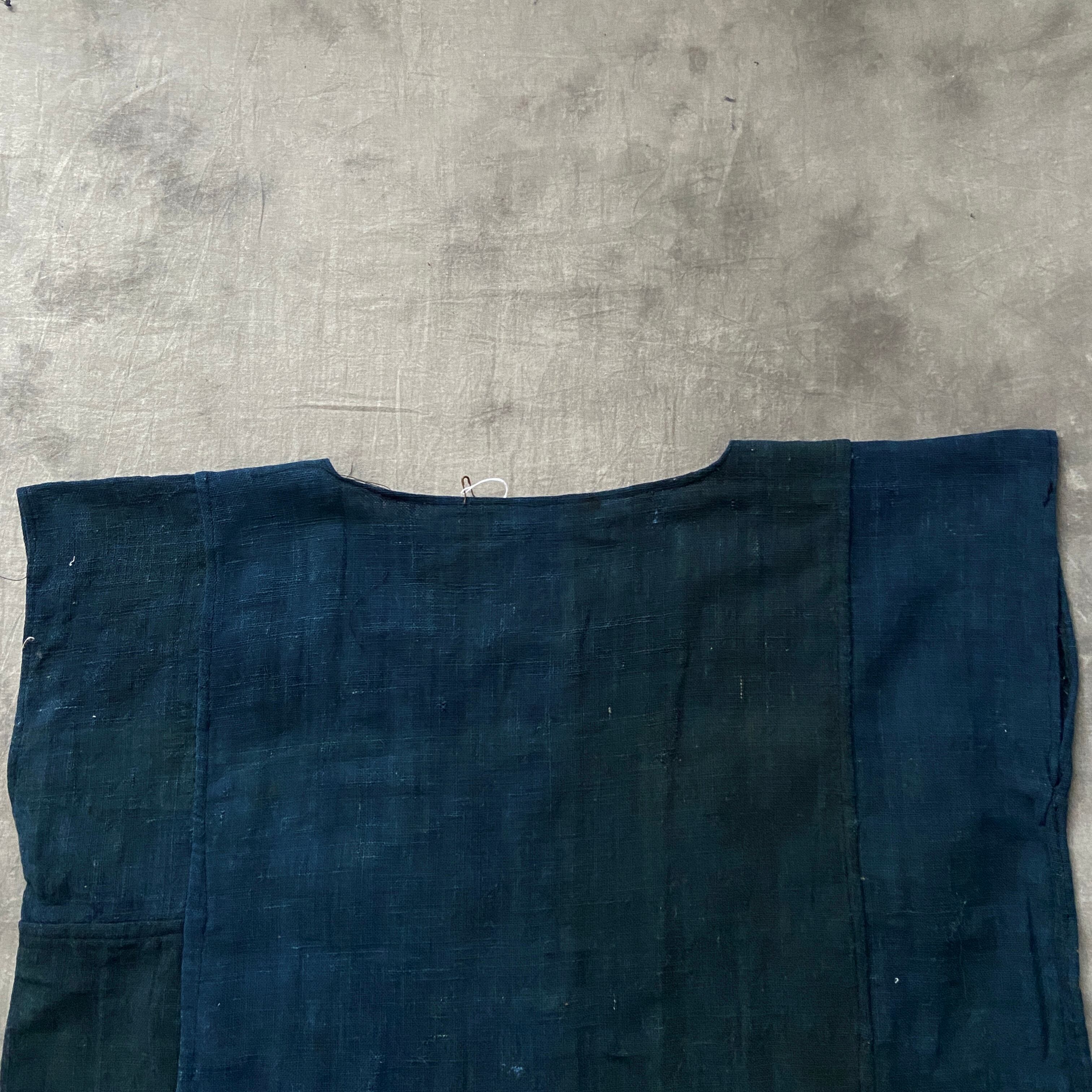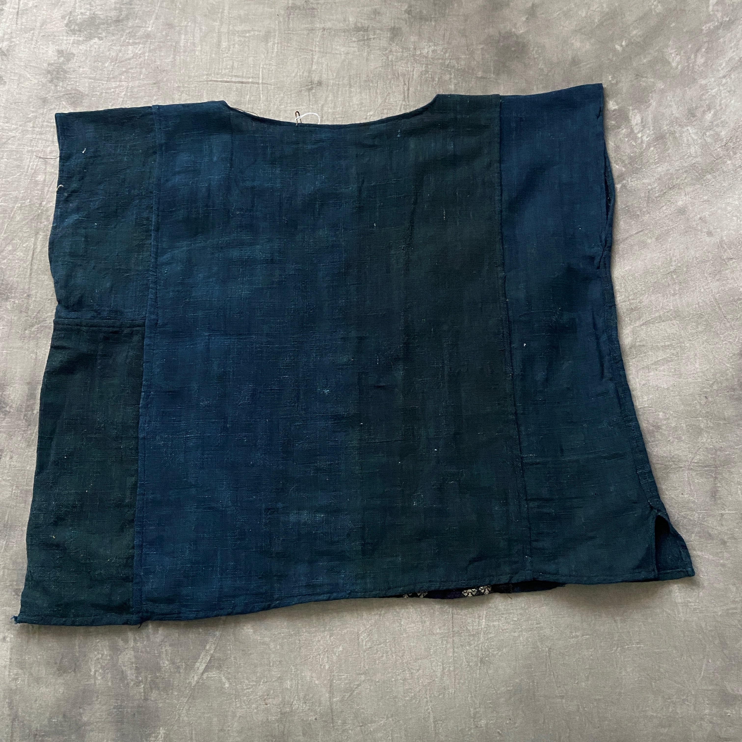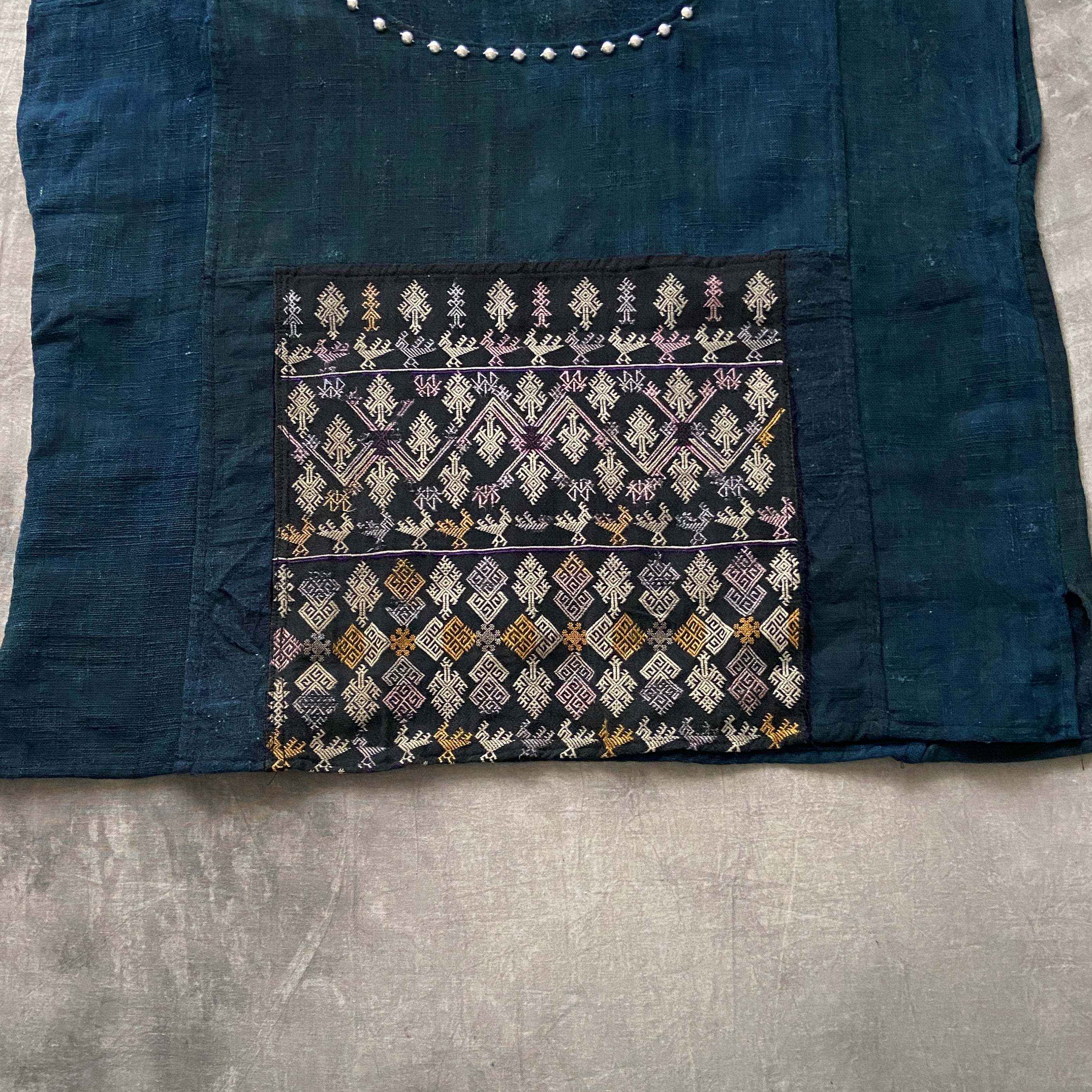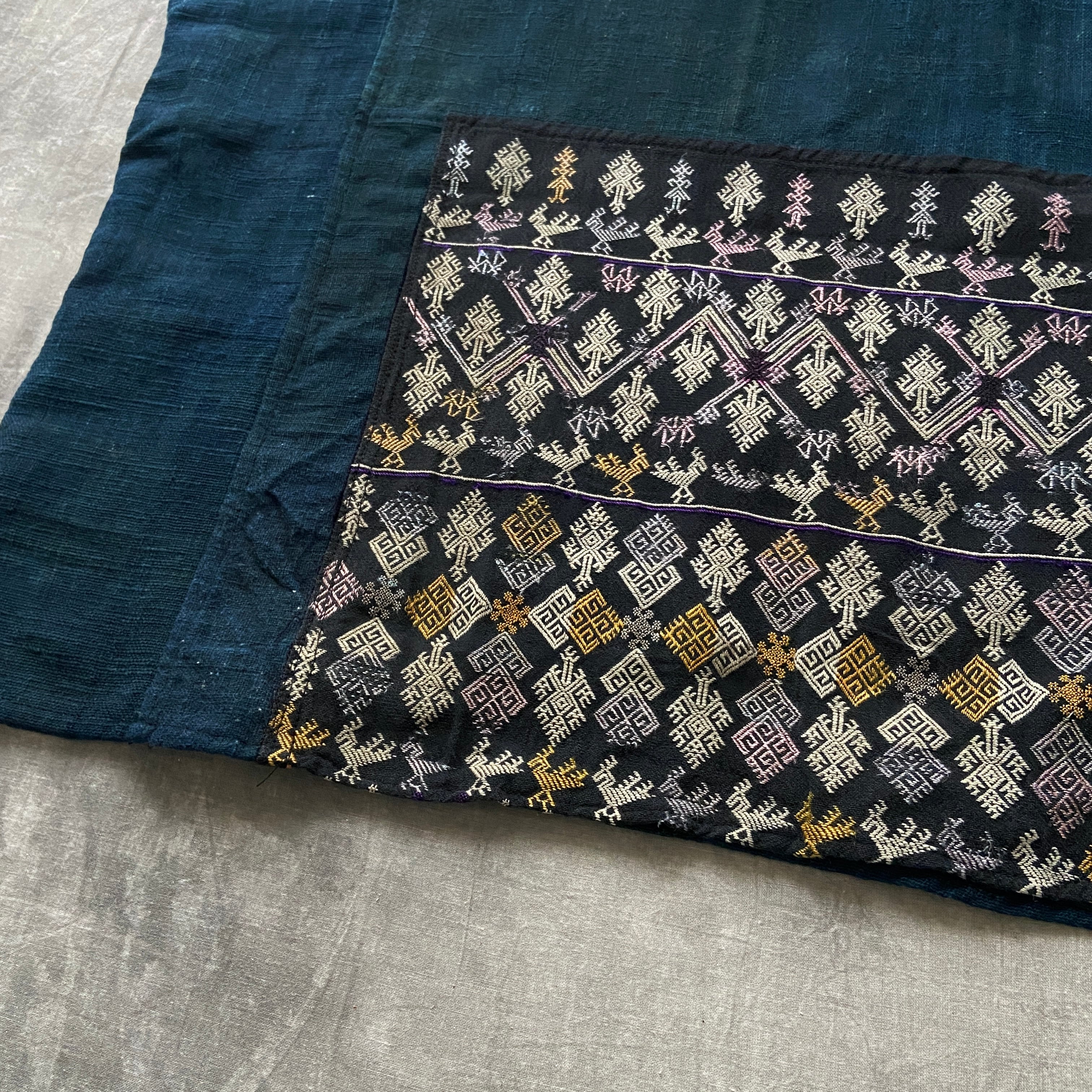 深く染められた美しい藍染の生地に細かい手刺繍。
