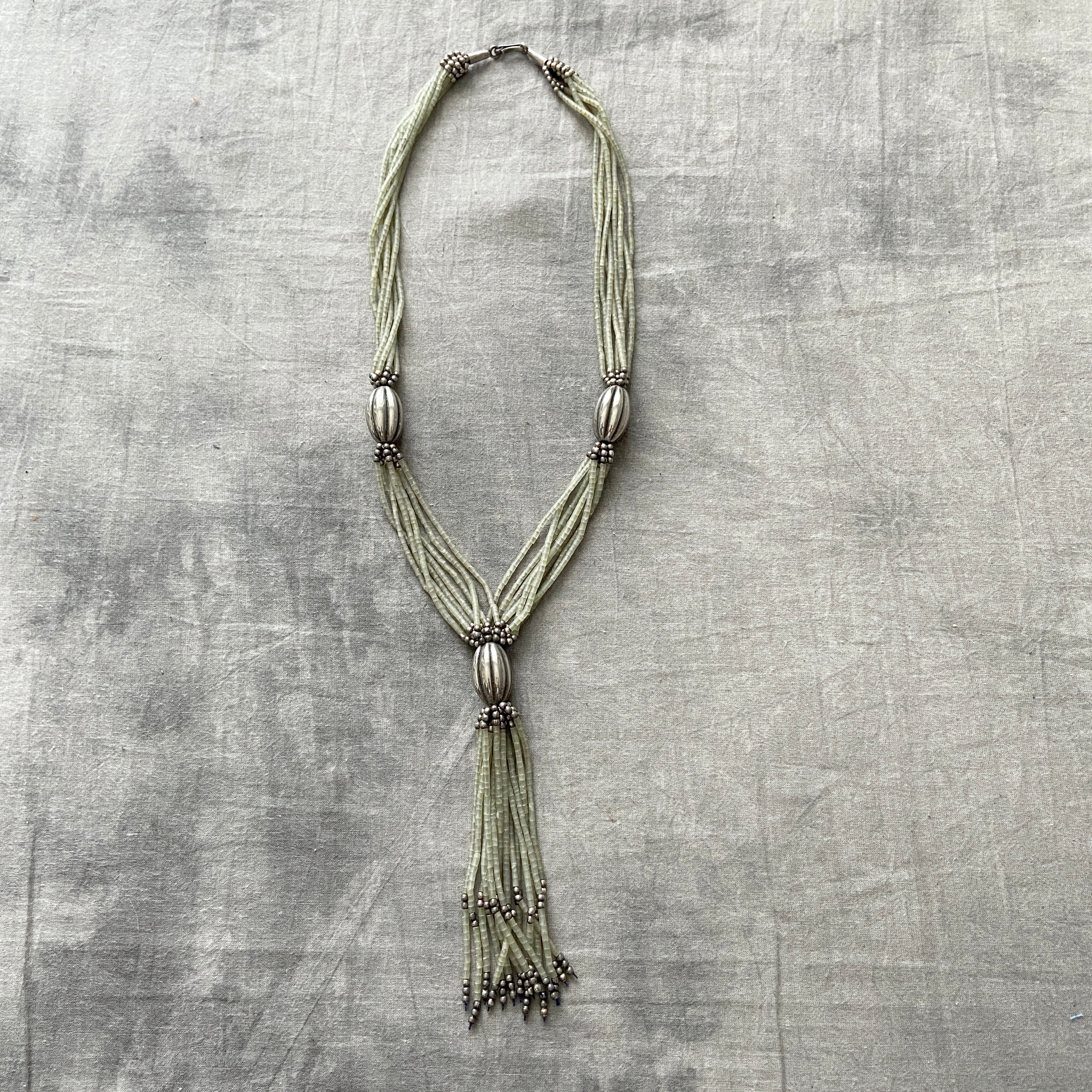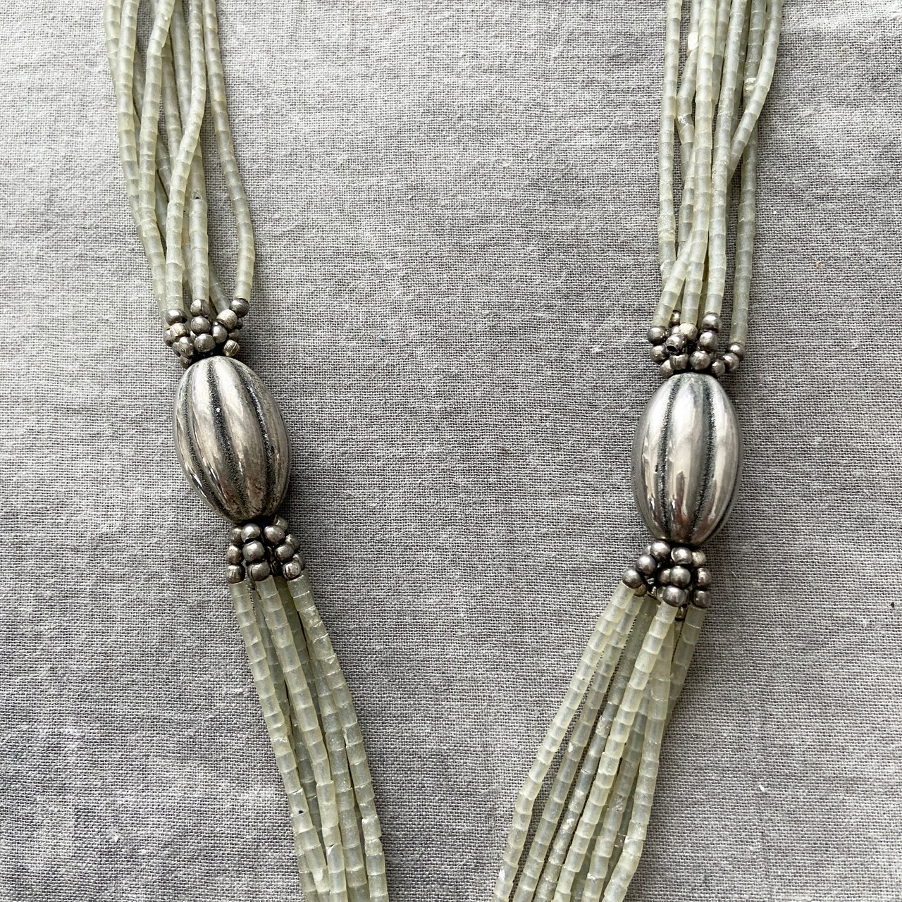 薄ーいカーキっぽい色の部分は全て天然翡翠の細かなビーズ。