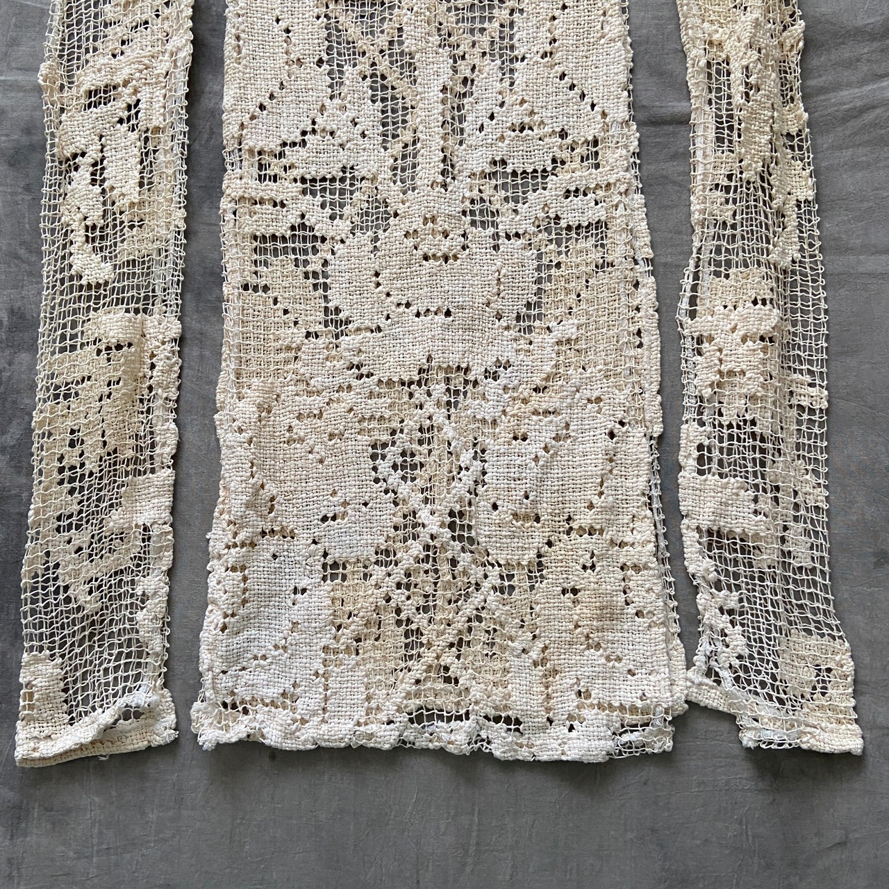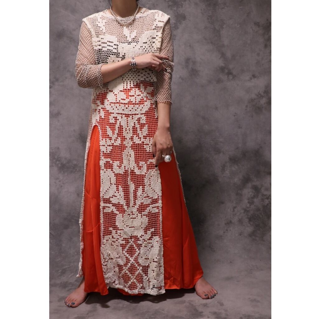 ヨーロッパの古いフィレレースを使用してリメイクされた1着。