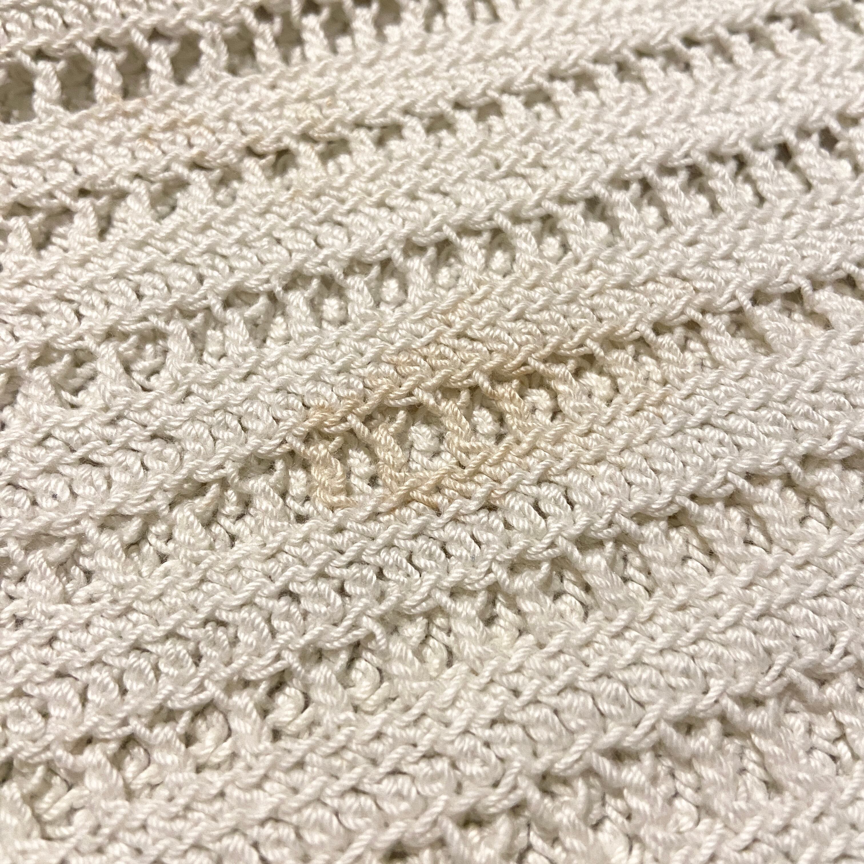 裾付近に小さな汚れがございますが、大きく目立つことはないかと思います。