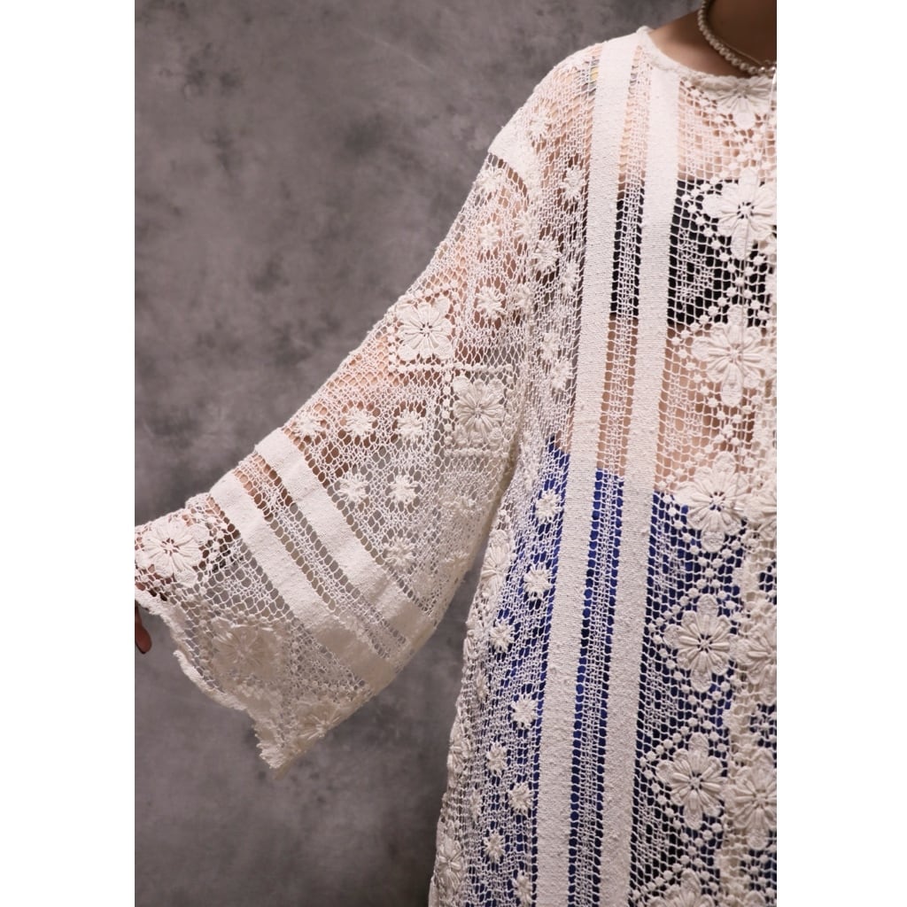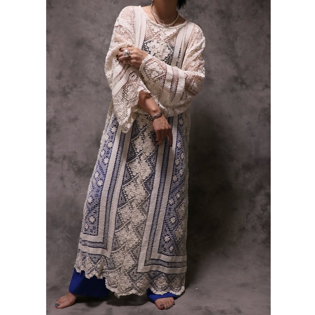 ヨーロッパの古いフィレレースを使用してリメイクされた1着。