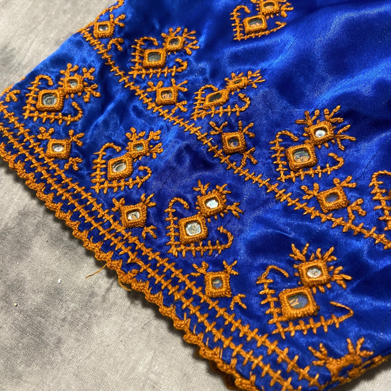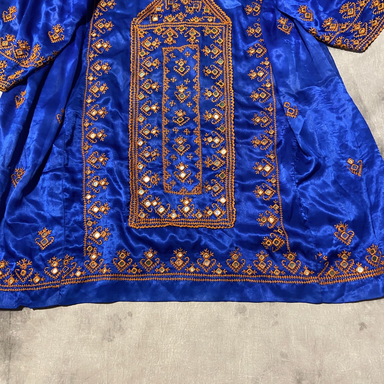 かなり細かな刺繍と珍しい四角いミラーワーク、サイドのギャザーも素晴らしすぎます◎