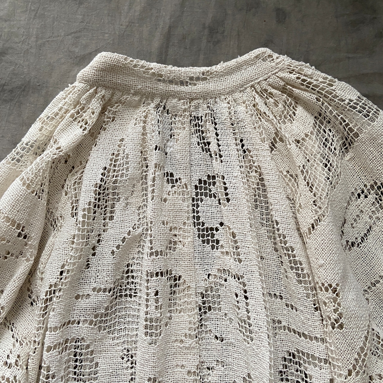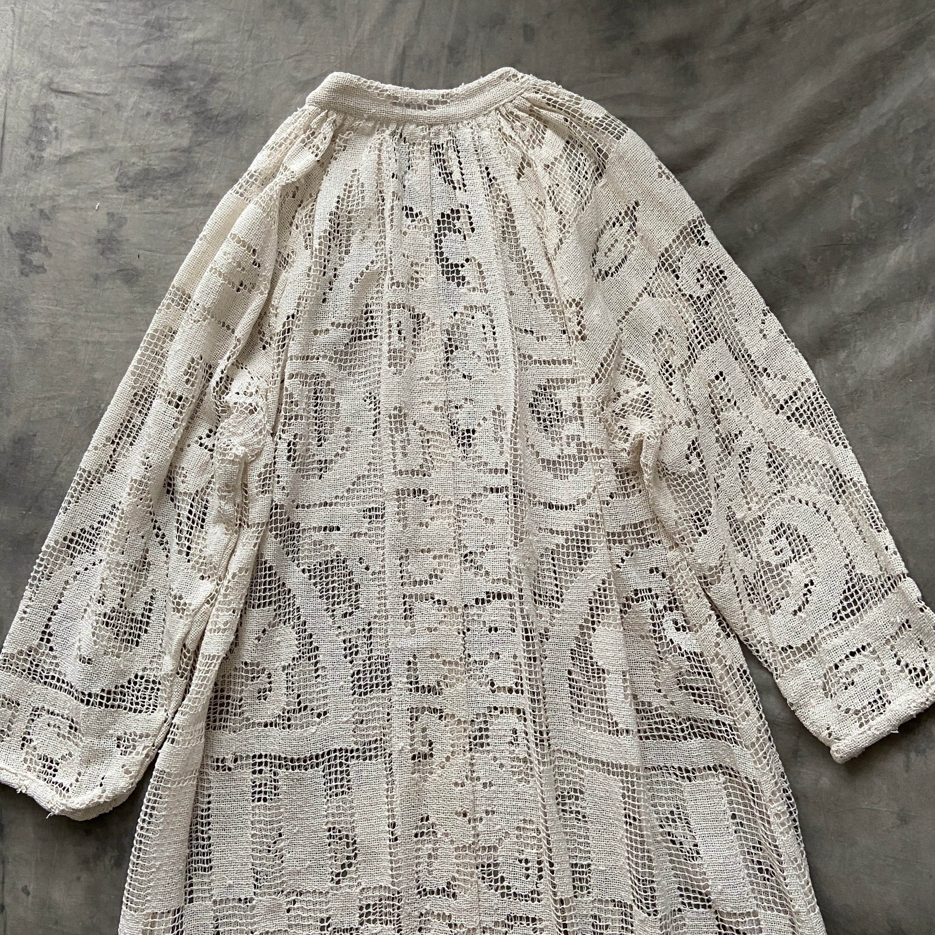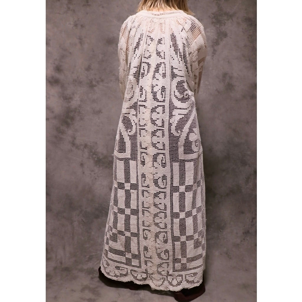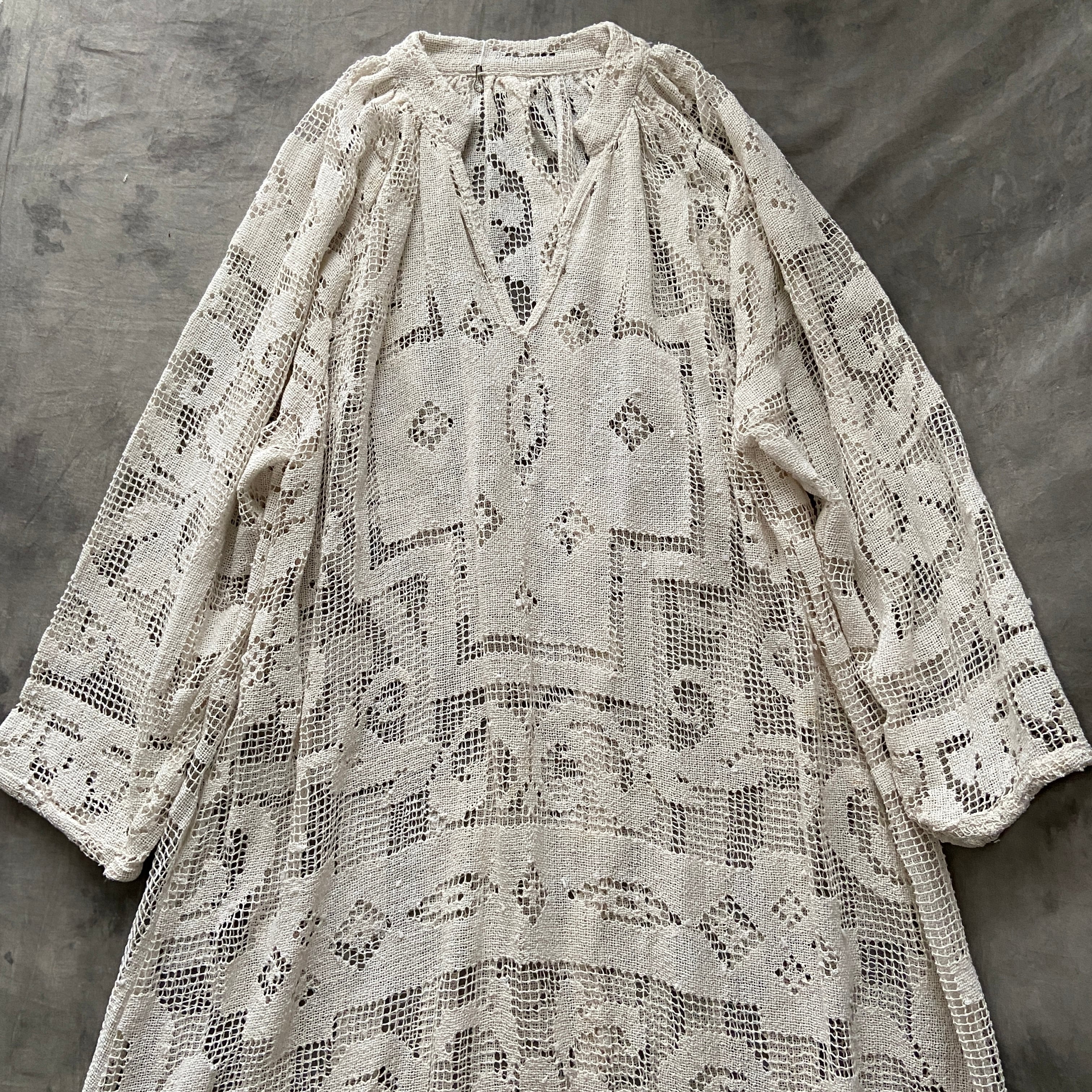 ヨーロッパの古いフィレレースを使用してリメイクされた1着。