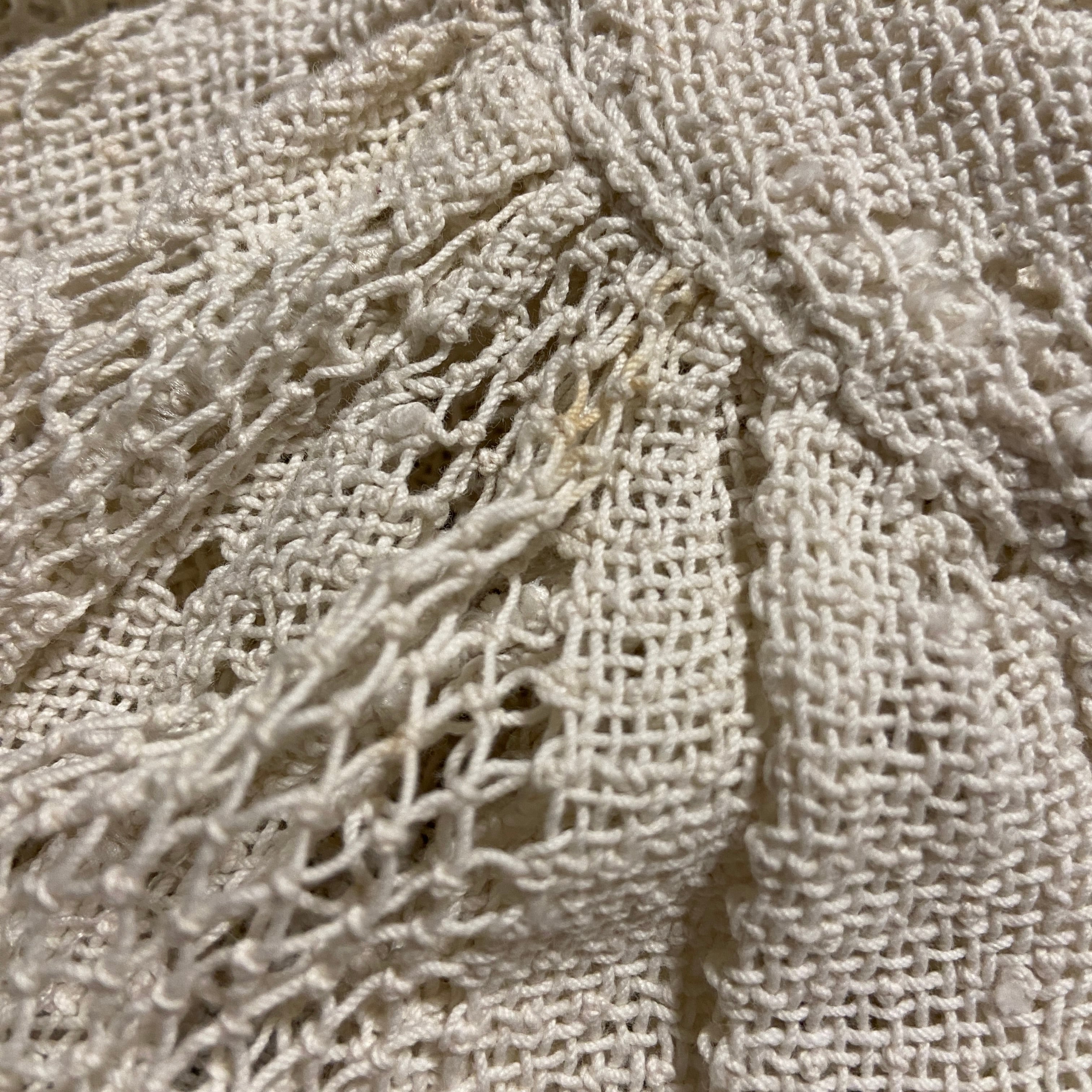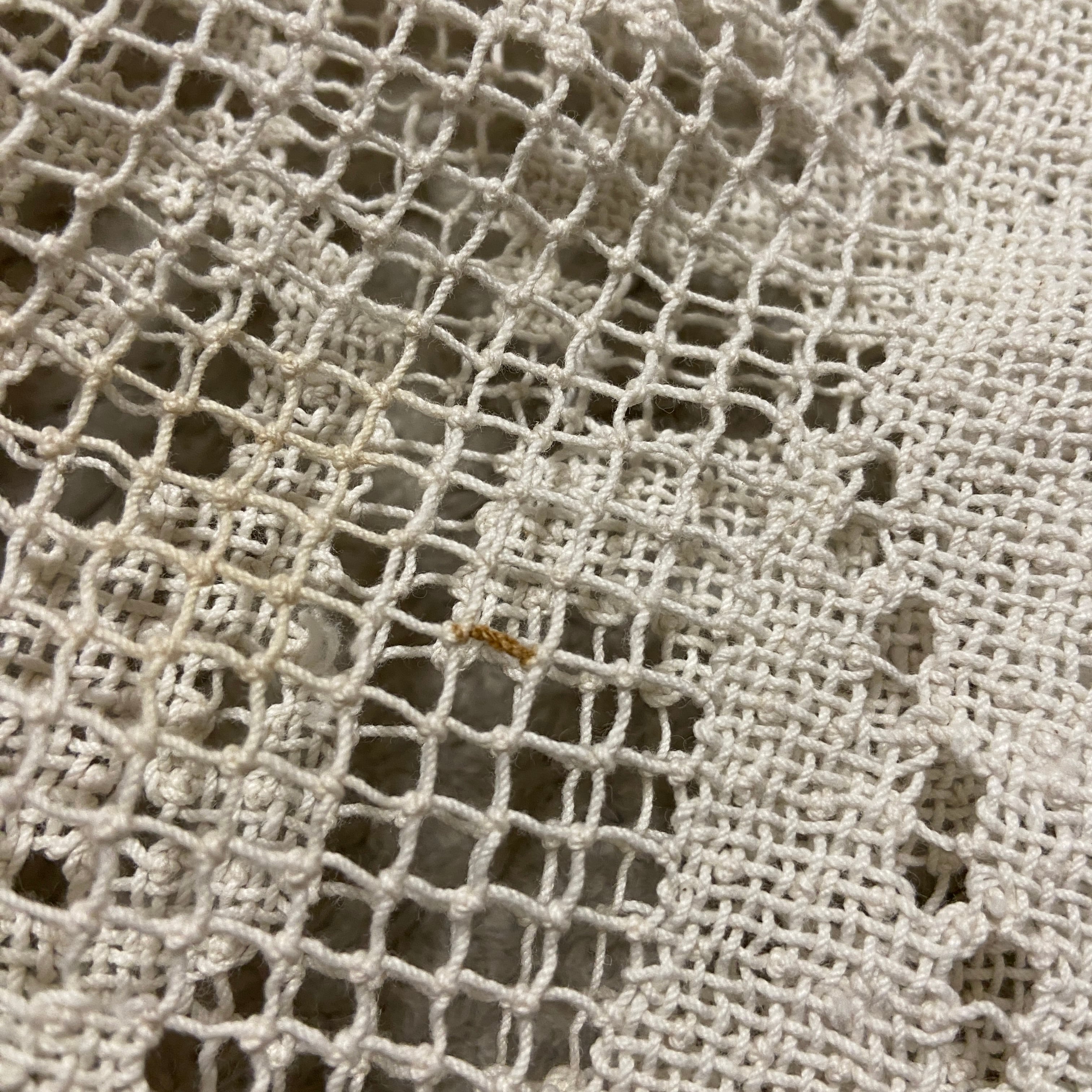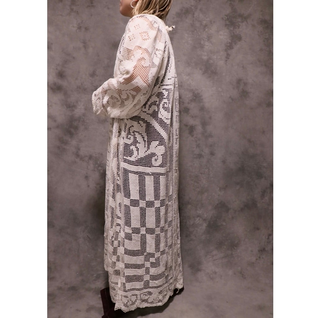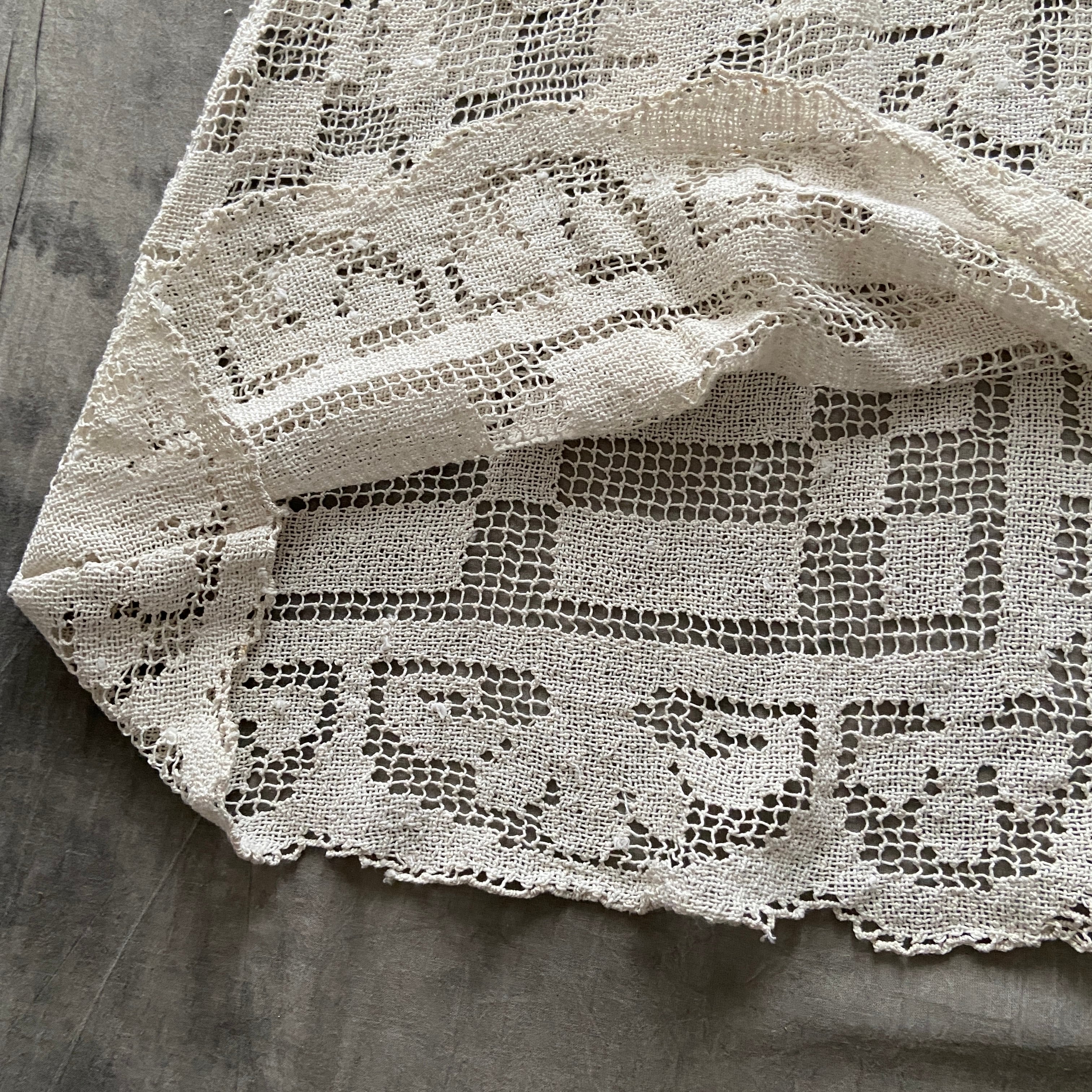 ヨーロッパの古いフィレレースを使用してリメイクされた1着。