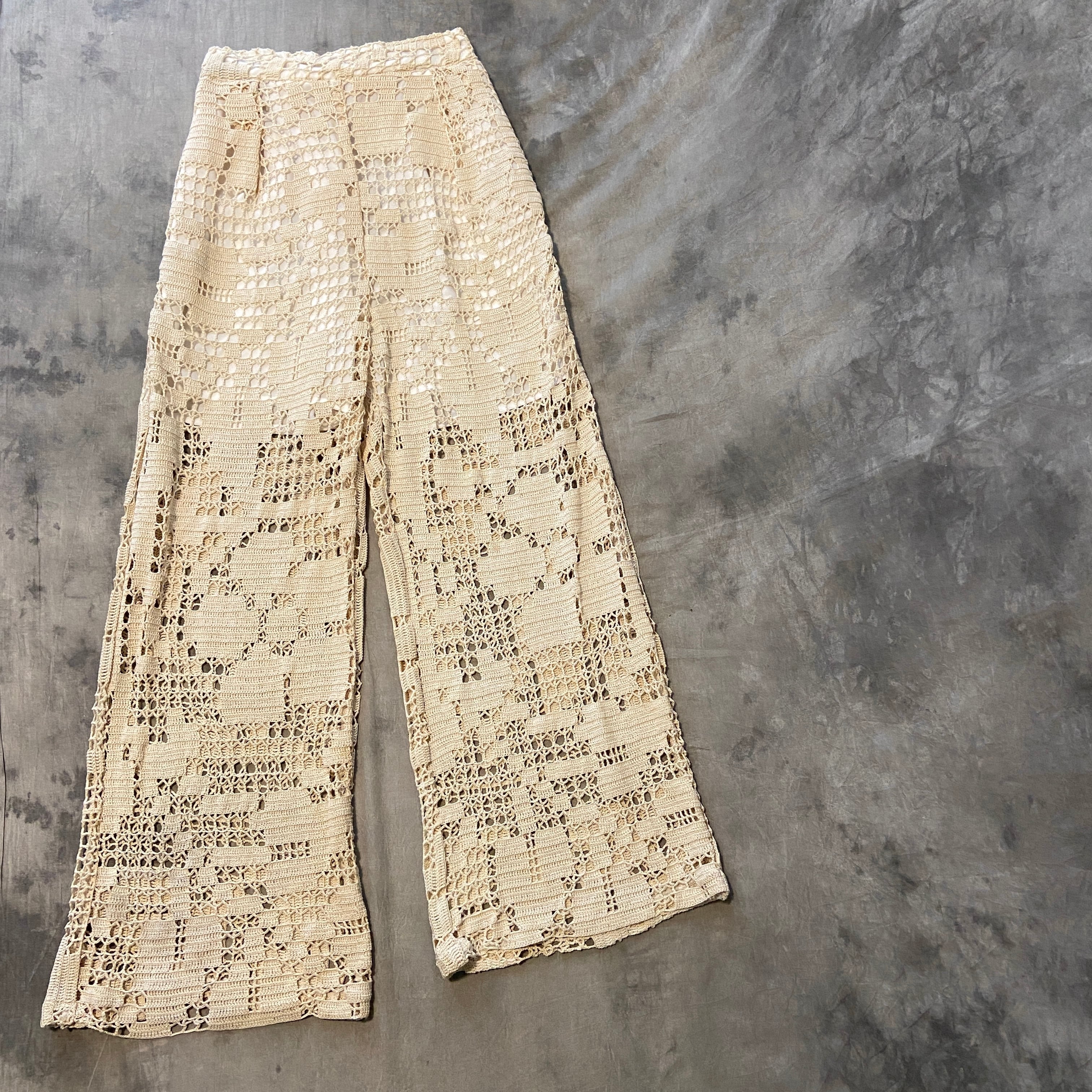 ヴィンテージレースを使用してリメイクされたフレアパンツ