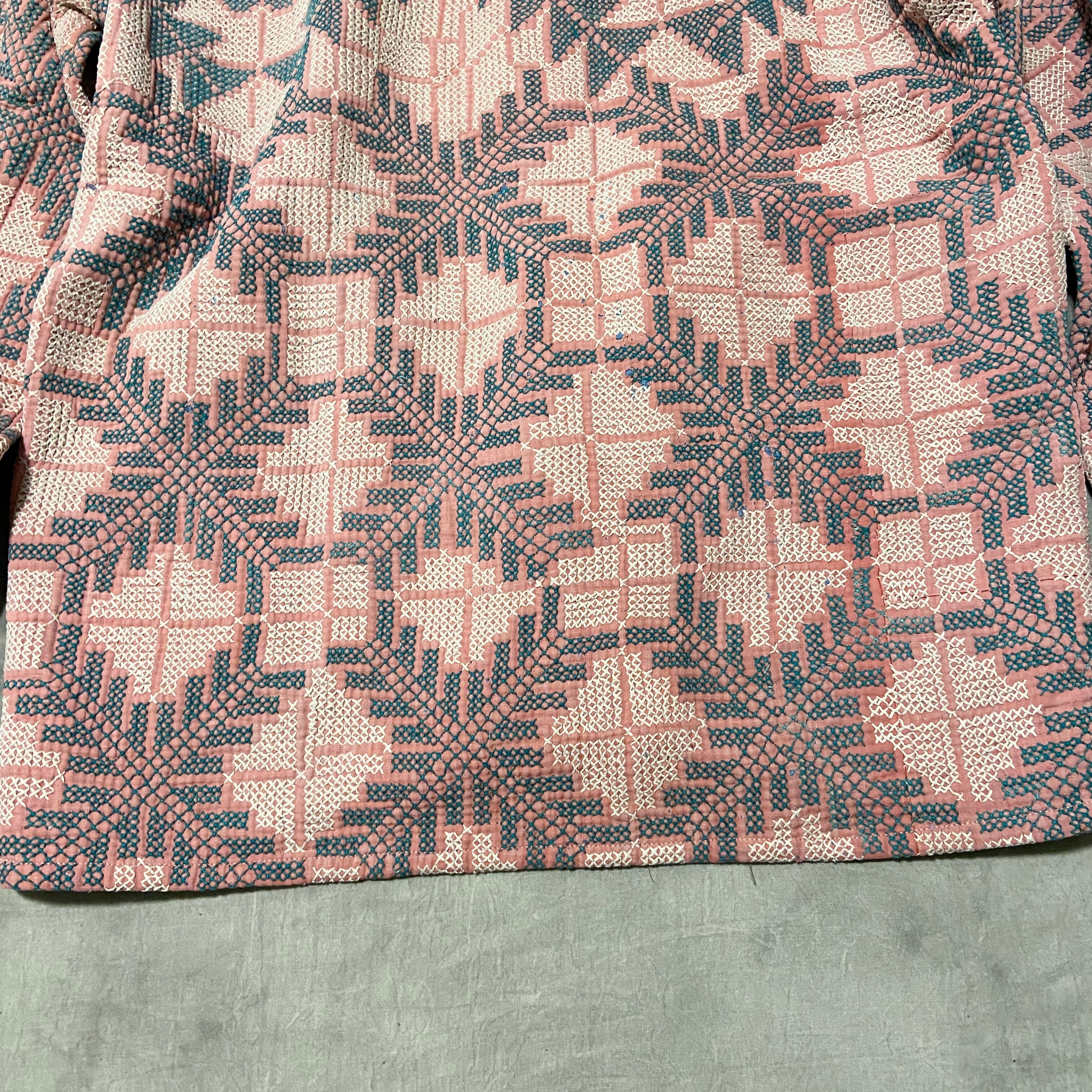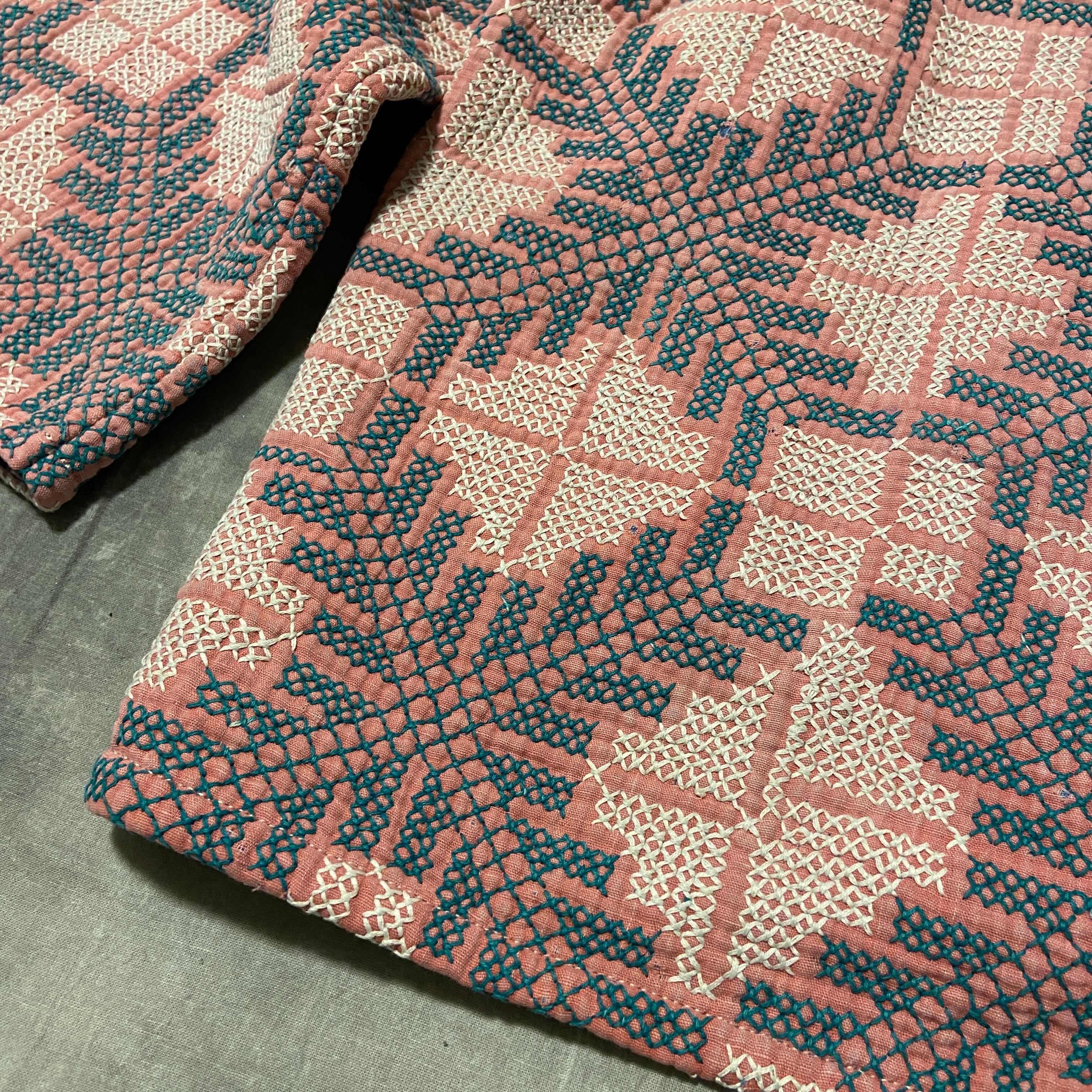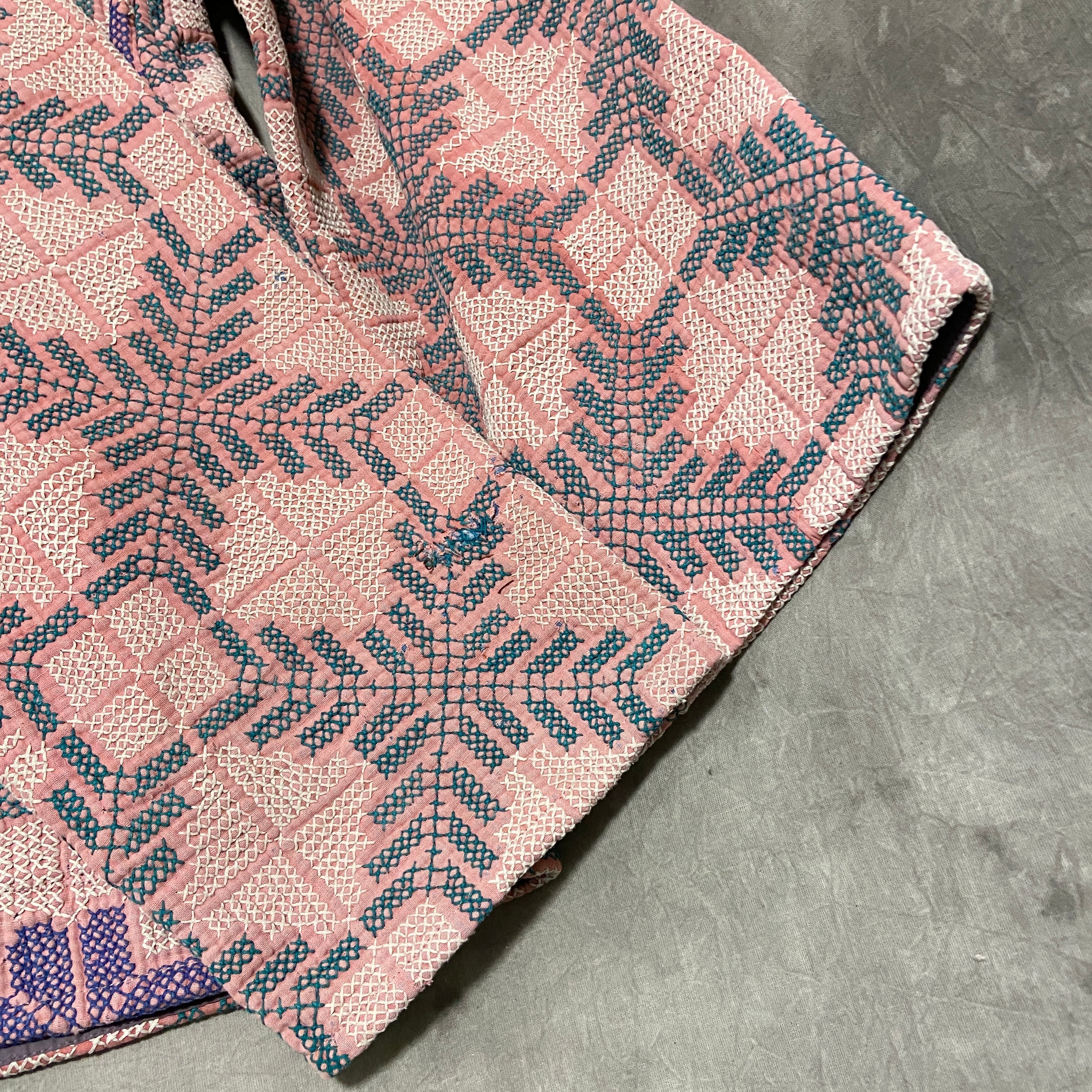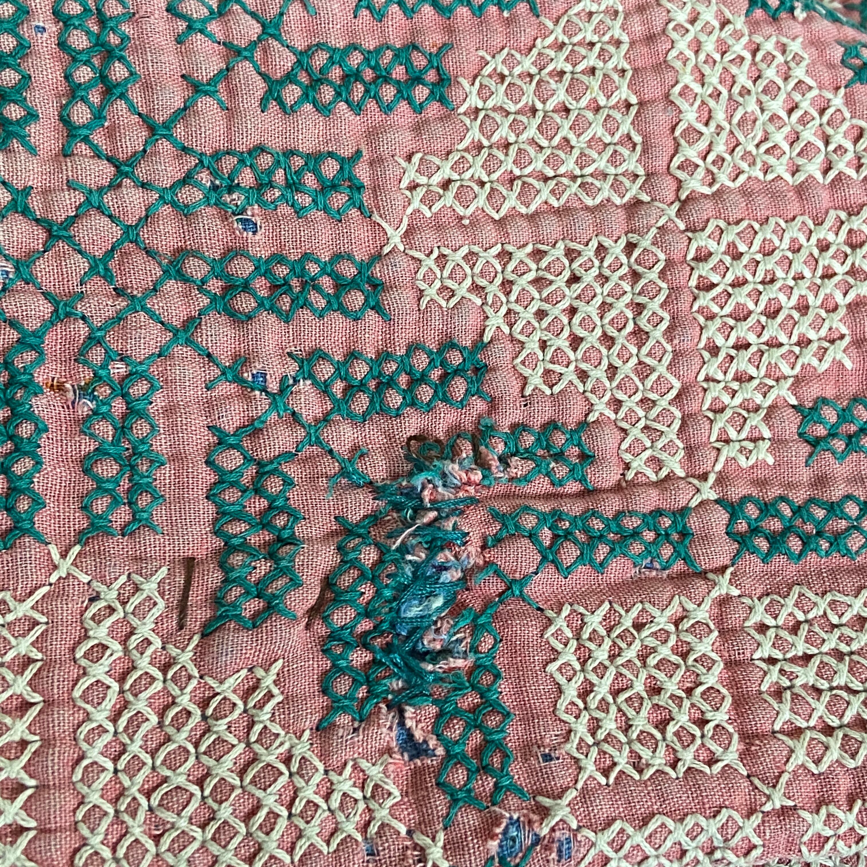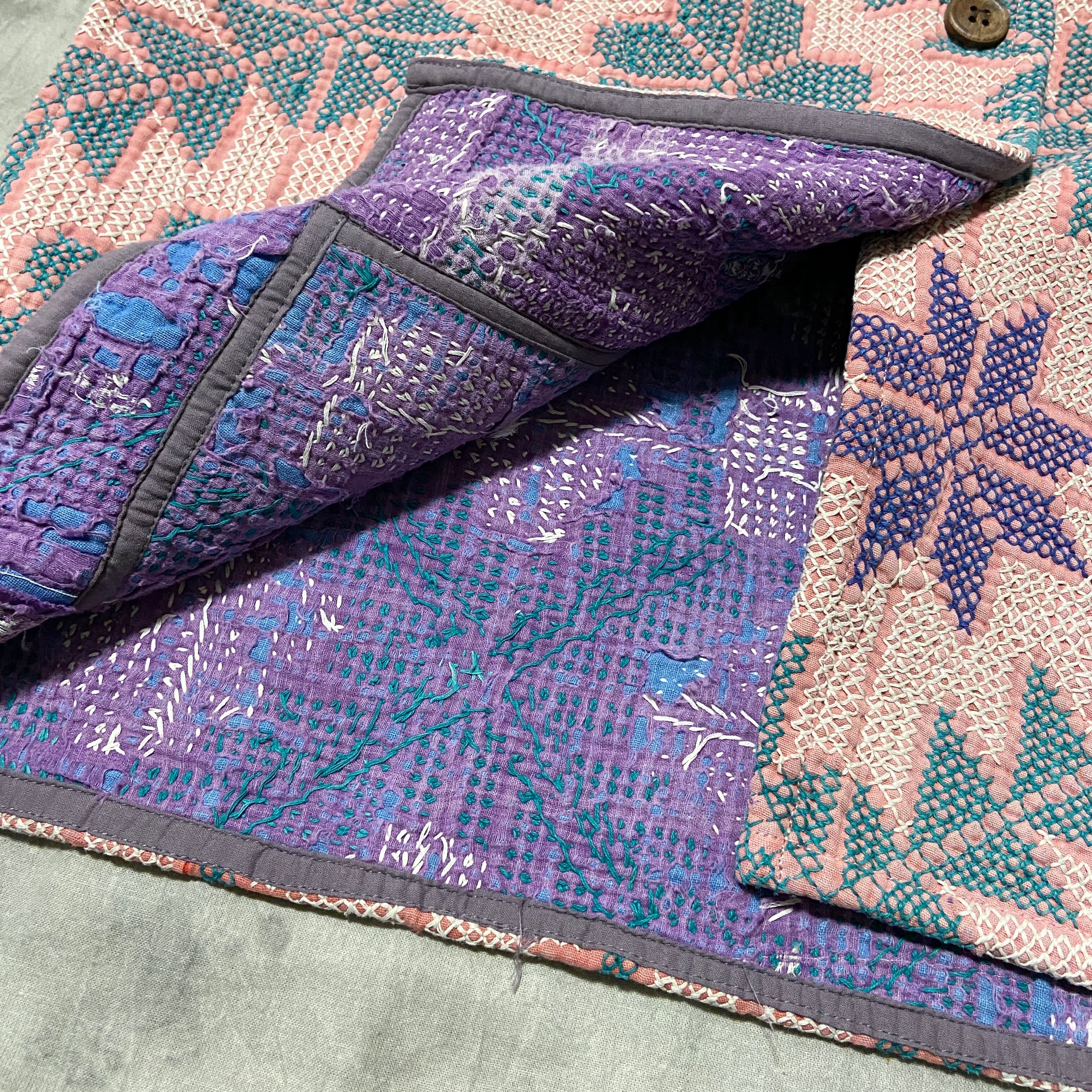 使い古したサリーなどの布を何枚も重ね、細かな刺し子のような刺繍を全面に施して作られます。