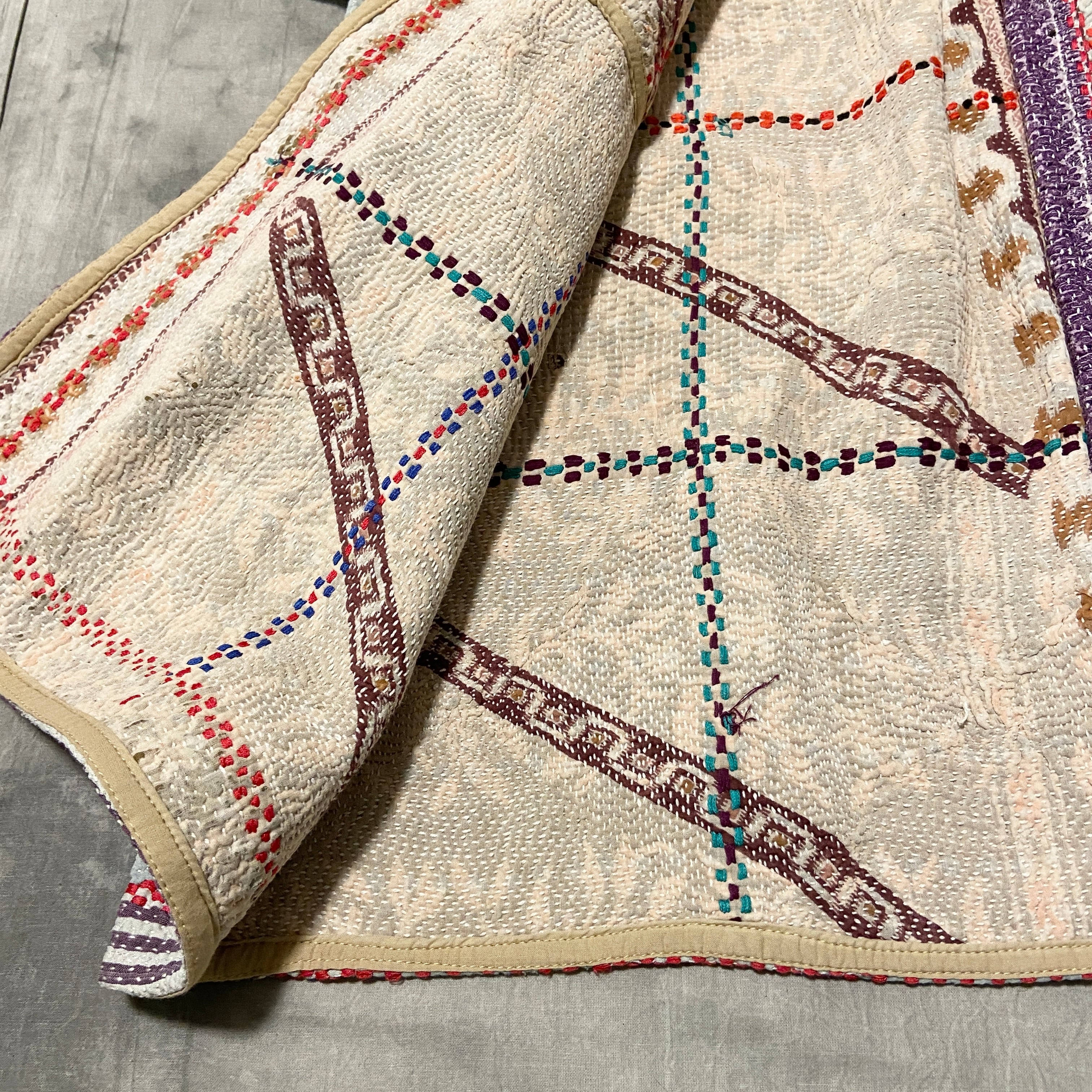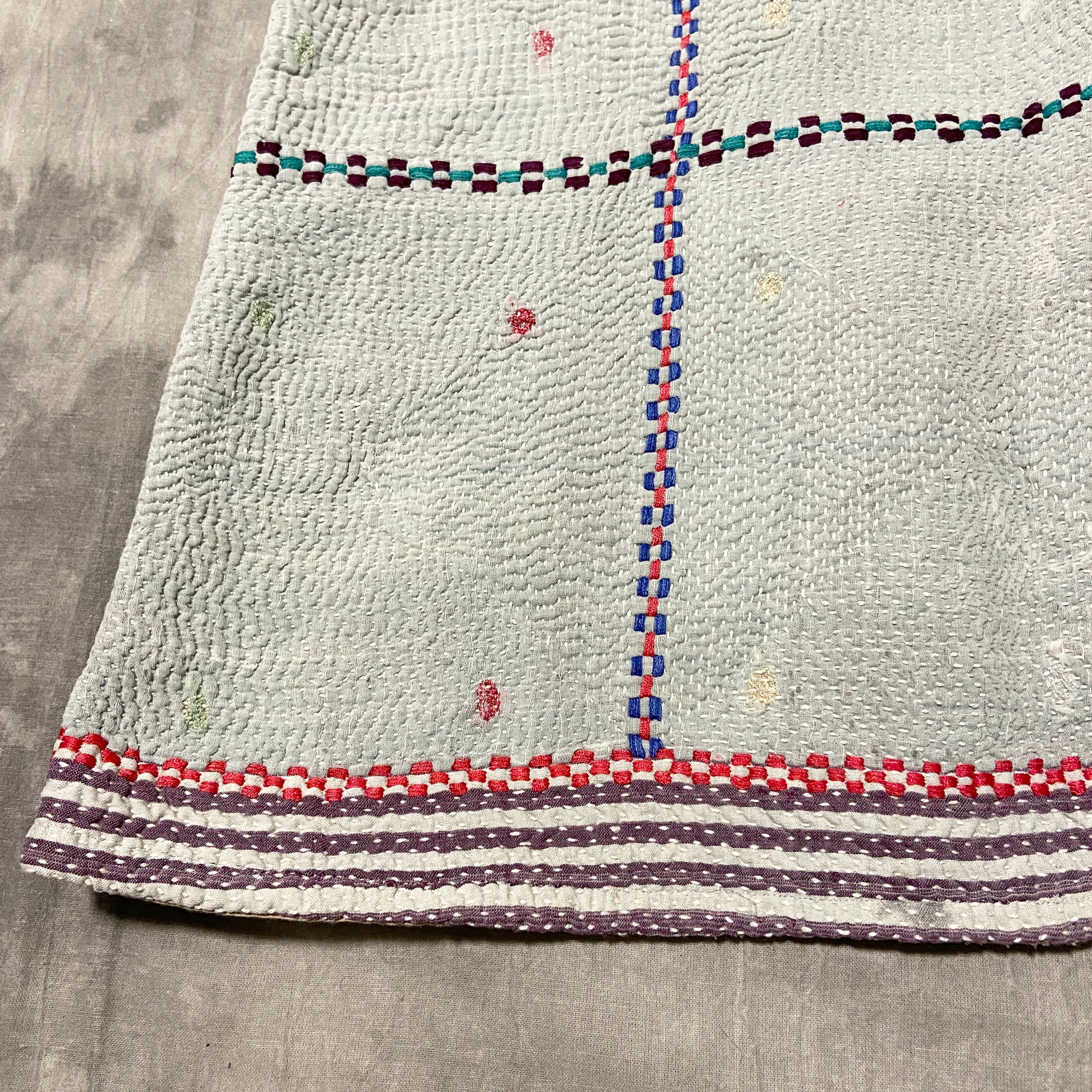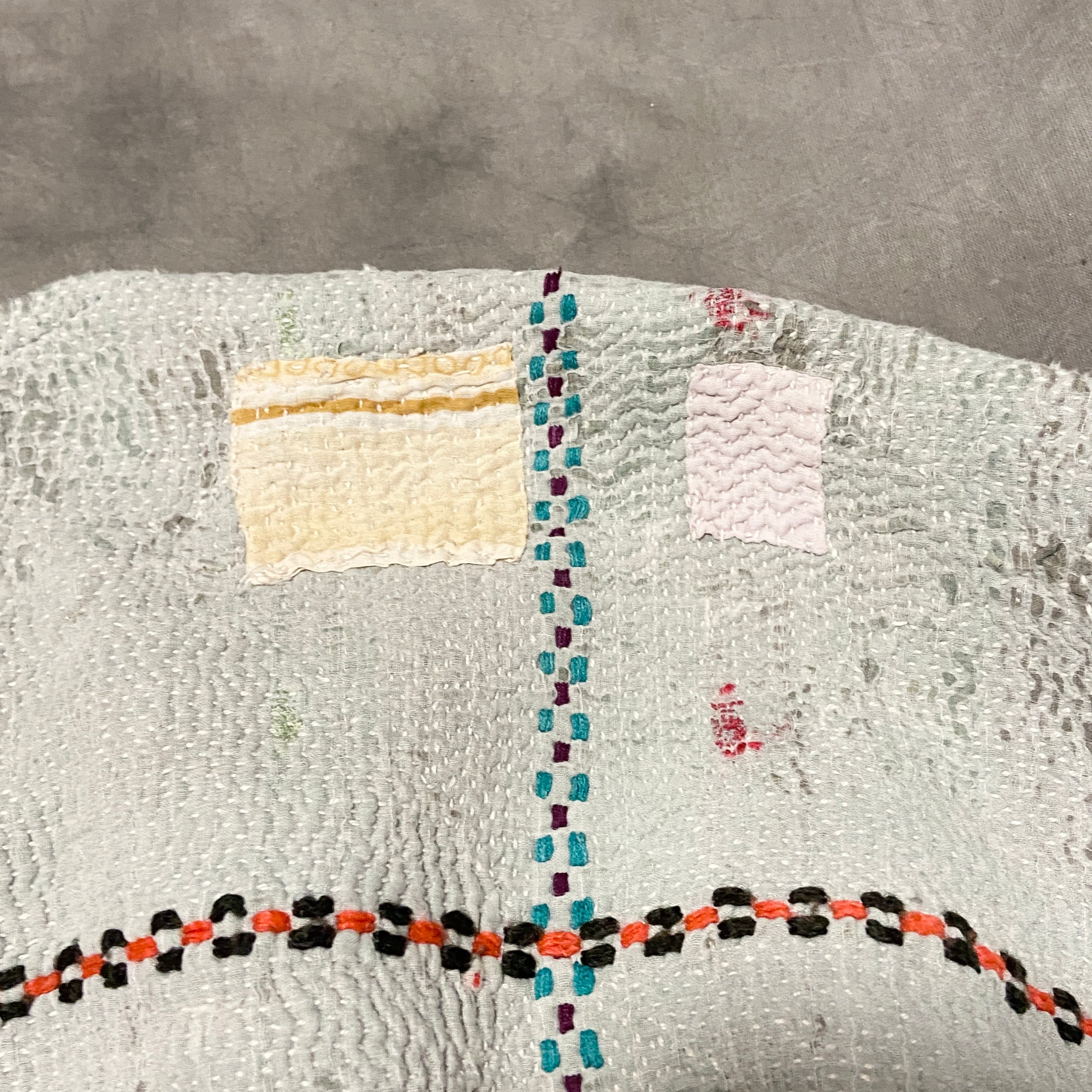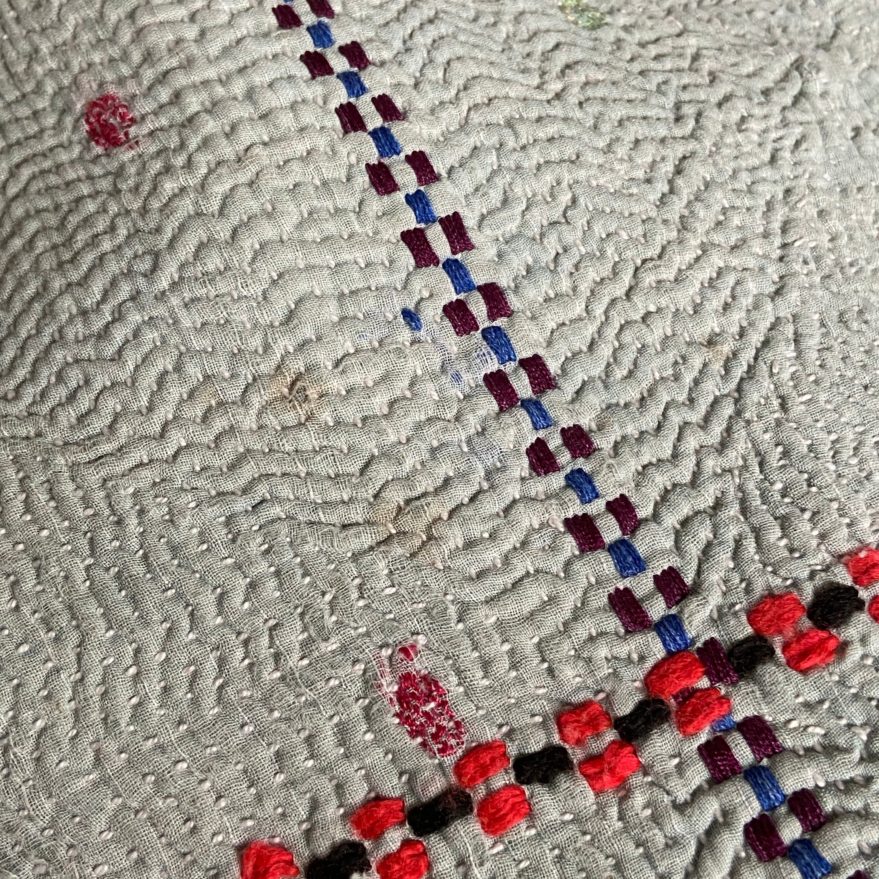 使い古したサリーなどの布を何枚も重ね、細かな刺し子のような刺繍を全面に施して作られます。