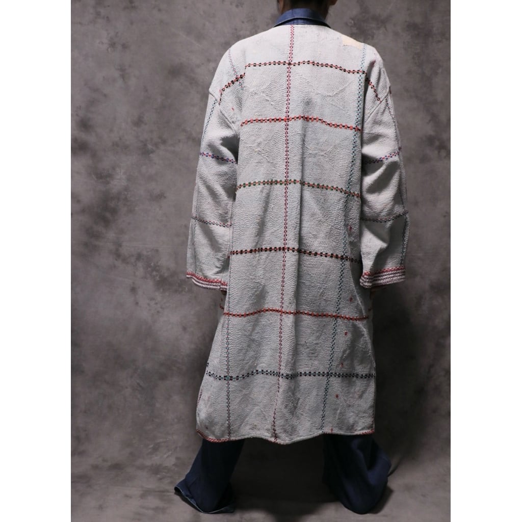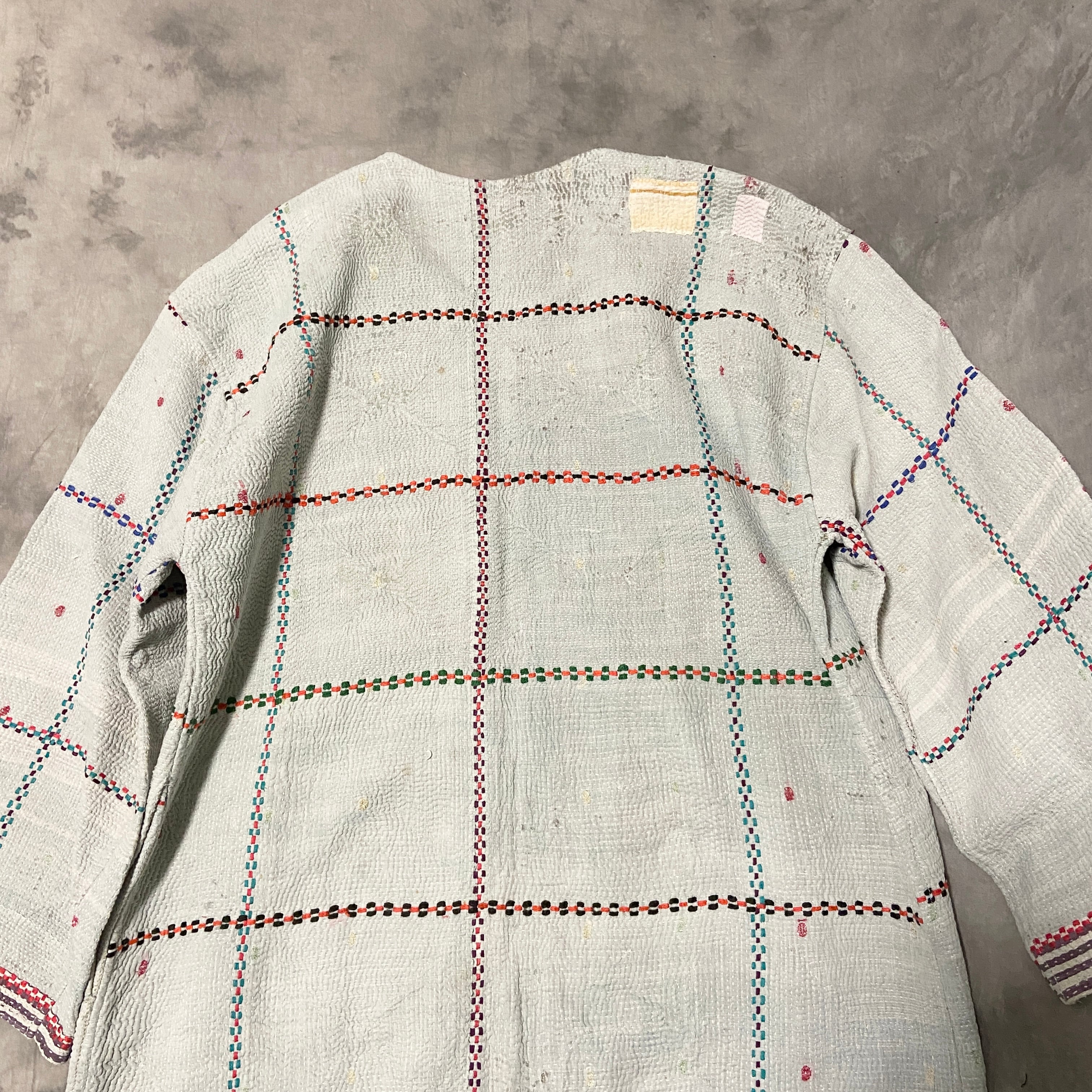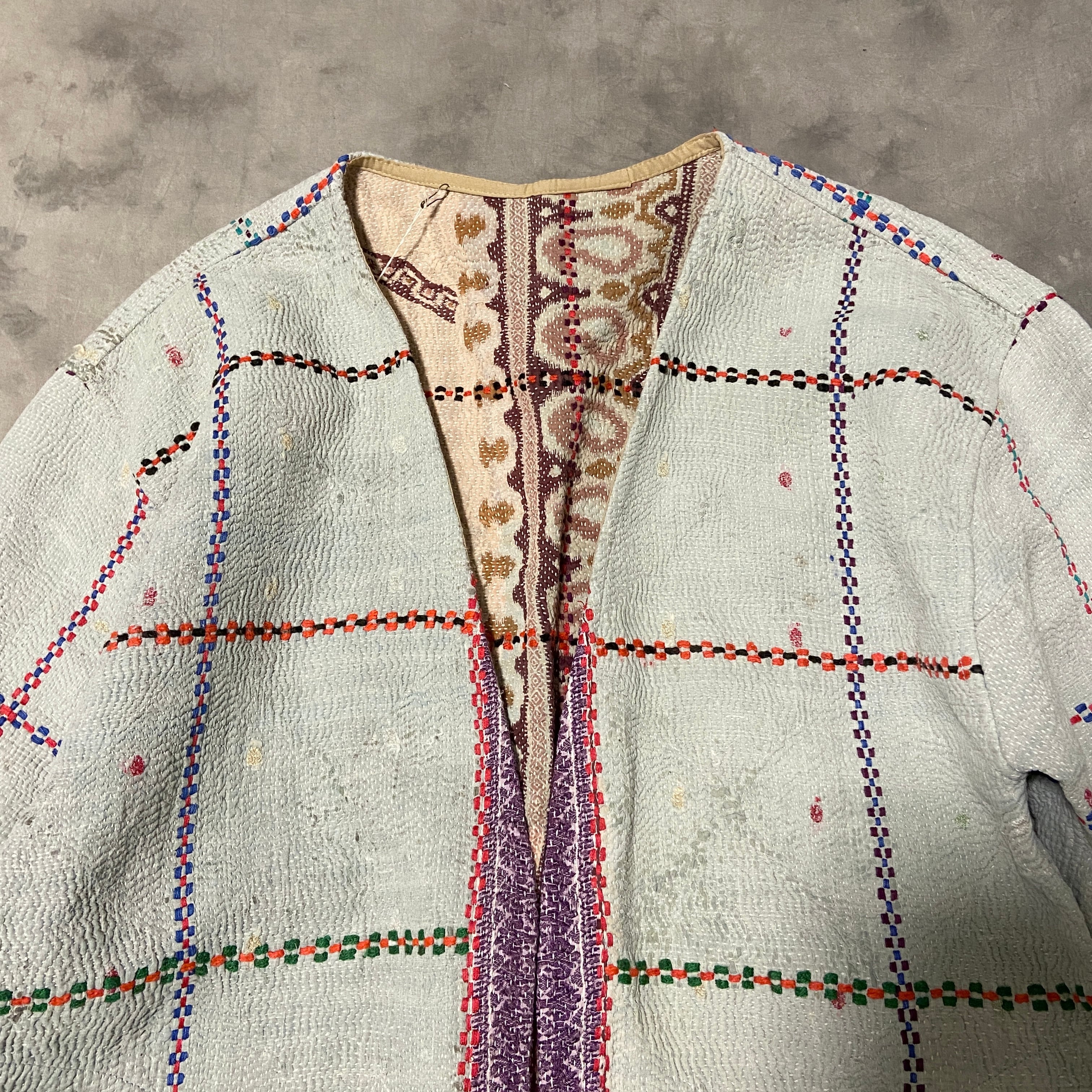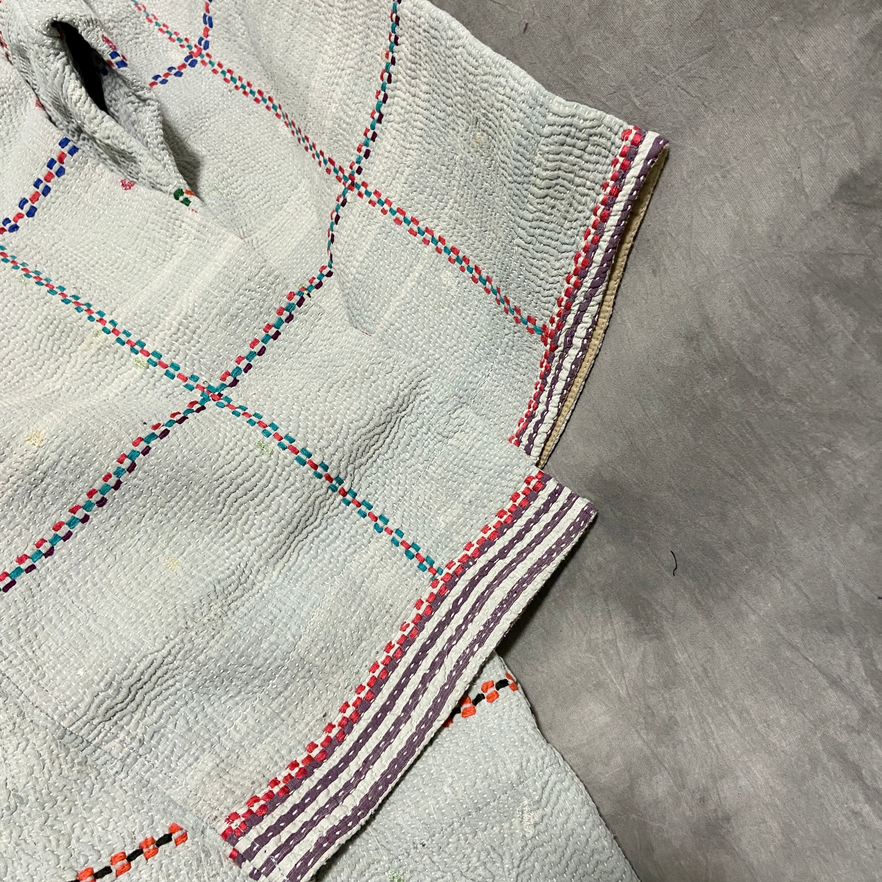 使い古したサリーなどの布を何枚も重ね、細かな刺し子のような刺繍を全面に施して作られます。