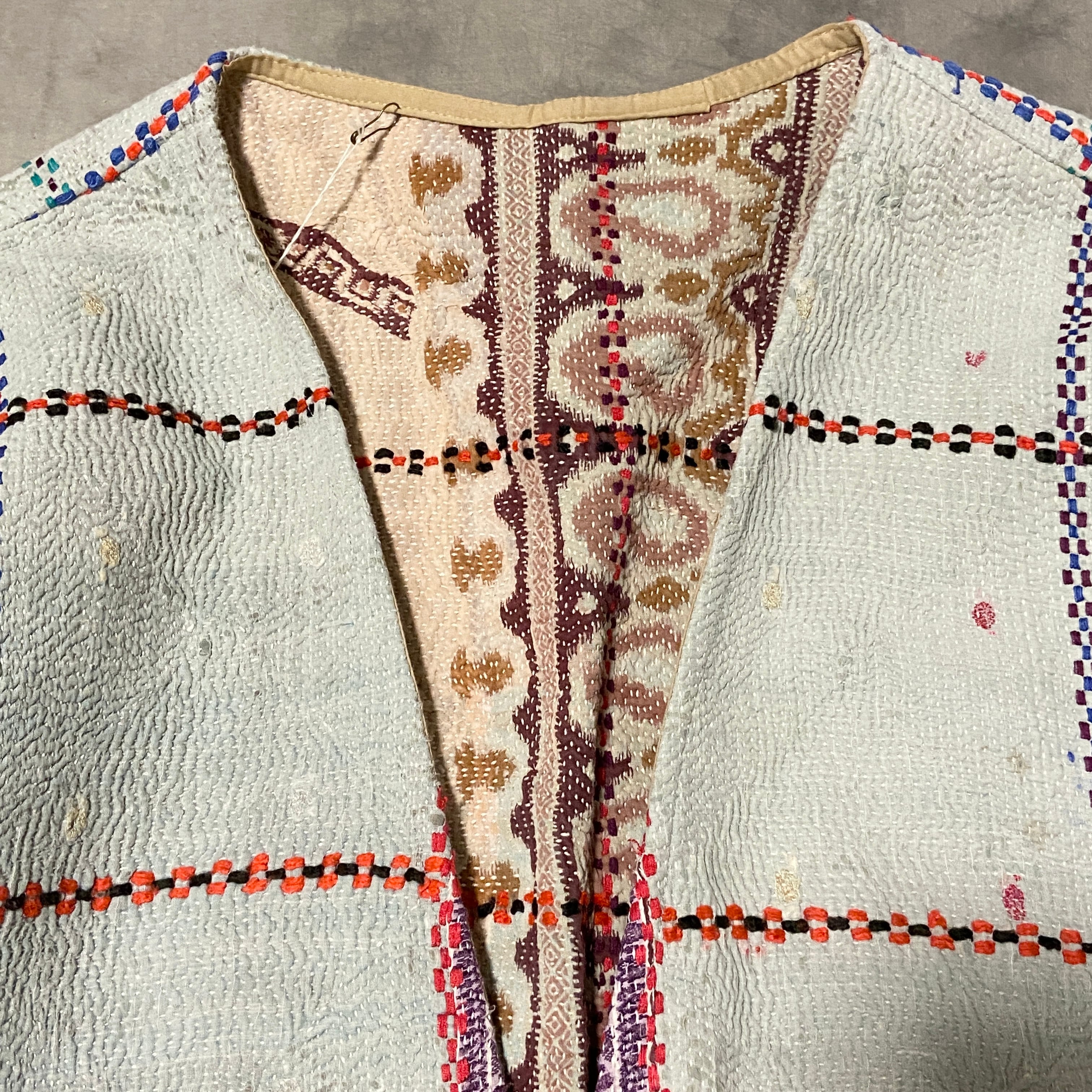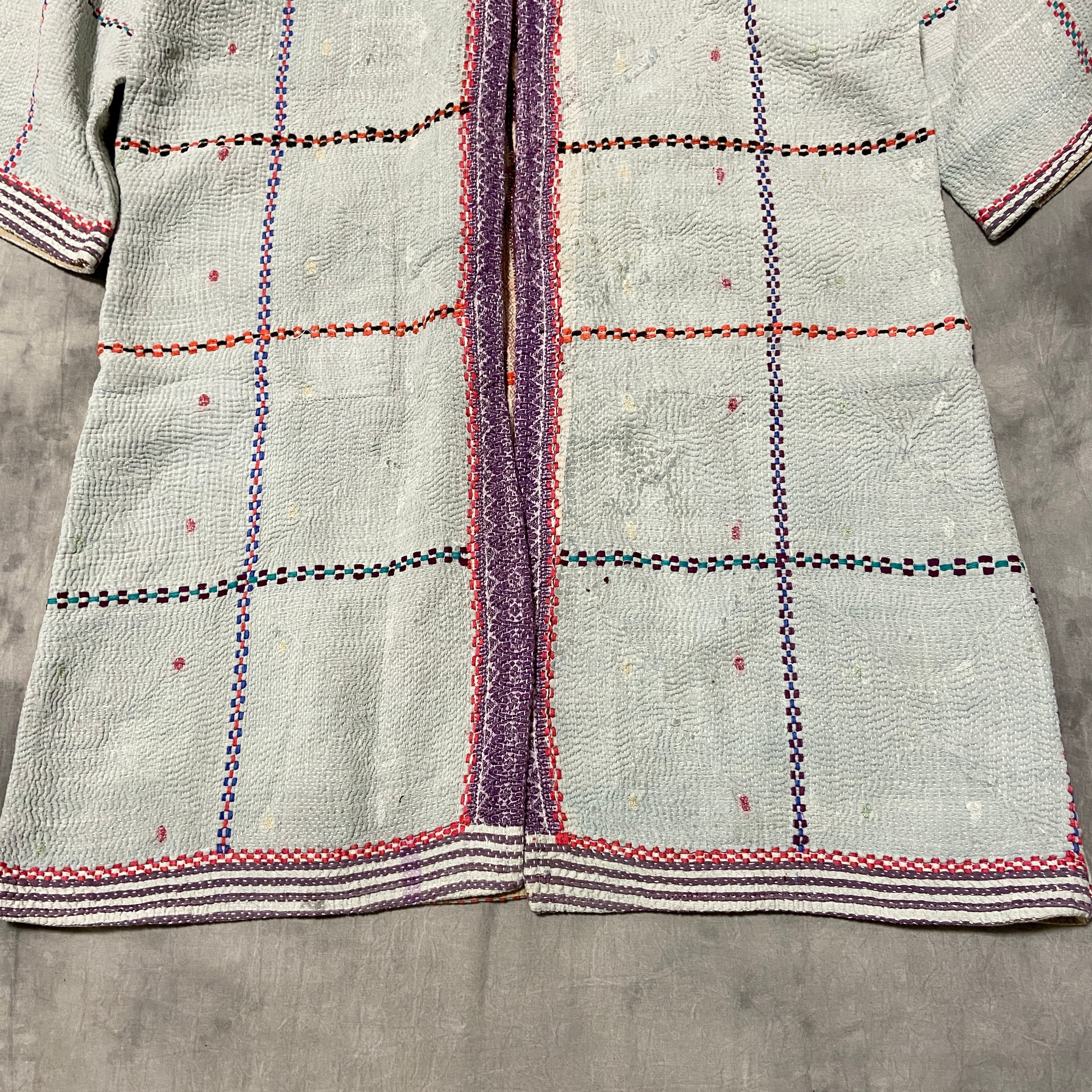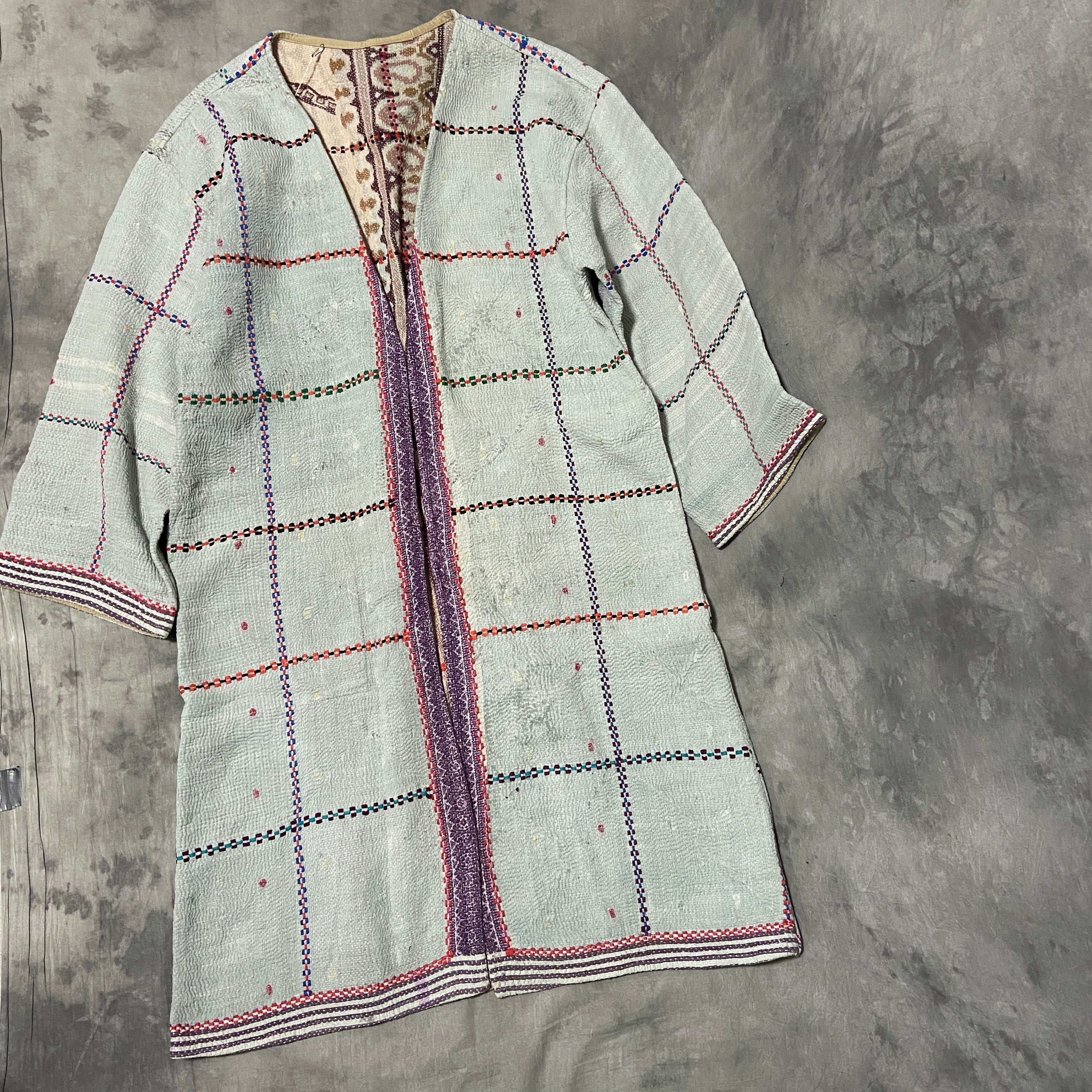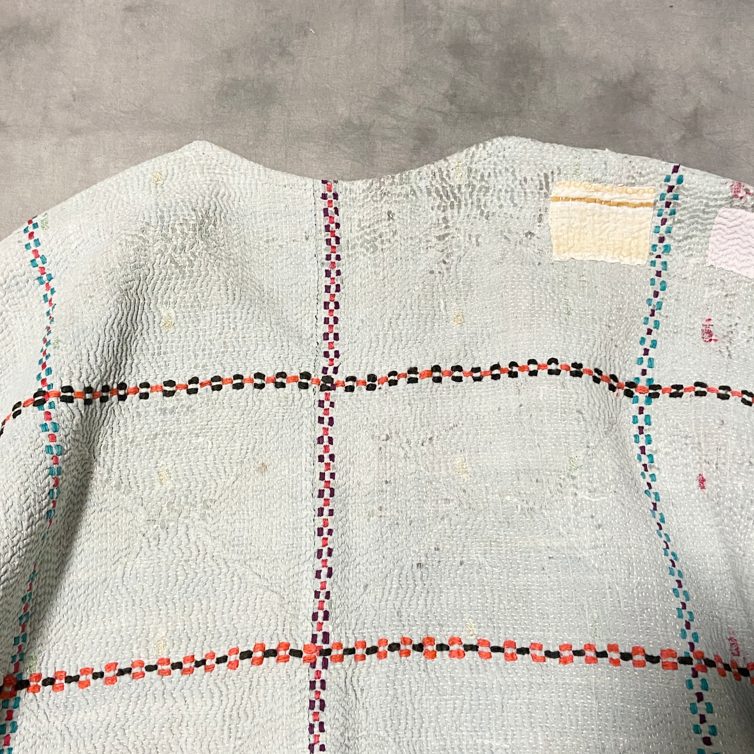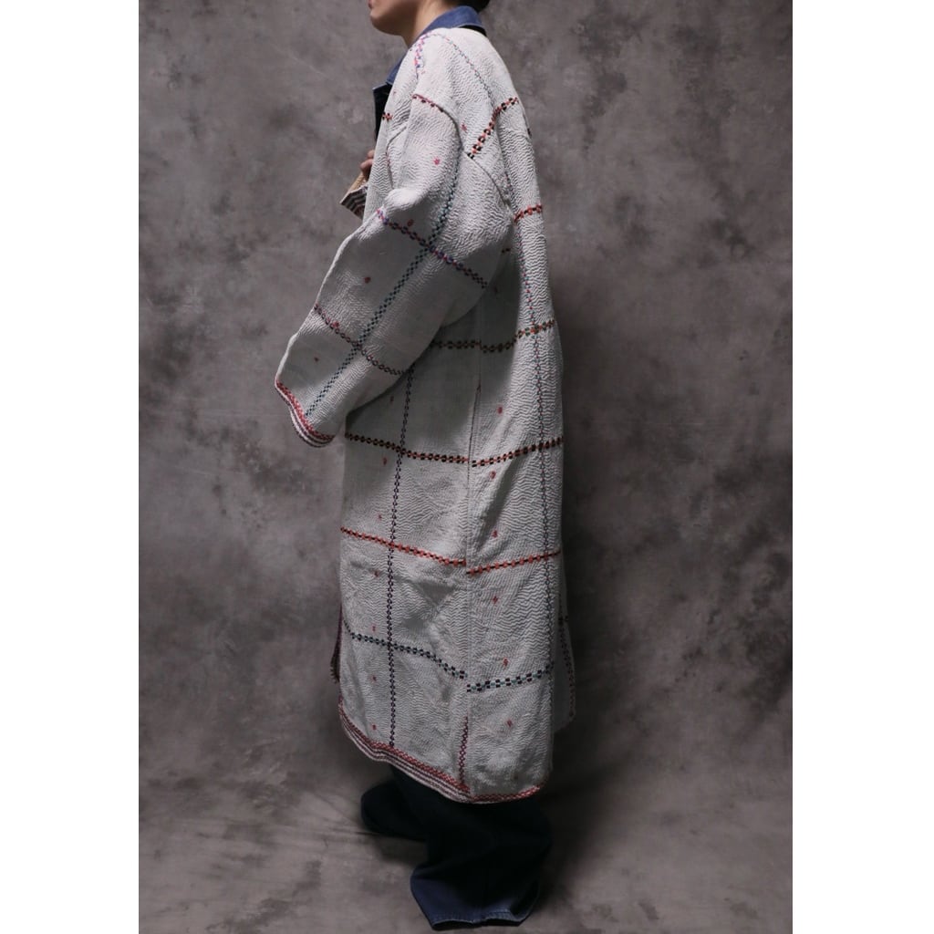 使い古したサリーなどの布を何枚も重ね、細かな刺し子のような刺繍を全面に施して作られます。