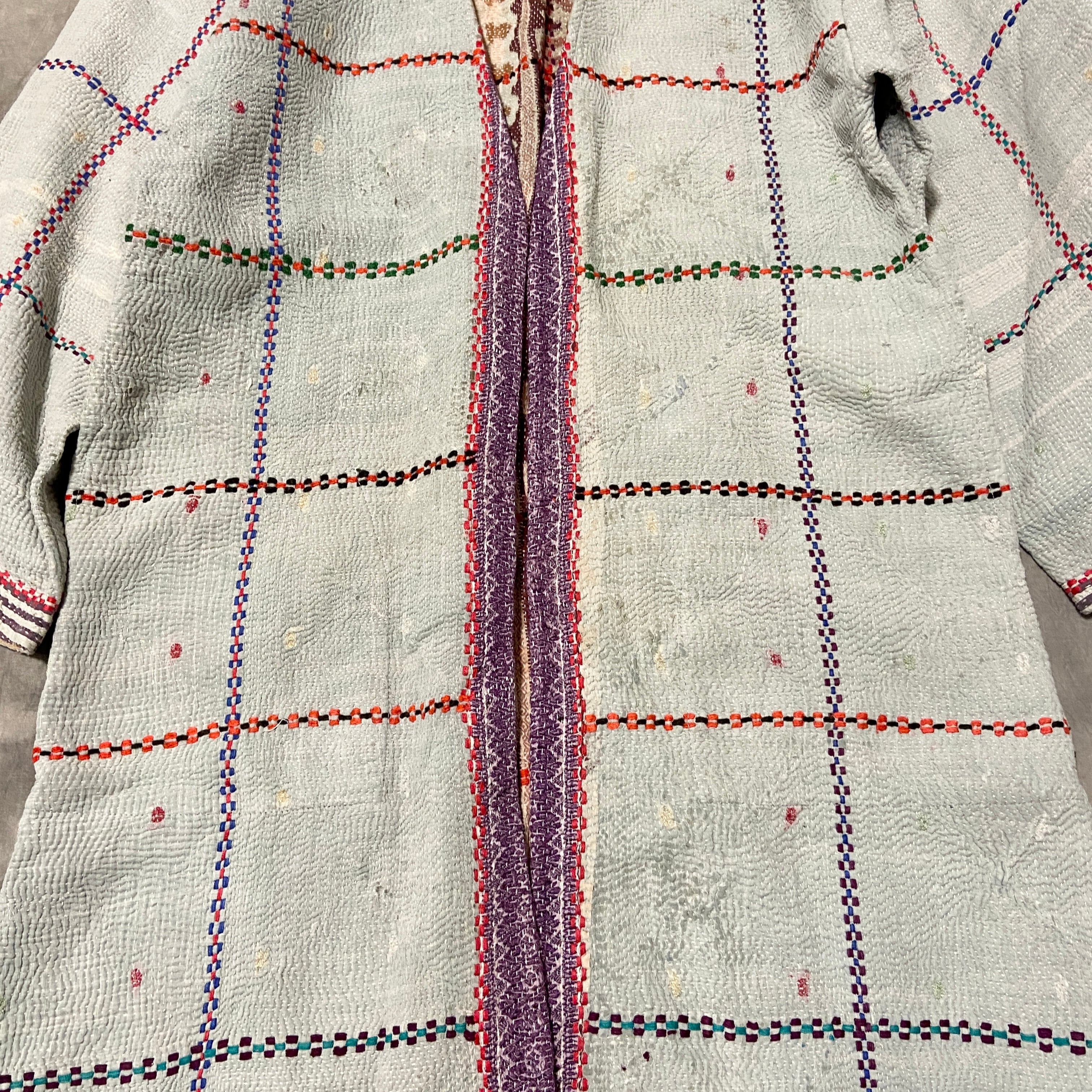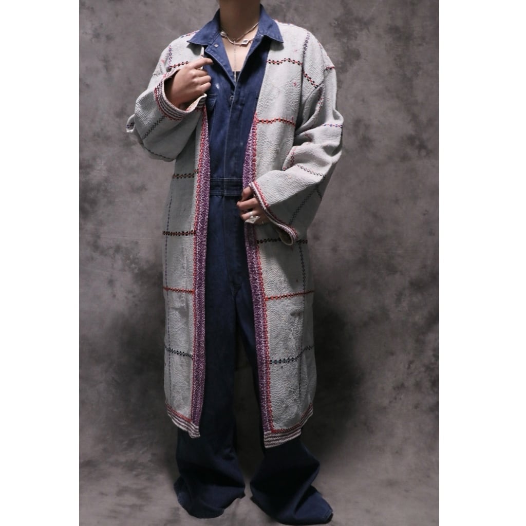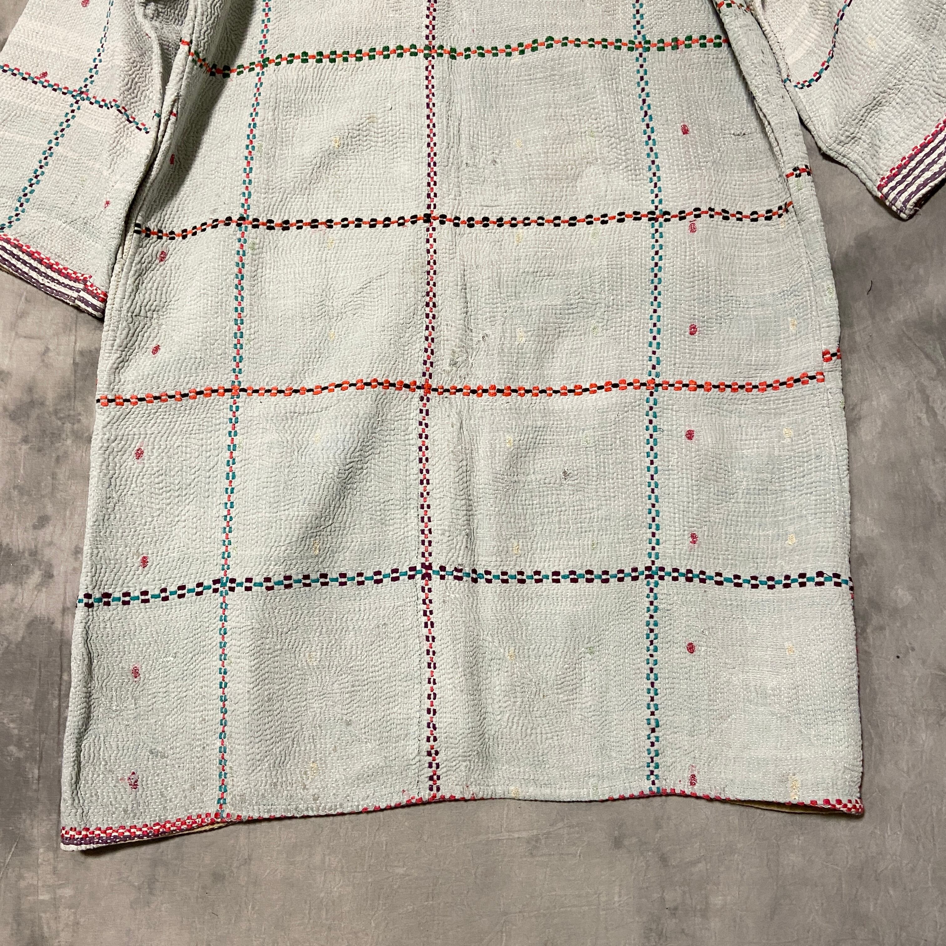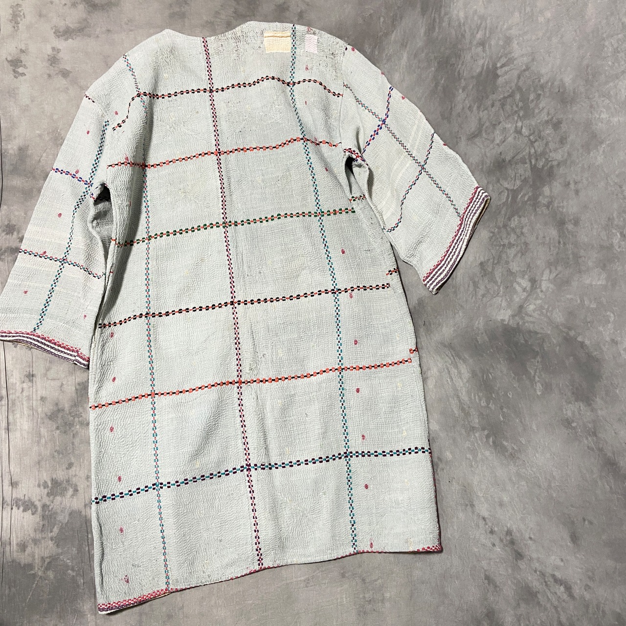 使い古したサリーなどの布を何枚も重ね、細かな刺し子のような刺繍を全面に施して作られます。