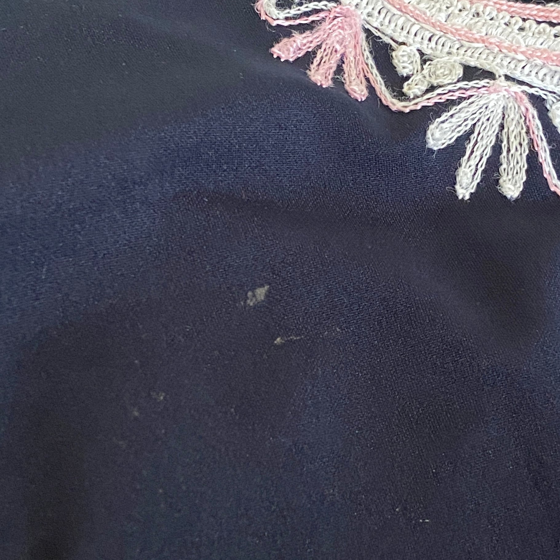 裾付近にシミ、小さな白っぽい汚れがございますが、大きく目立つことは無いかと思います。