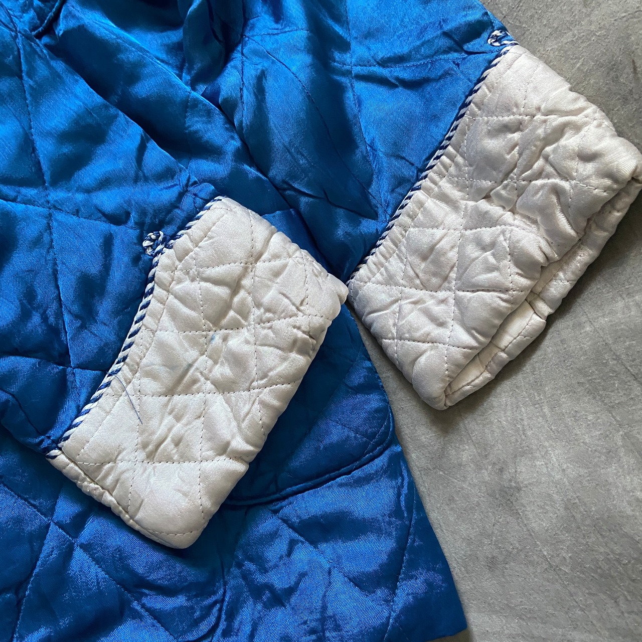 中綿の入ったブルーのキルティングボディに