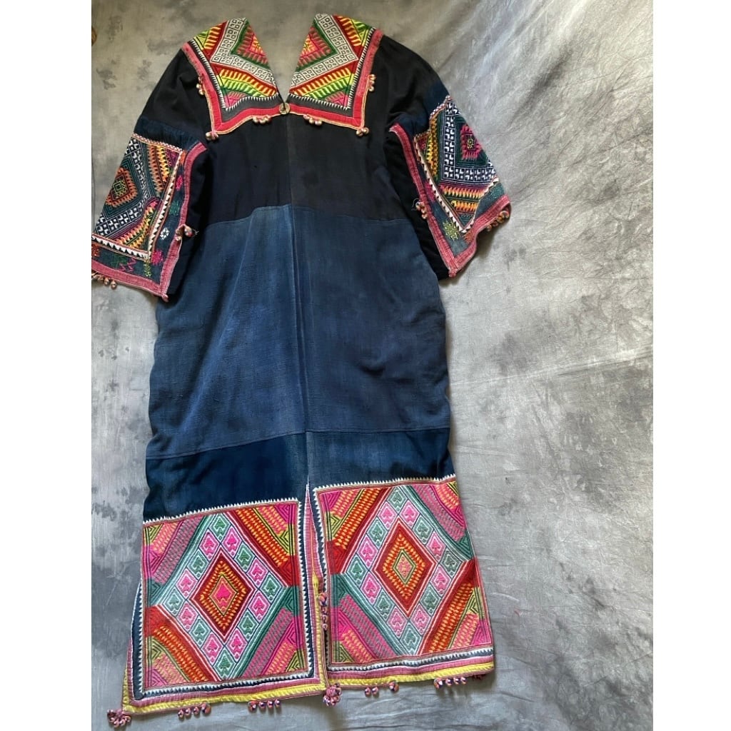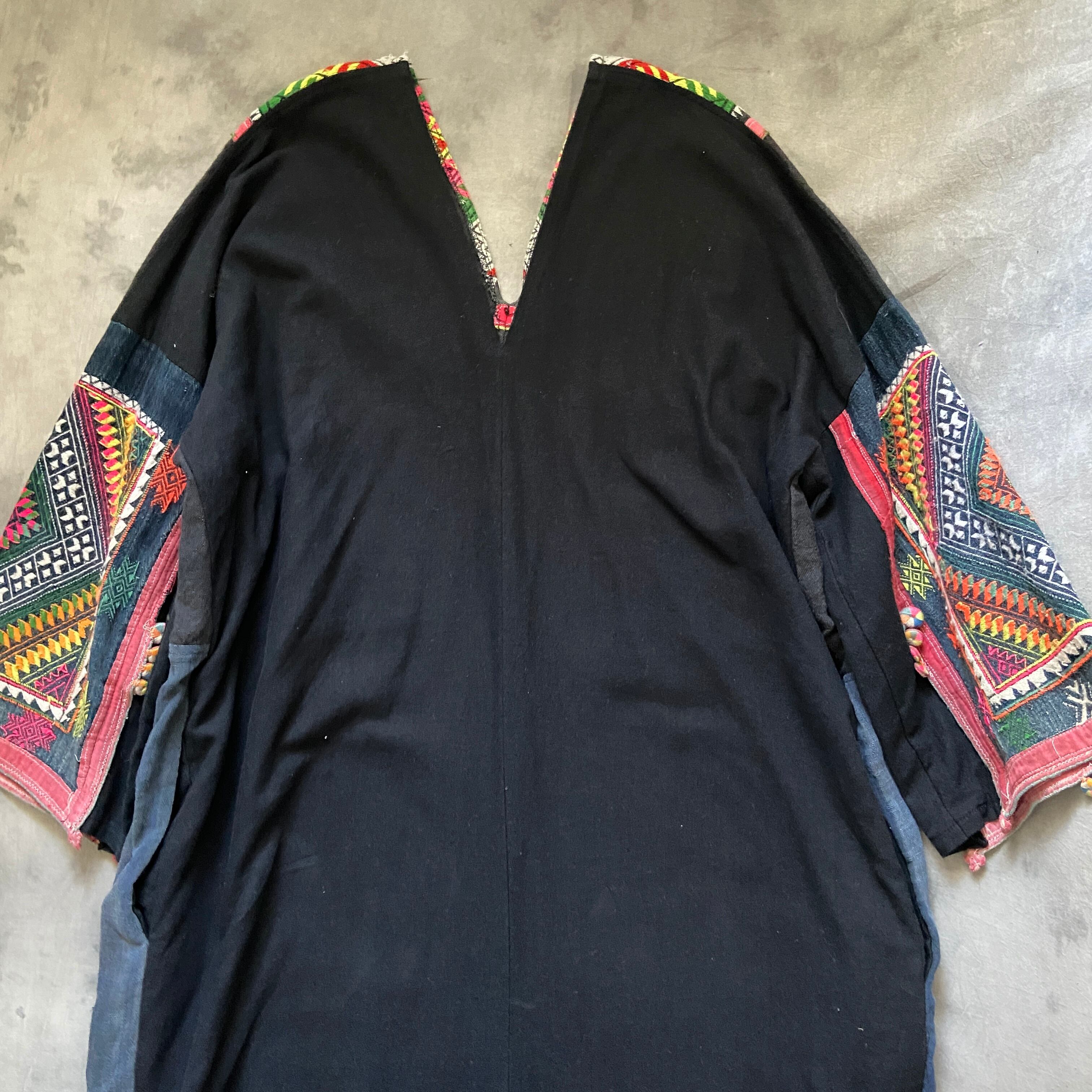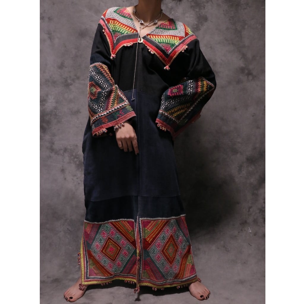 ザオ族の方達が頭に巻く古い布を贅沢に何枚も使って誰かがリメイクして作ったドレス。