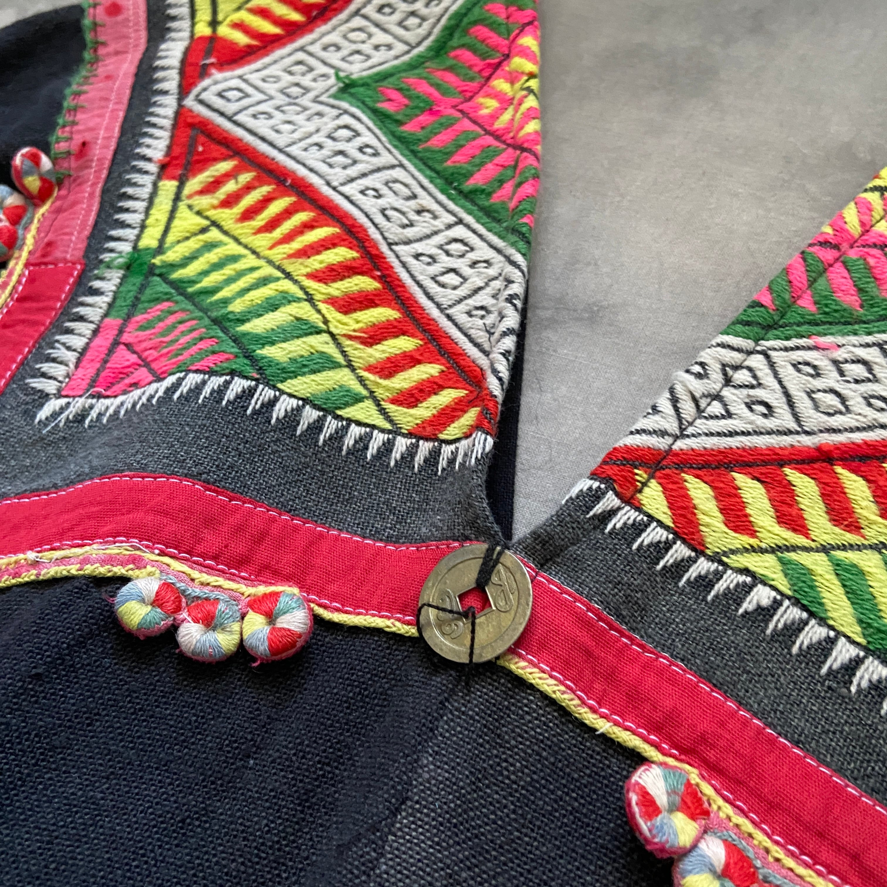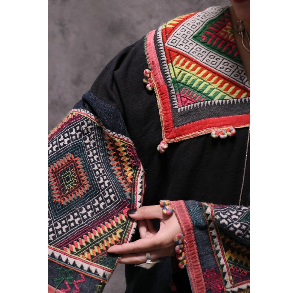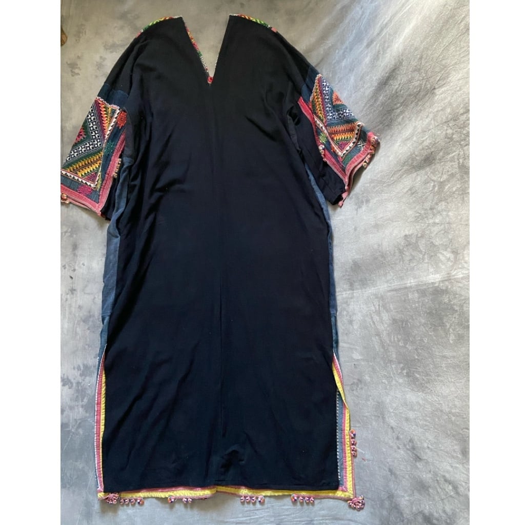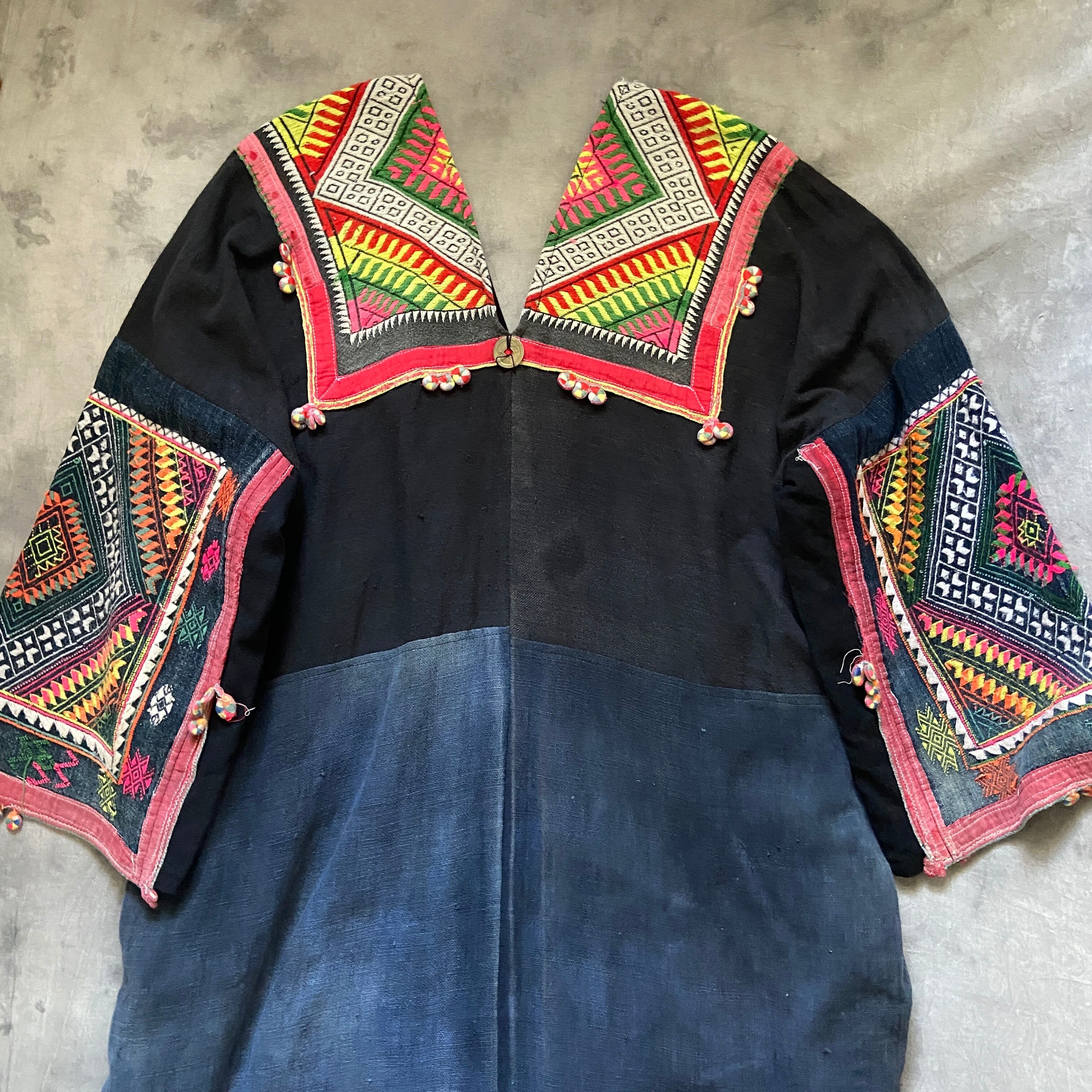 ザオ族の方達が頭に巻く古い布を贅沢に何枚も使って誰かがリメイクして作ったドレス。