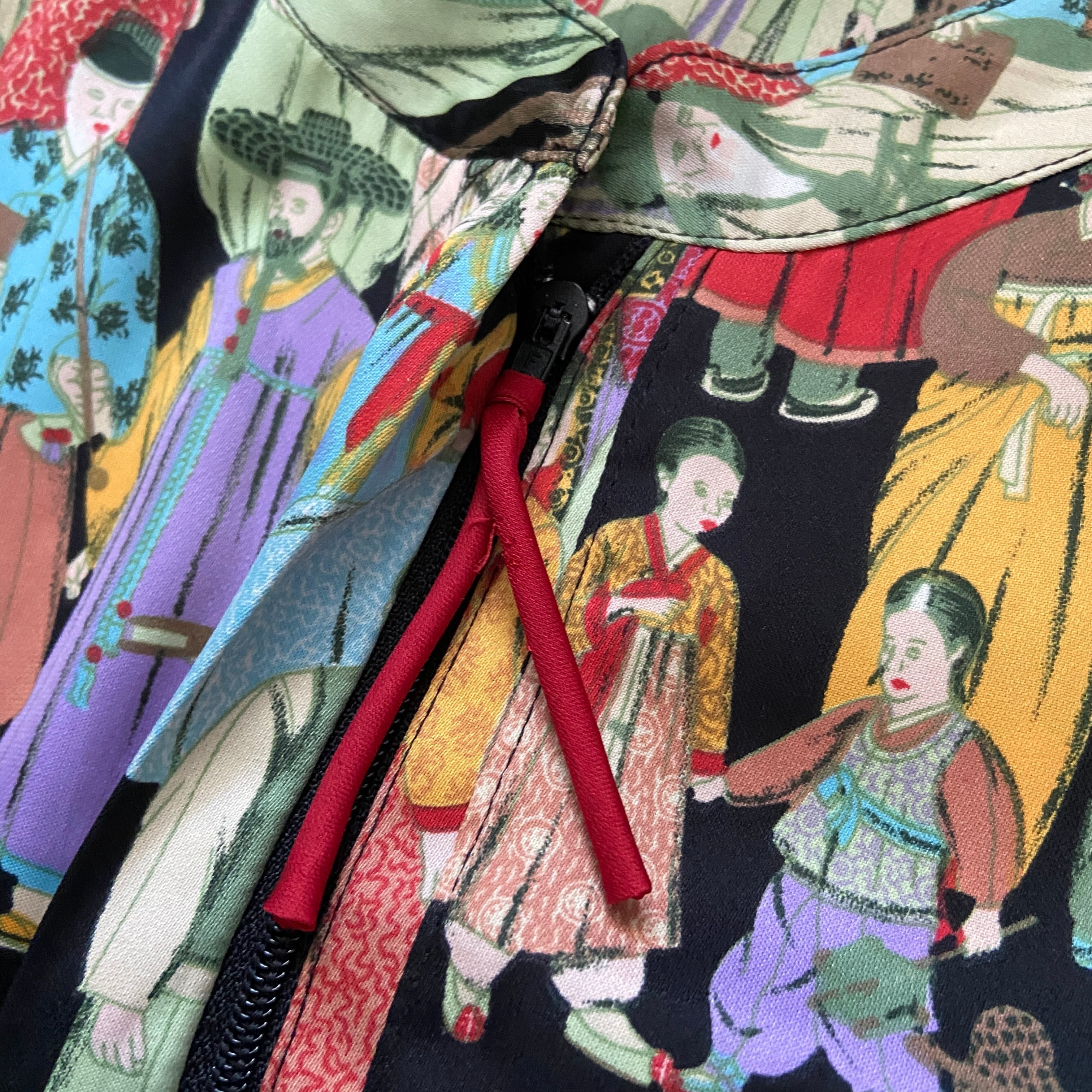 フロントジップで比翼仕立ての丁寧な作り。