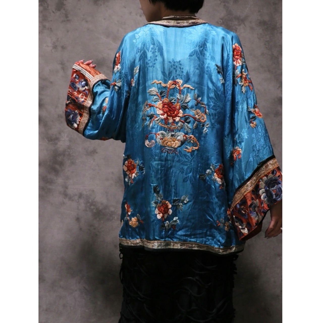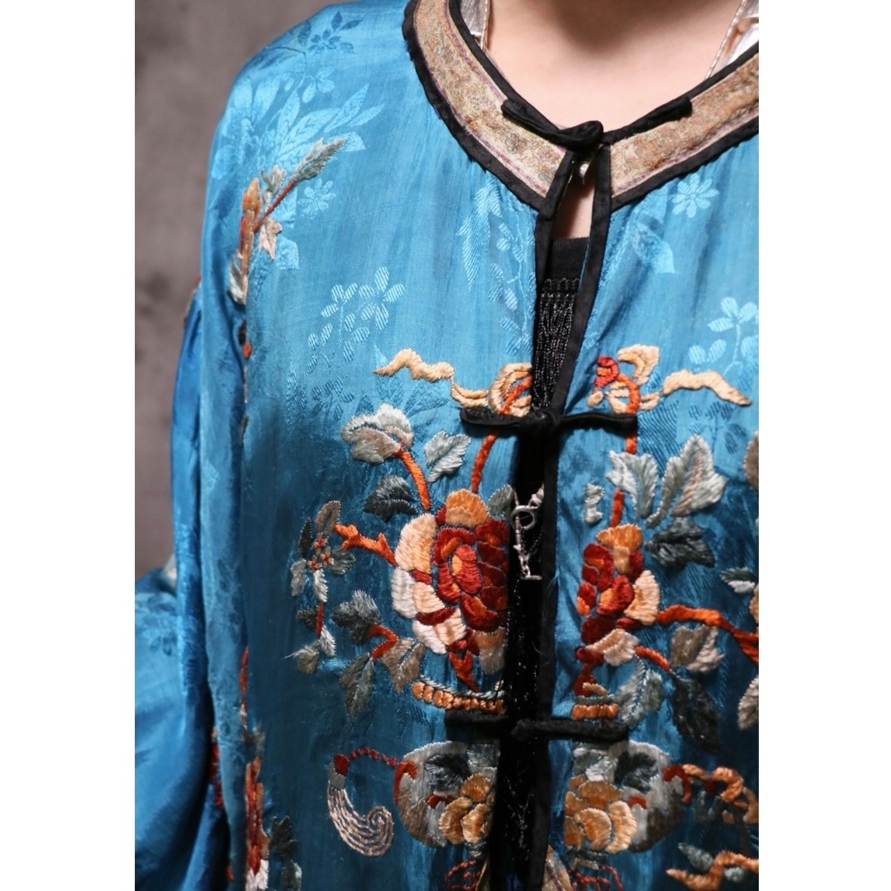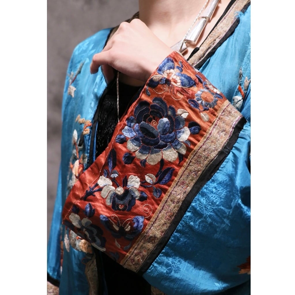 シルクのトロッとした肌馴染みの良さ、細かな織りのテープや袖口の刺繍のグラデーションももはやアート。