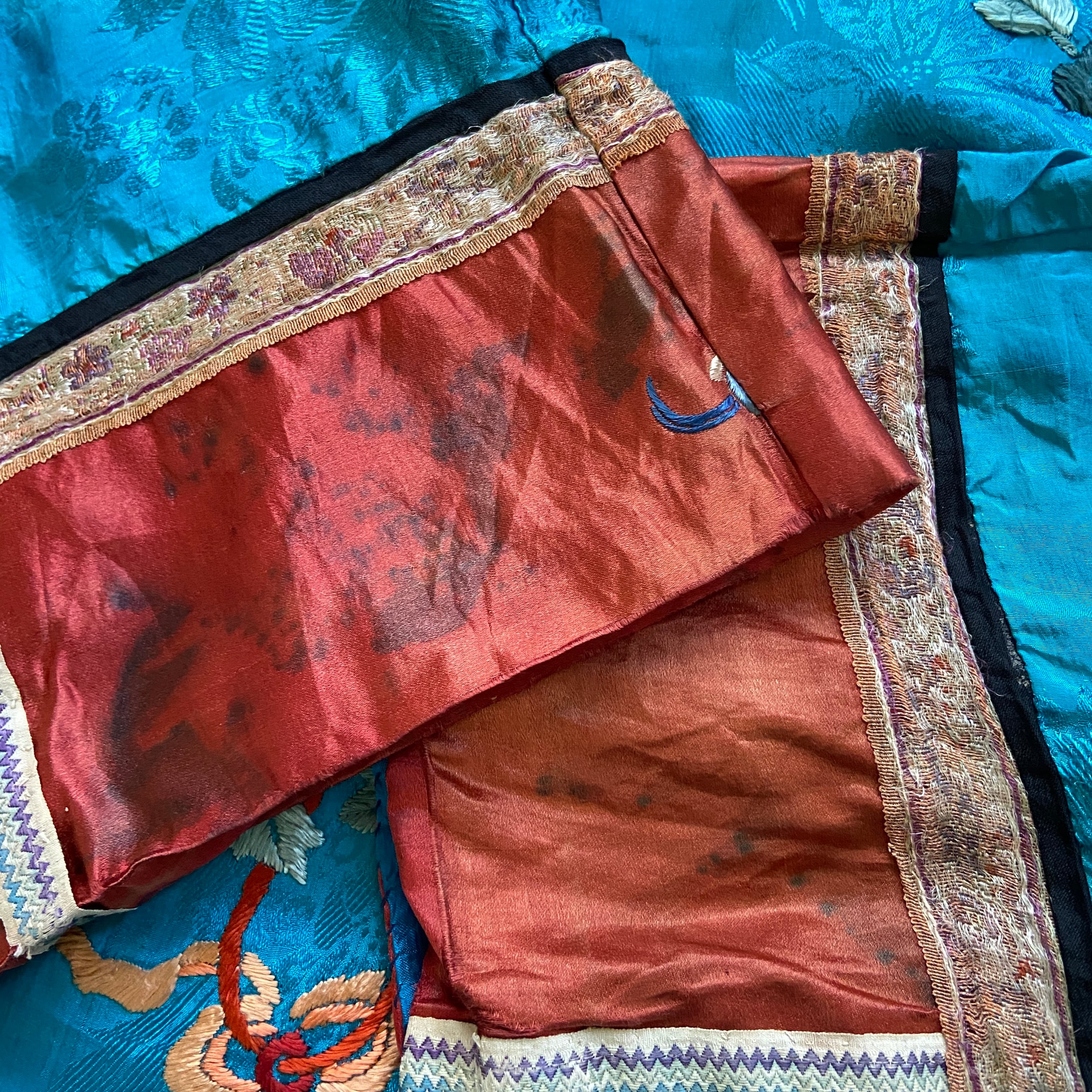 裏地に破れ、袖口に色移りのような汚れがございますが年代を考慮しても、風合いとしてお楽しみ頂ける程度かと思います。