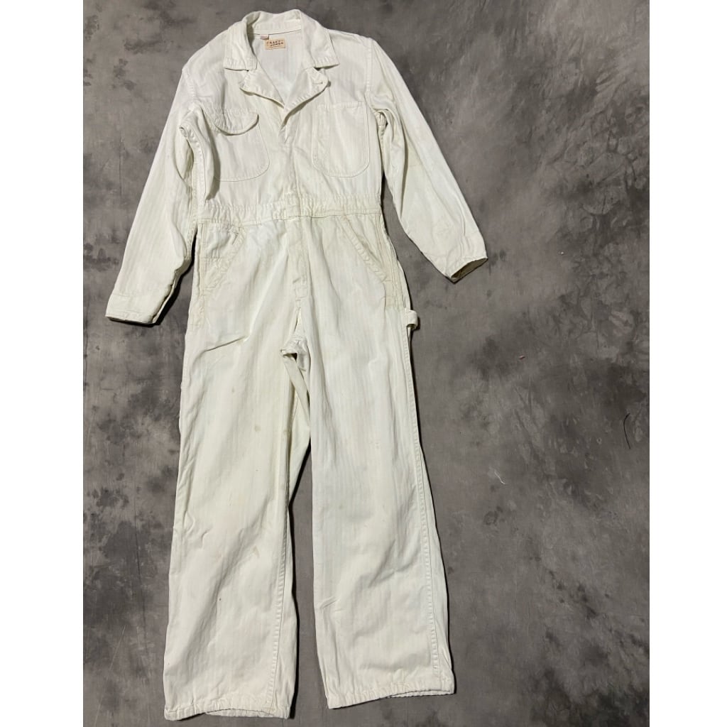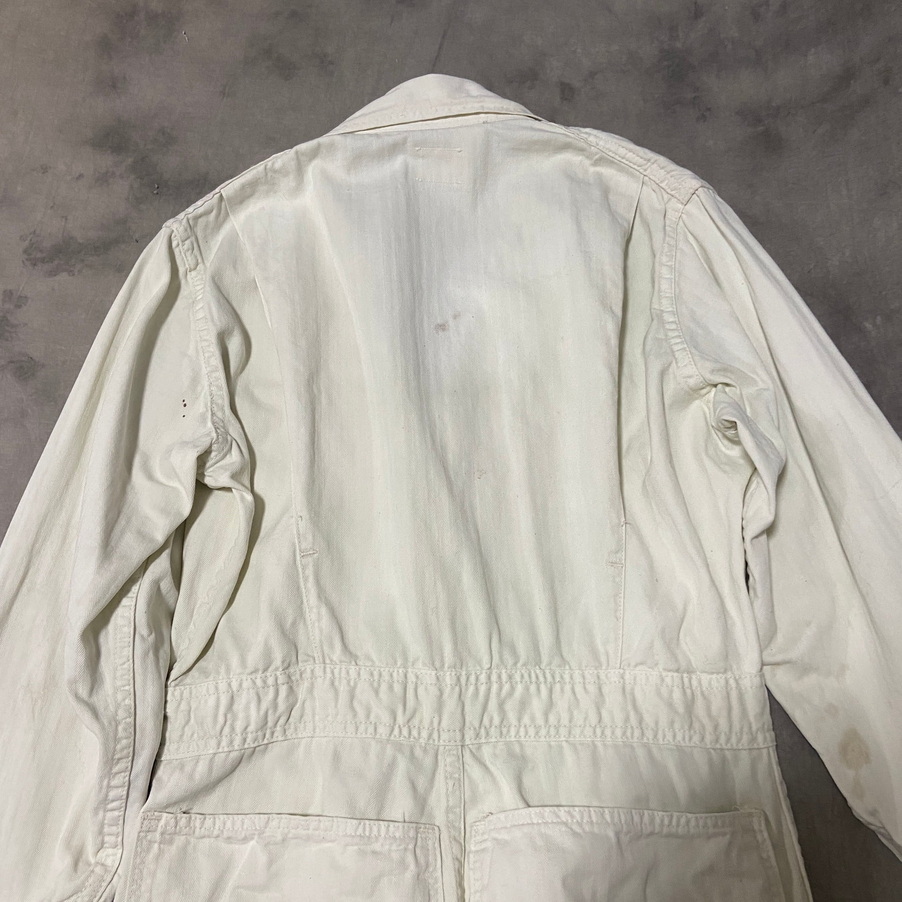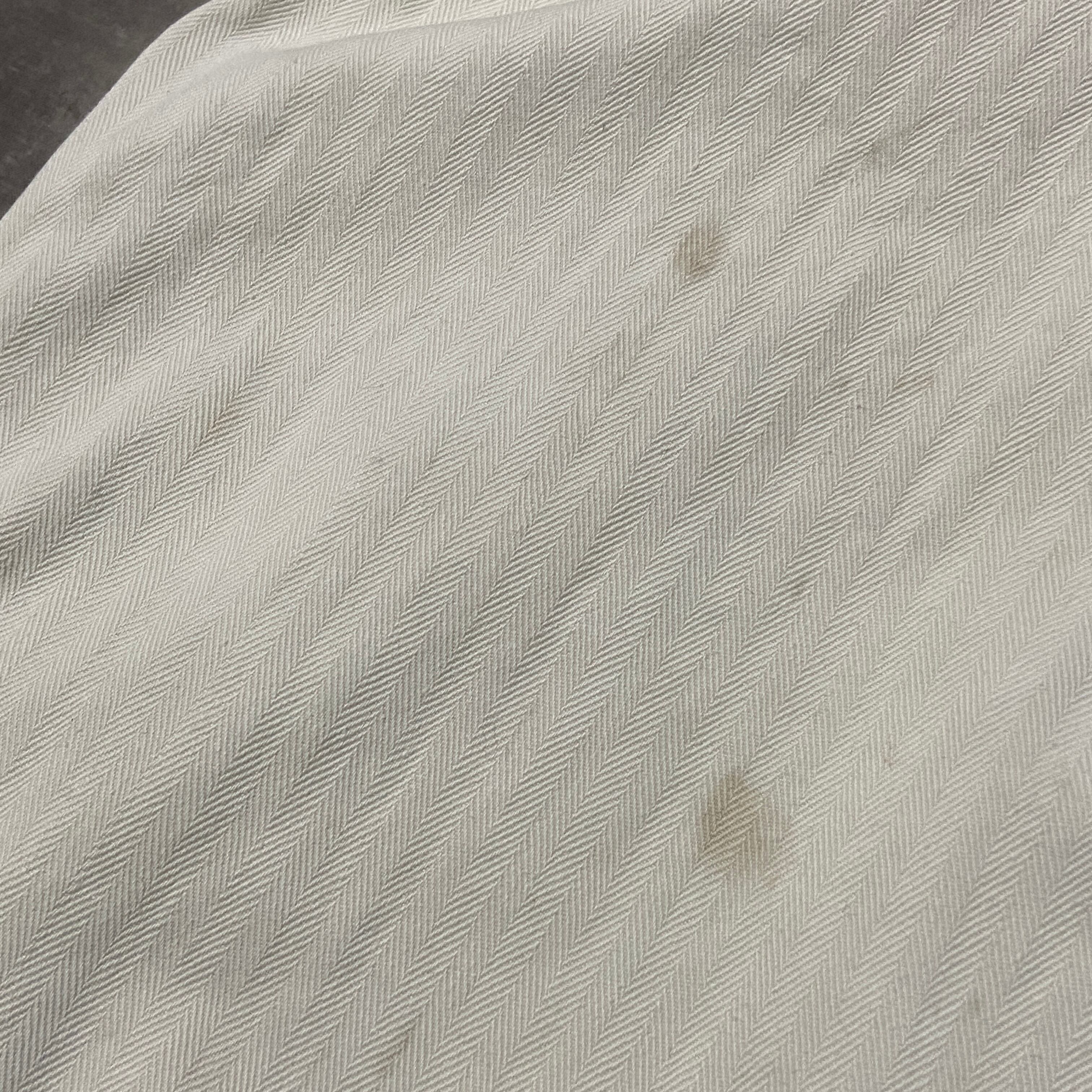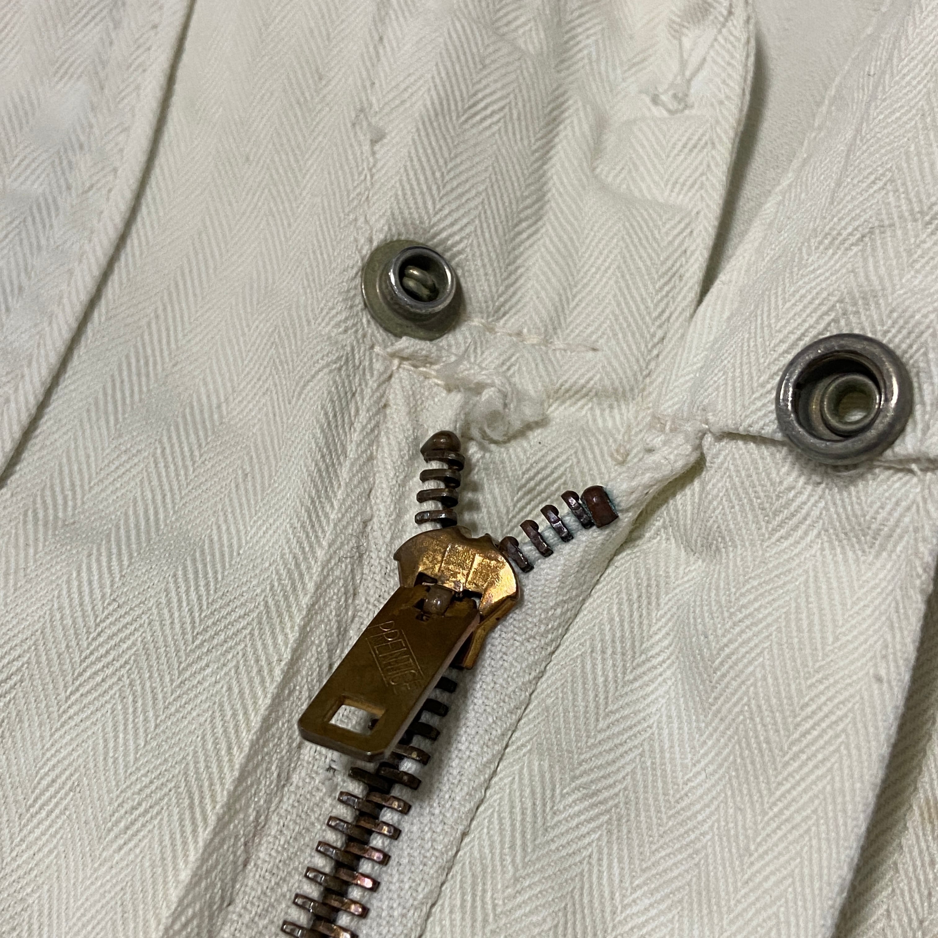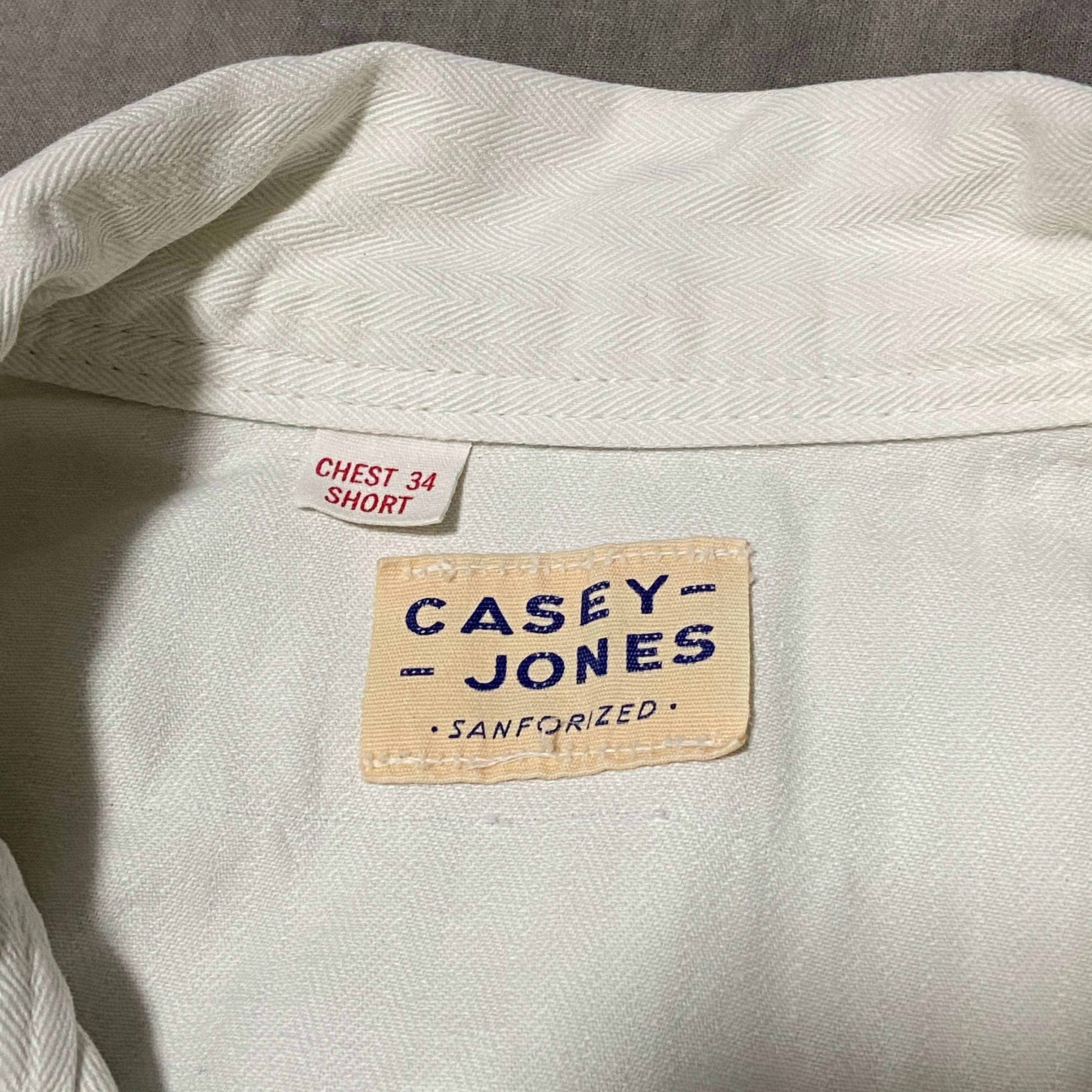 1950年代のアメリカ製ワークウェアの典型的な特徴の「CHEST 34 SHORT」というサイズ表記や、シンプルな織りデザインのタグ、そしてヘリンボーン