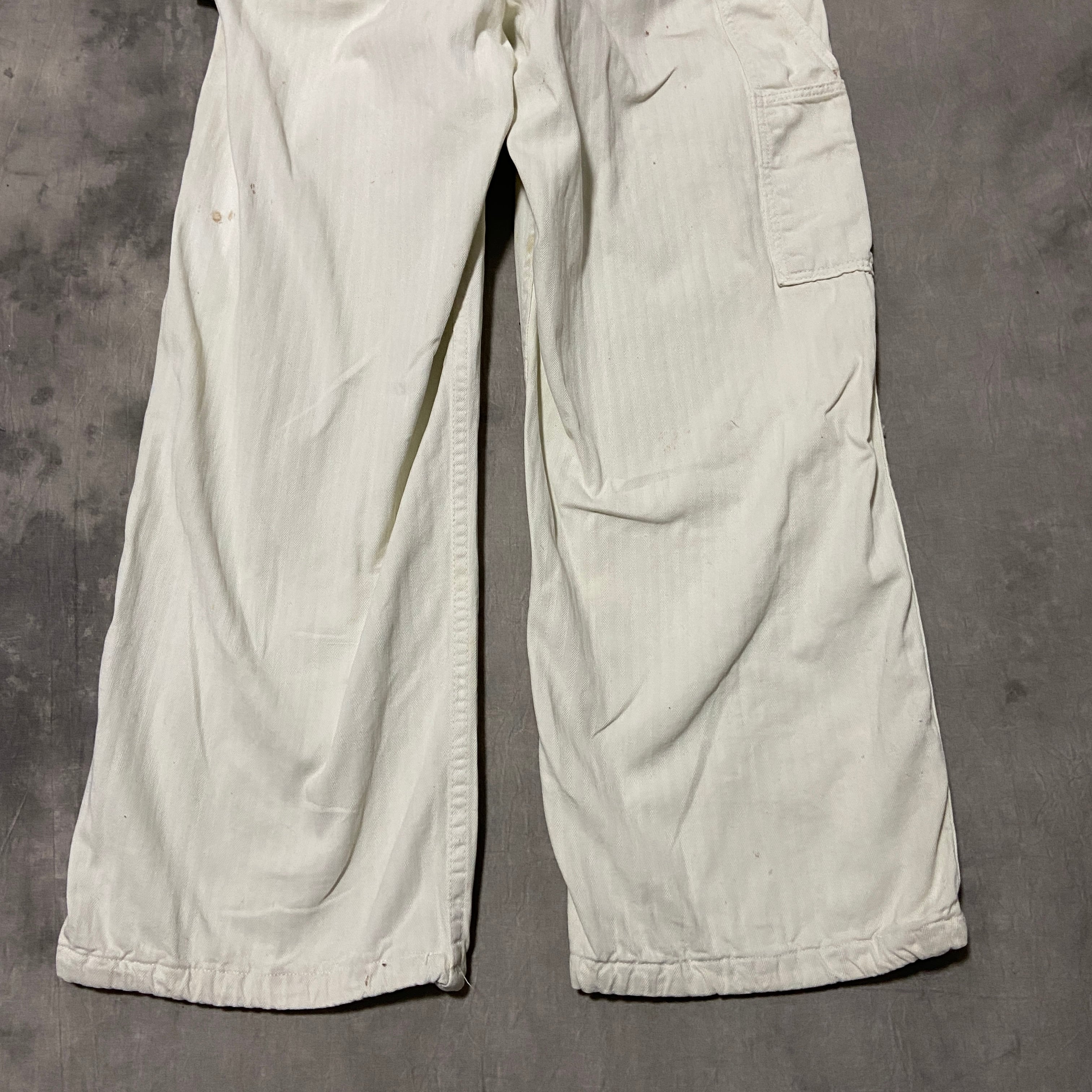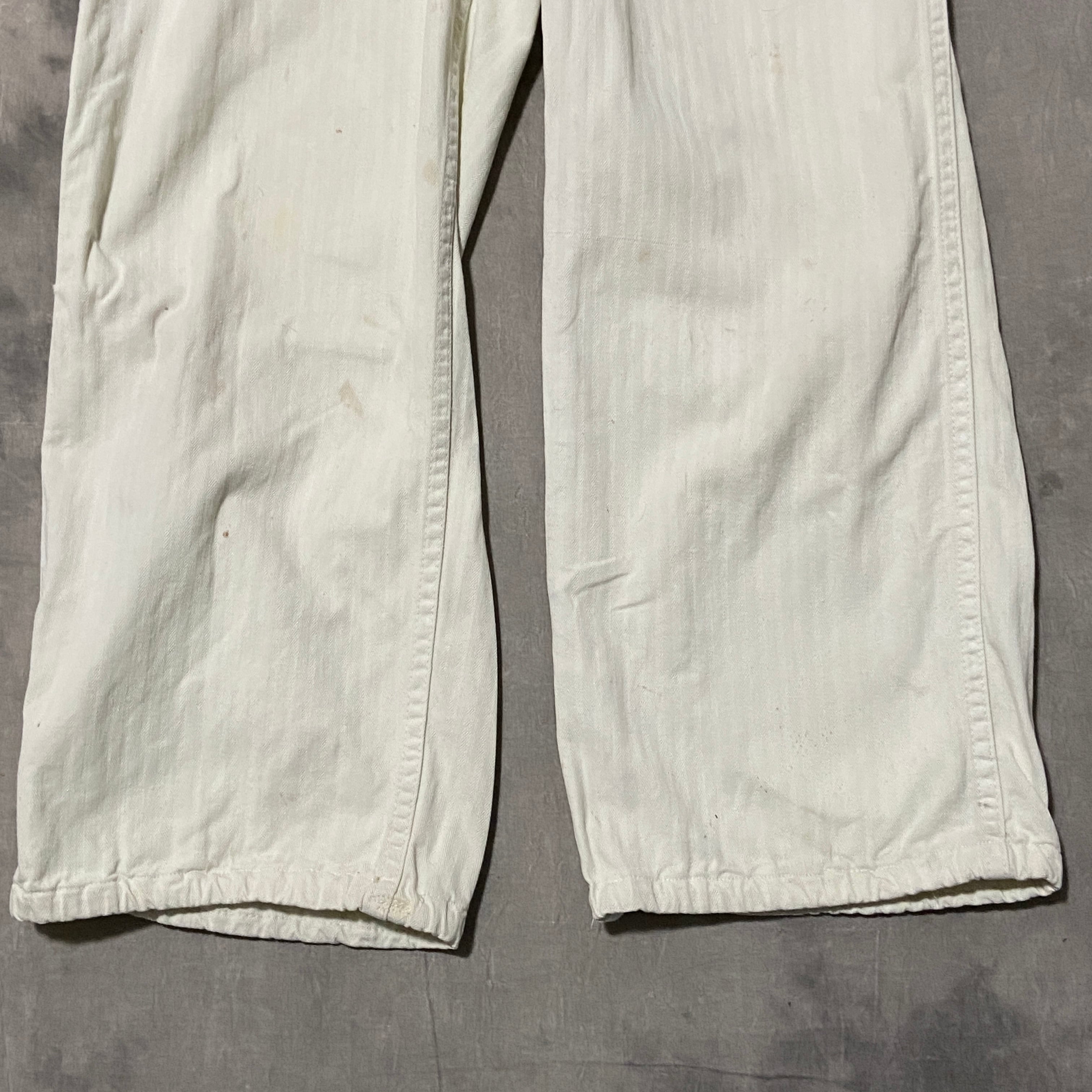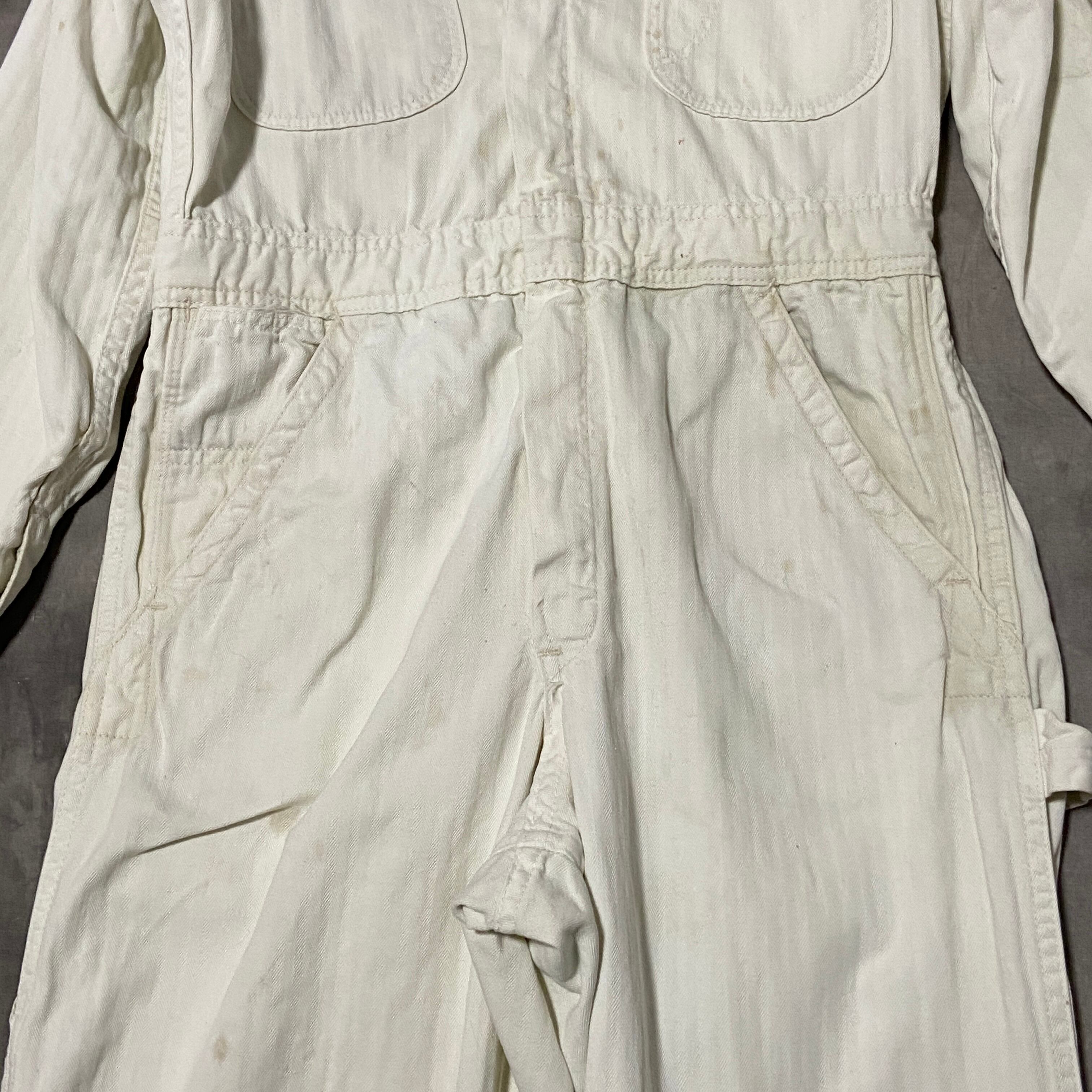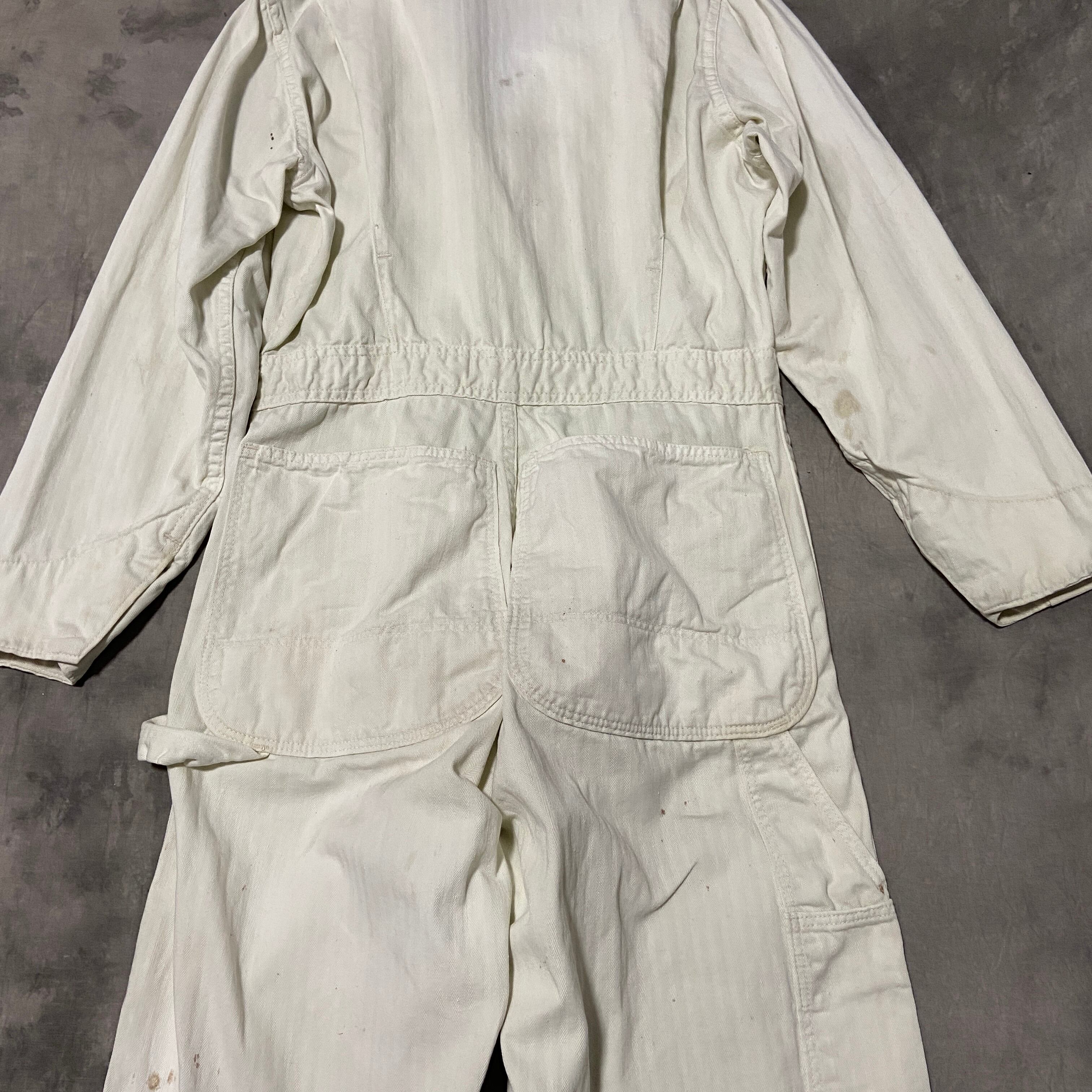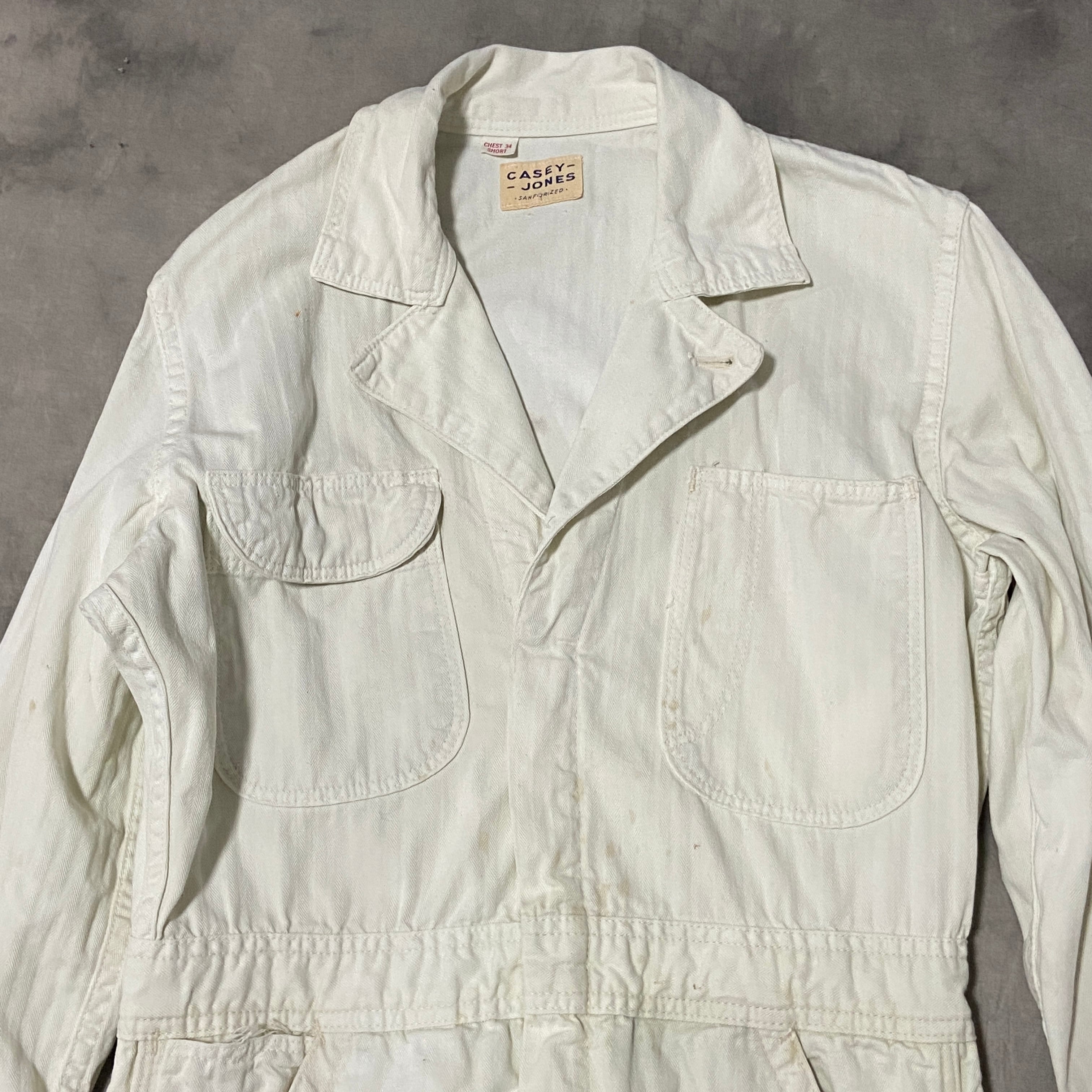 1950年代のアメリカ製ワークウェアの典型的な特徴の「CHEST 34 SHORT」というサイズ表記や、シンプルな織りデザインのタグ、そしてヘリンボーン