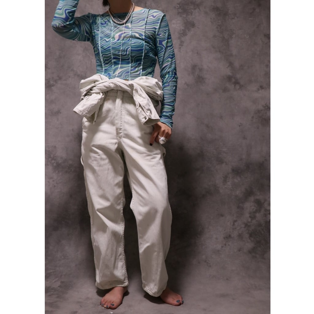 肩幅43cm、身幅54cm、袖丈55cm、ウエスト76cm、着丈133cm、股上32cm、渡り幅31cm、裾幅22.5cm