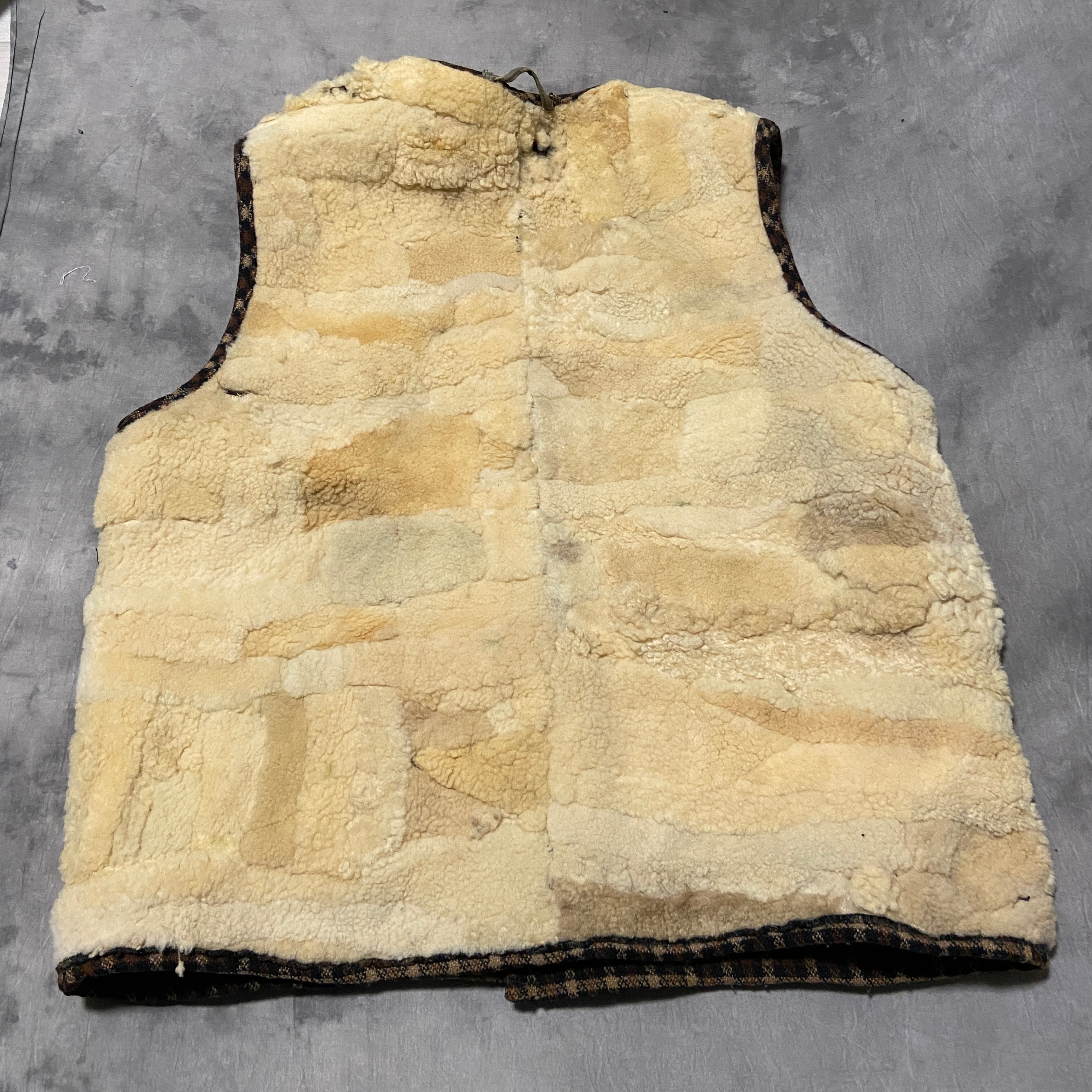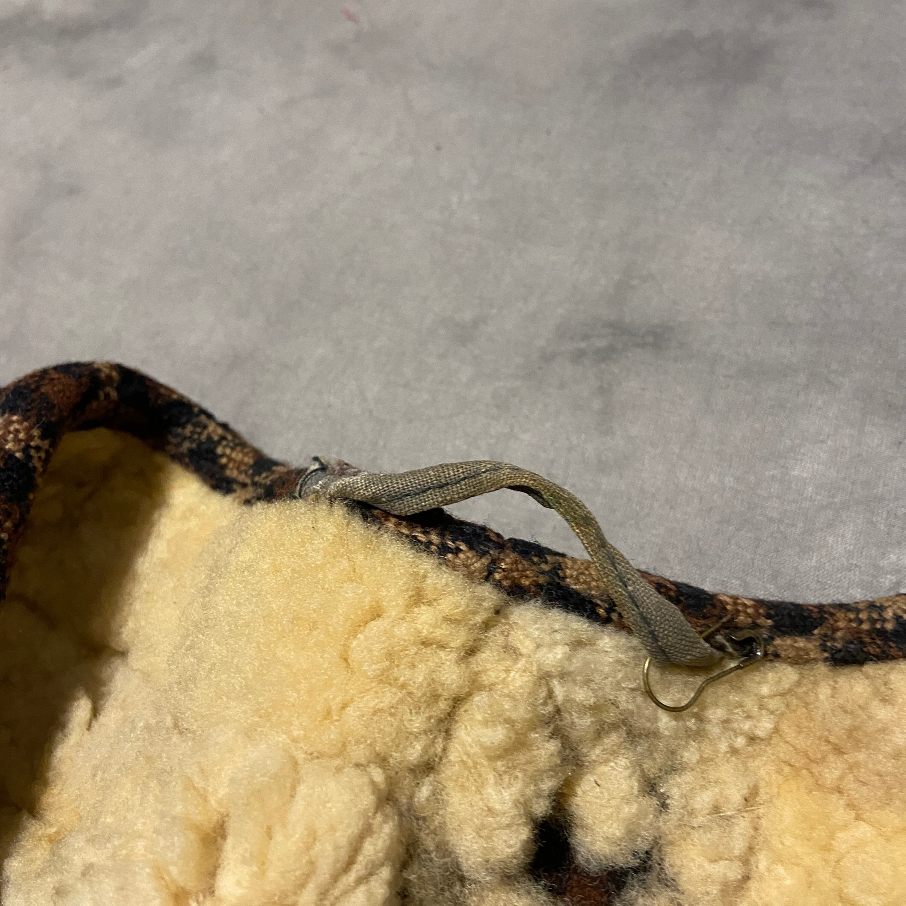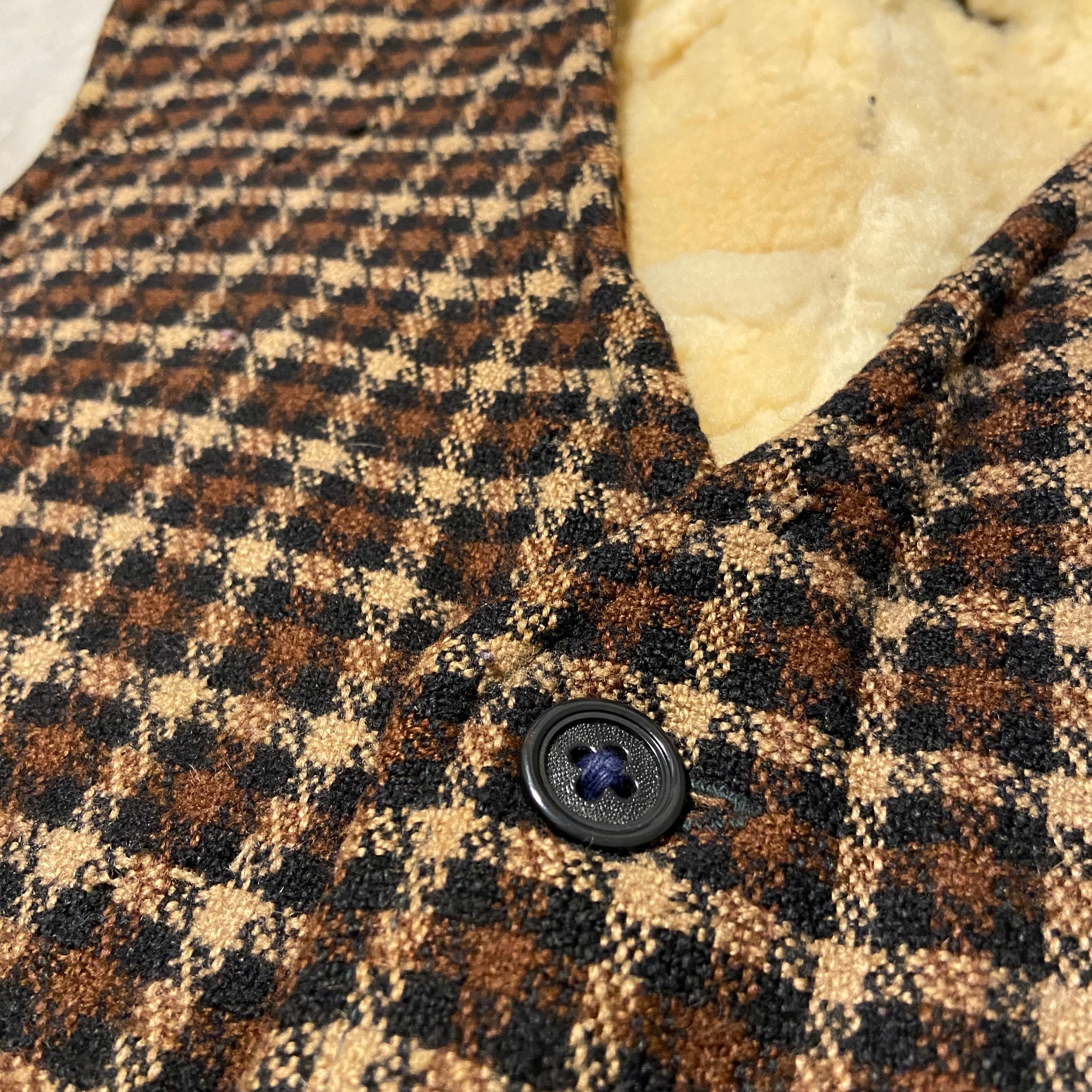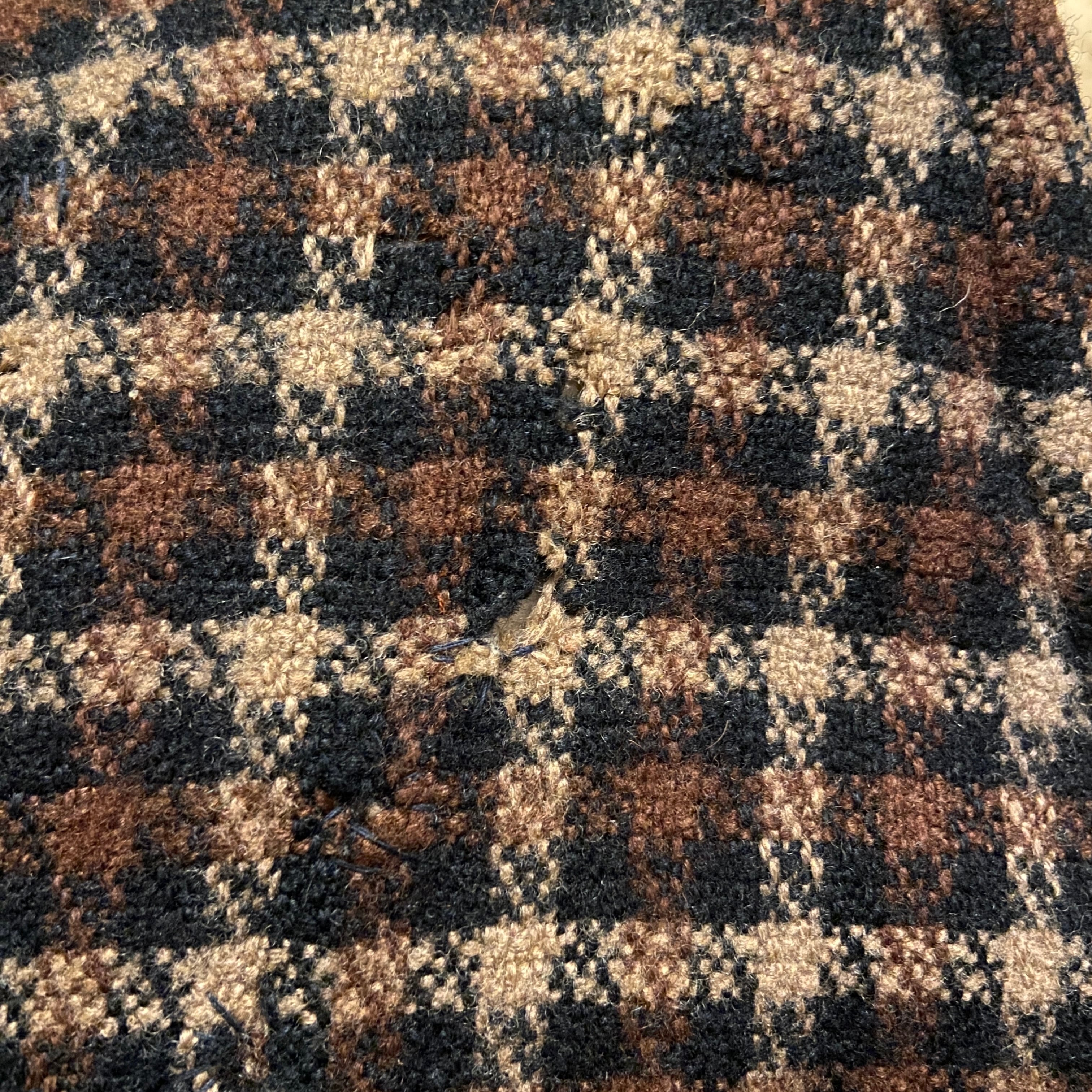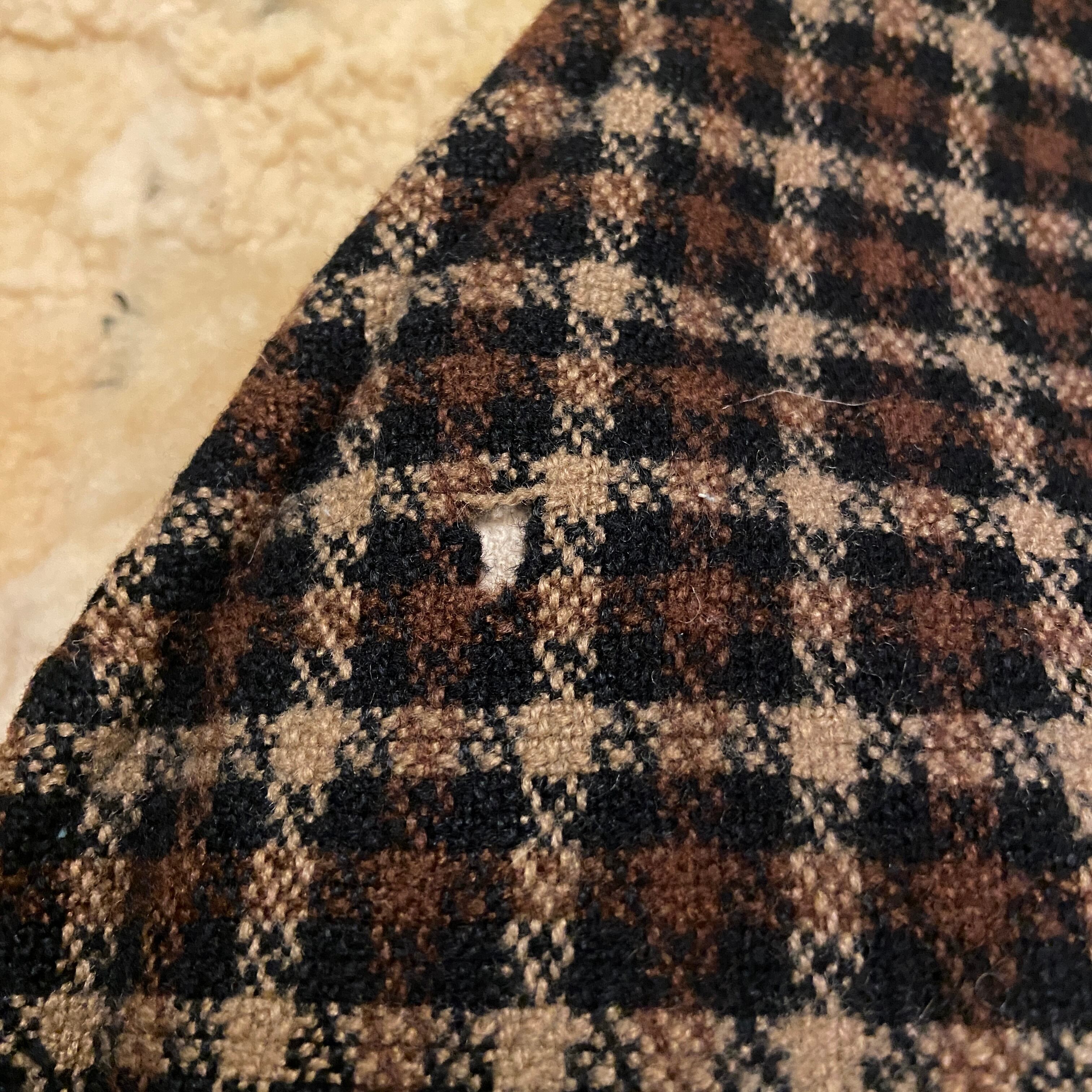 ムートン生地の面の上の方にムートンが取れてしまっている部分、チェックの面に小さな傷が数箇所ございますが風合いとしてお楽しみ頂ける程度かと思います。