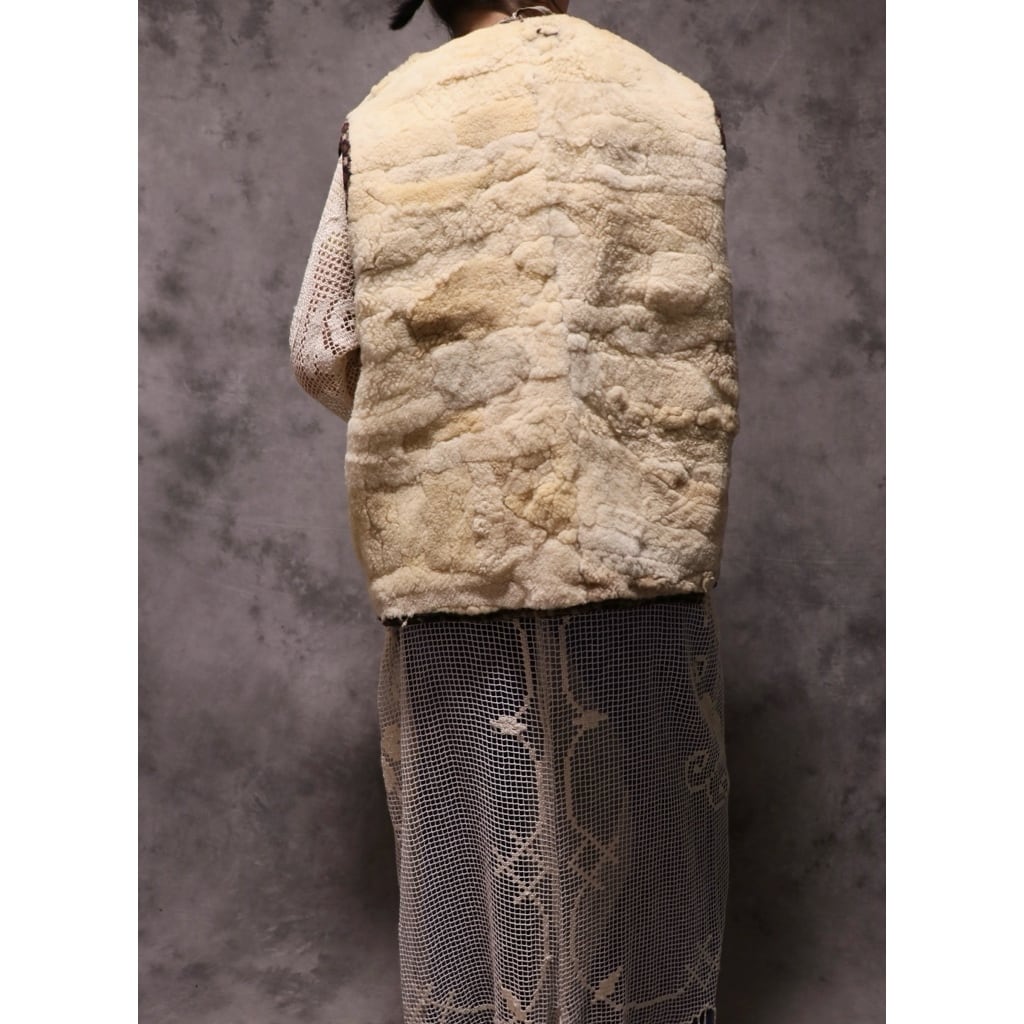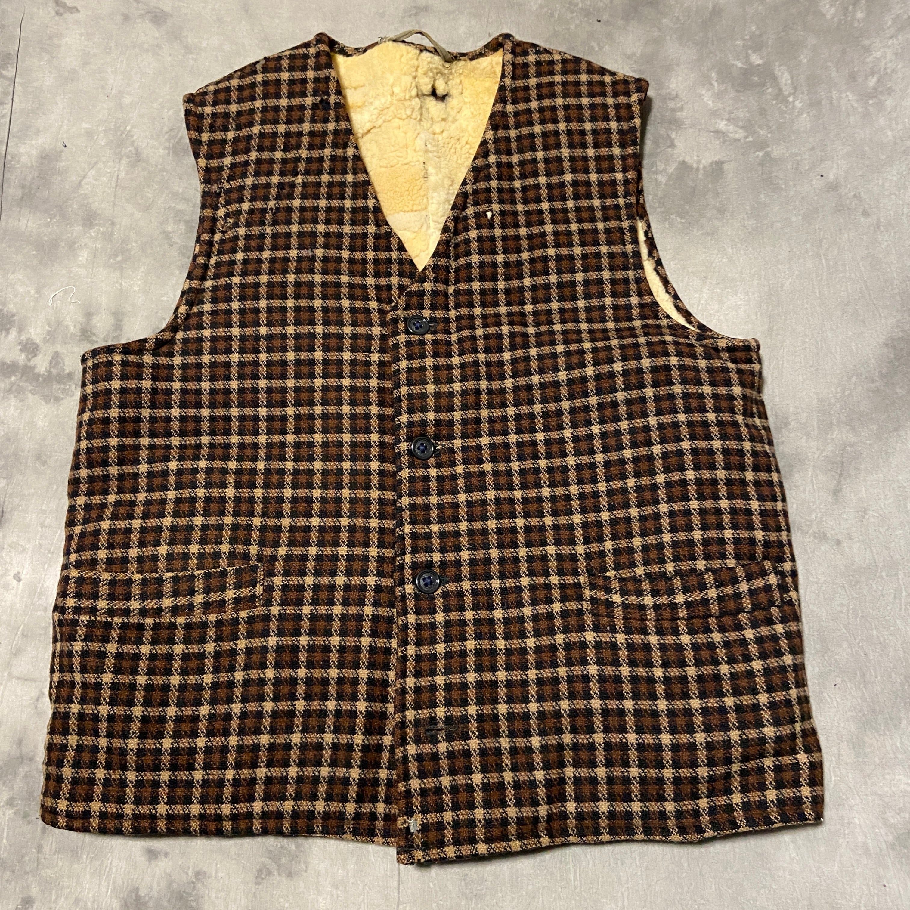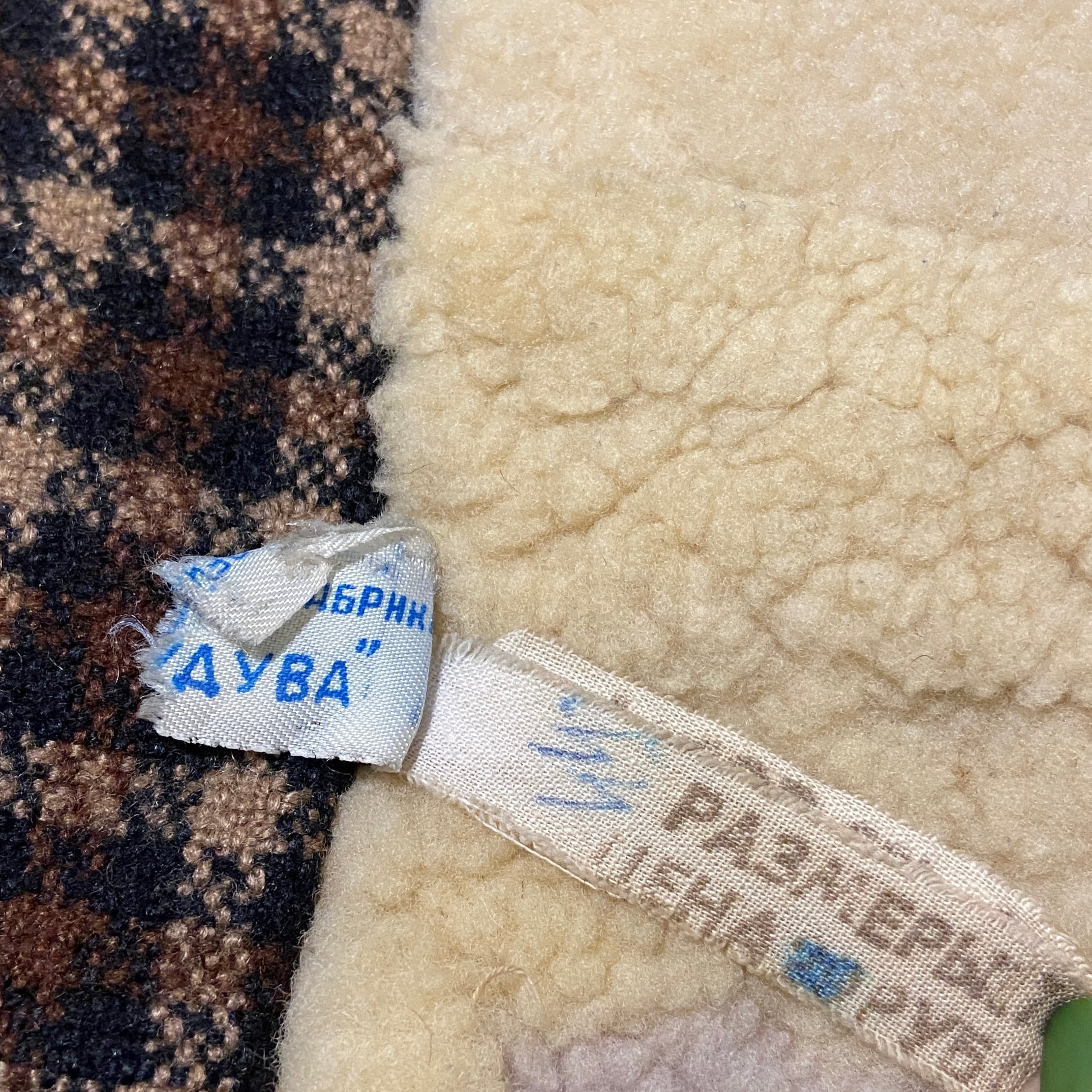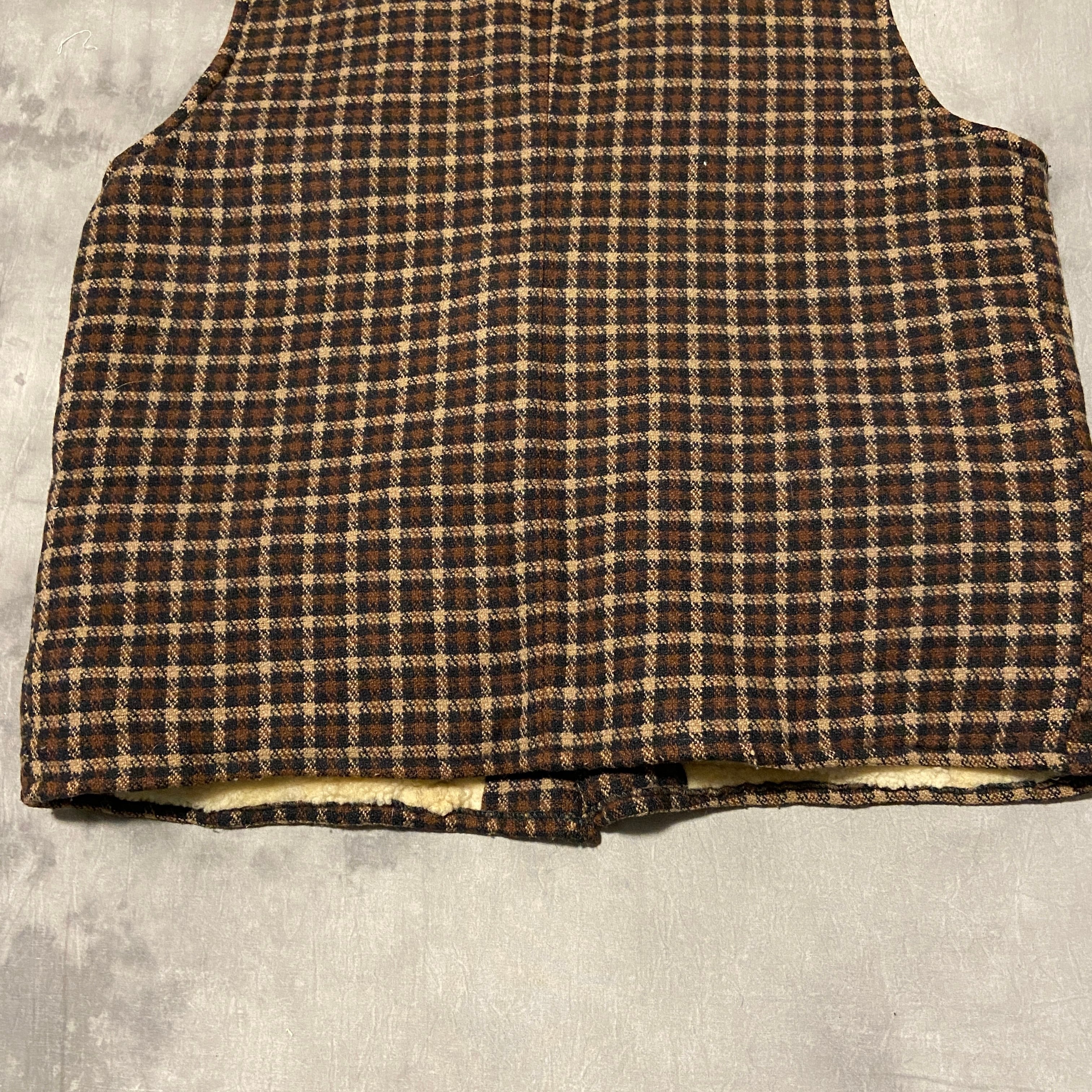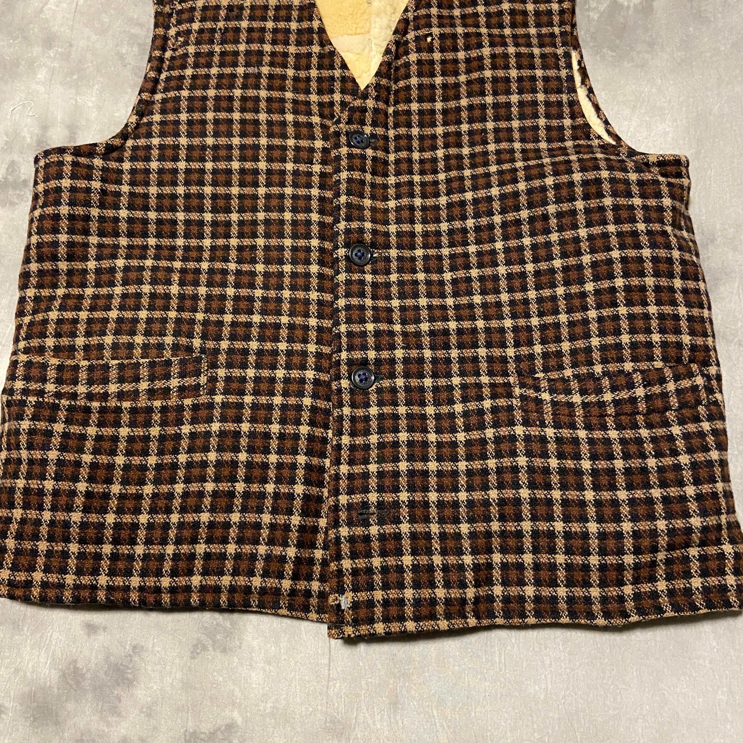 ムートン生地の面の上の方にムートンが取れてしまっている部分、チェックの面に小さな傷が数箇所ございますが風合いとしてお楽しみ頂ける程度かと思います。