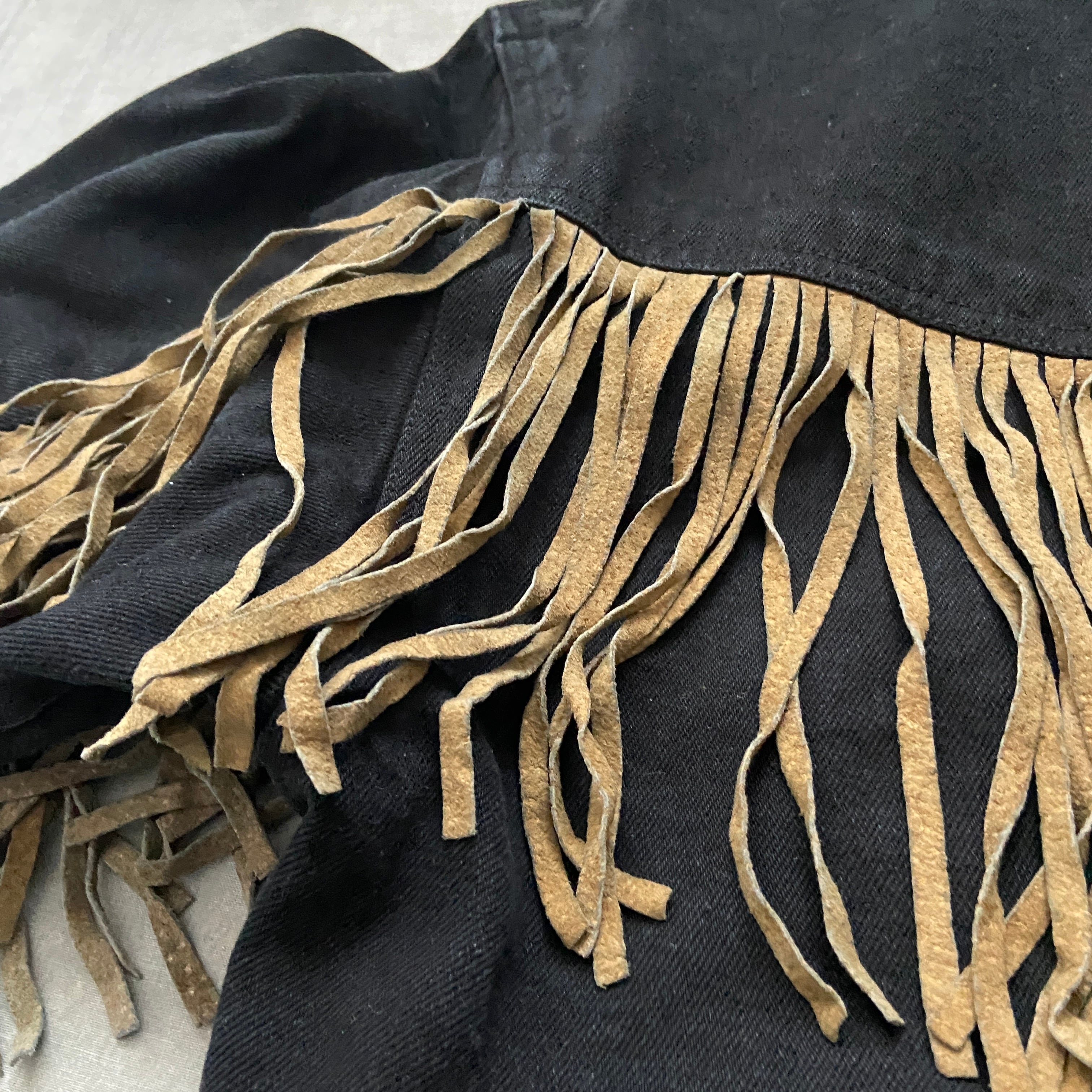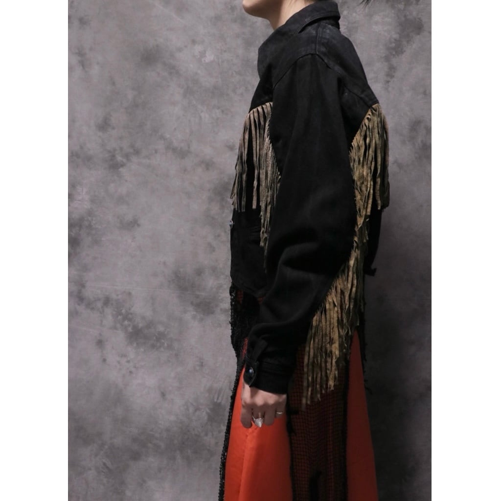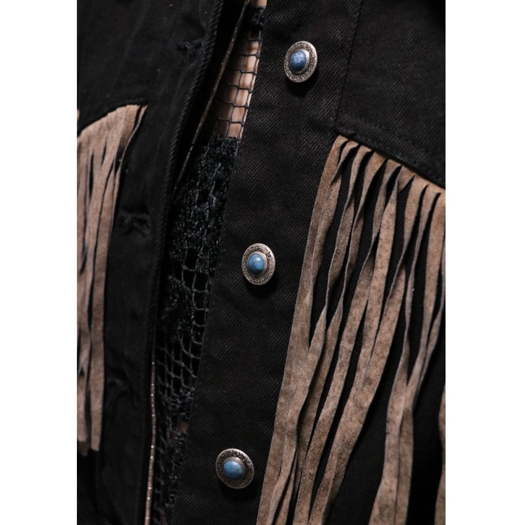 ブラックデニム×スエードフリンジジャケット