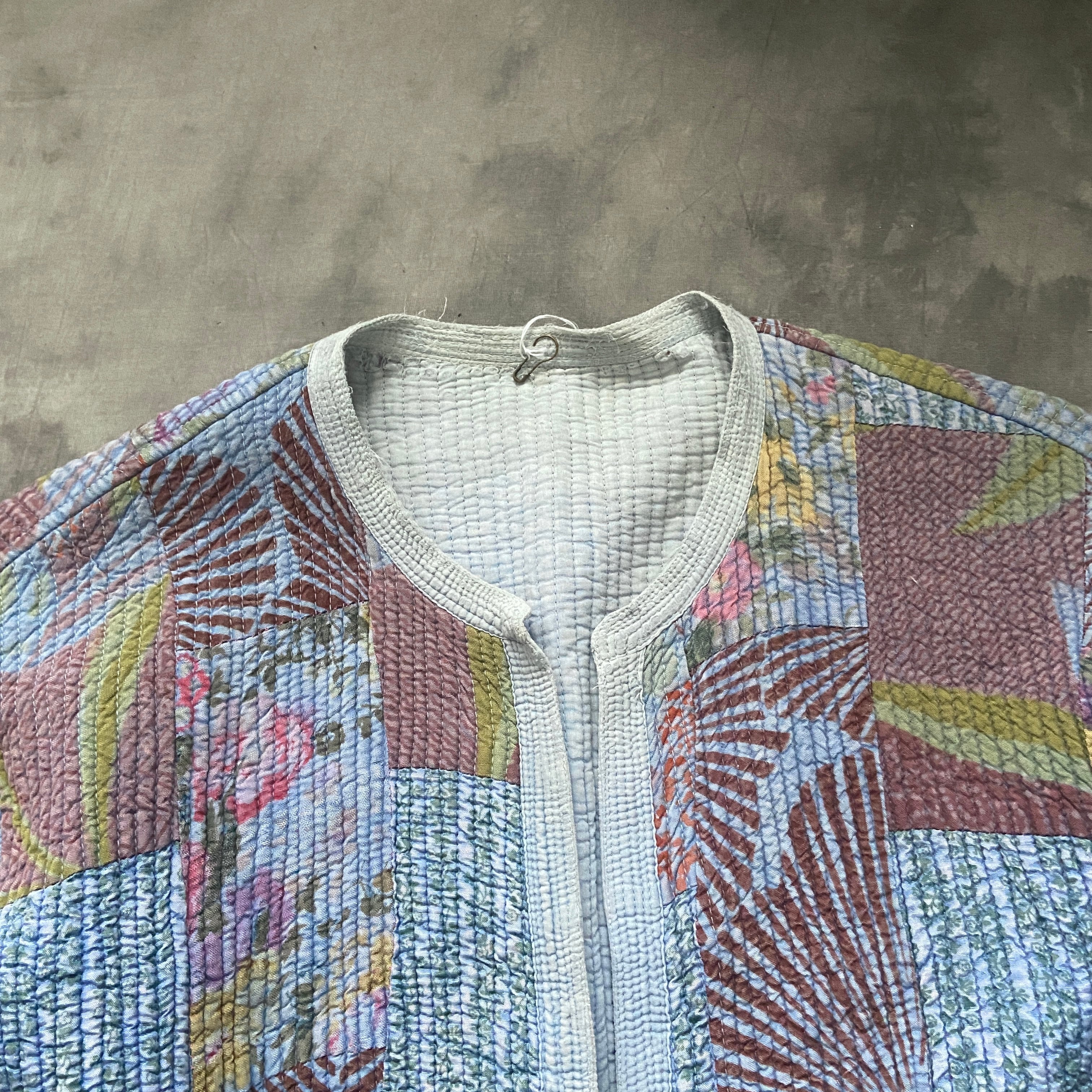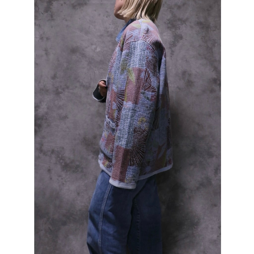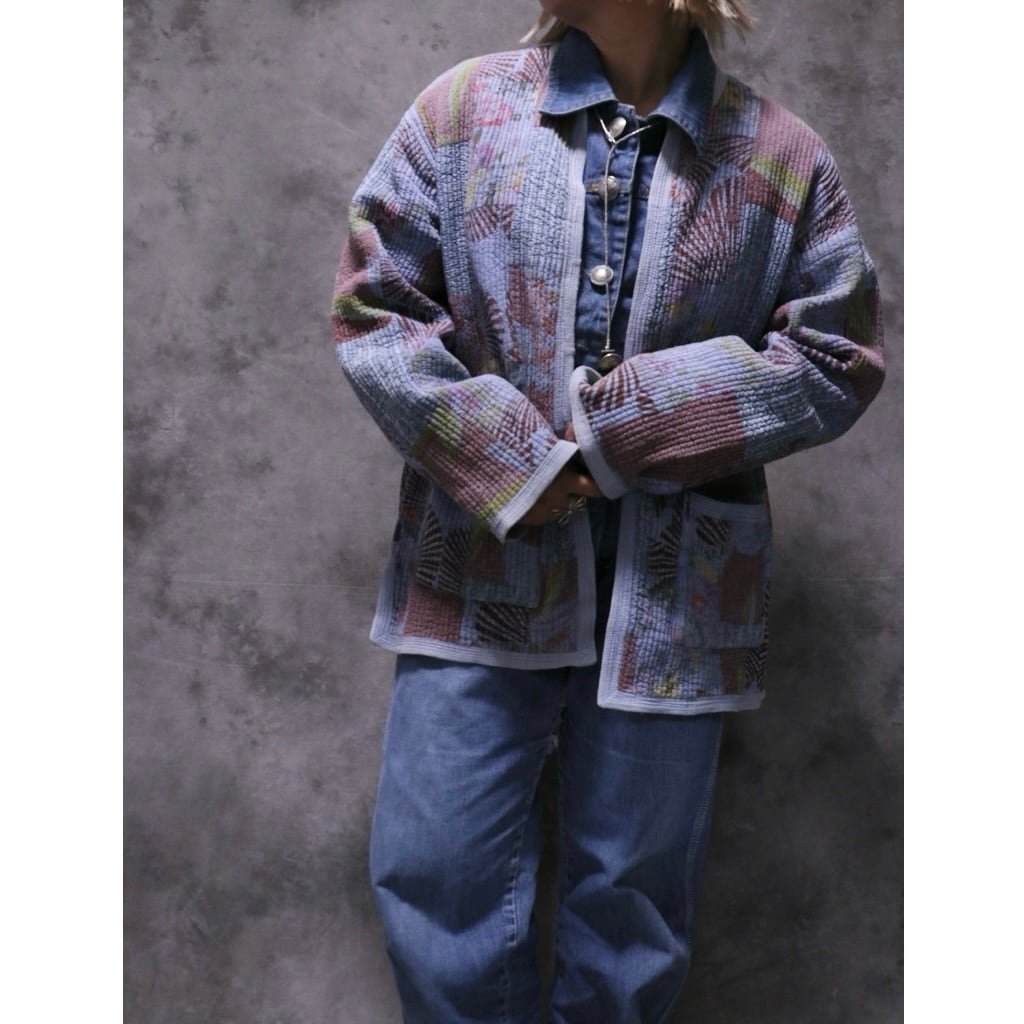 インドのカンタのような生地で全体にステッチの入ったとても手の込んだ生地を使ったデザイン