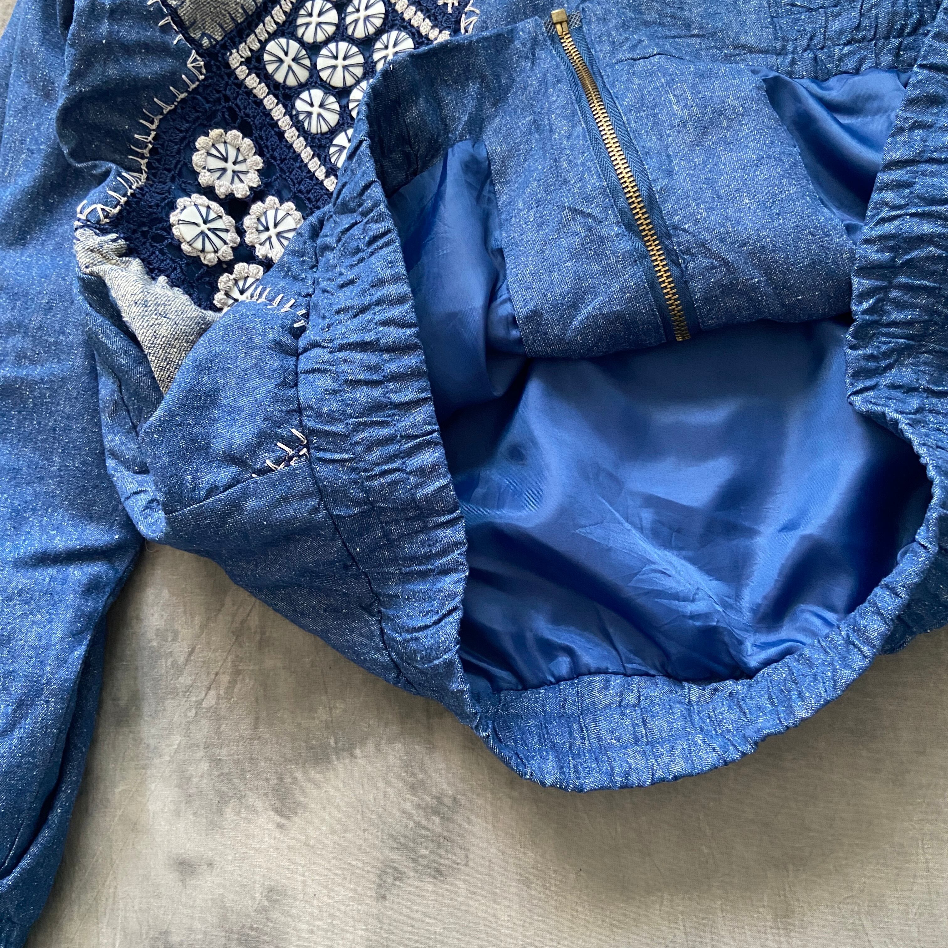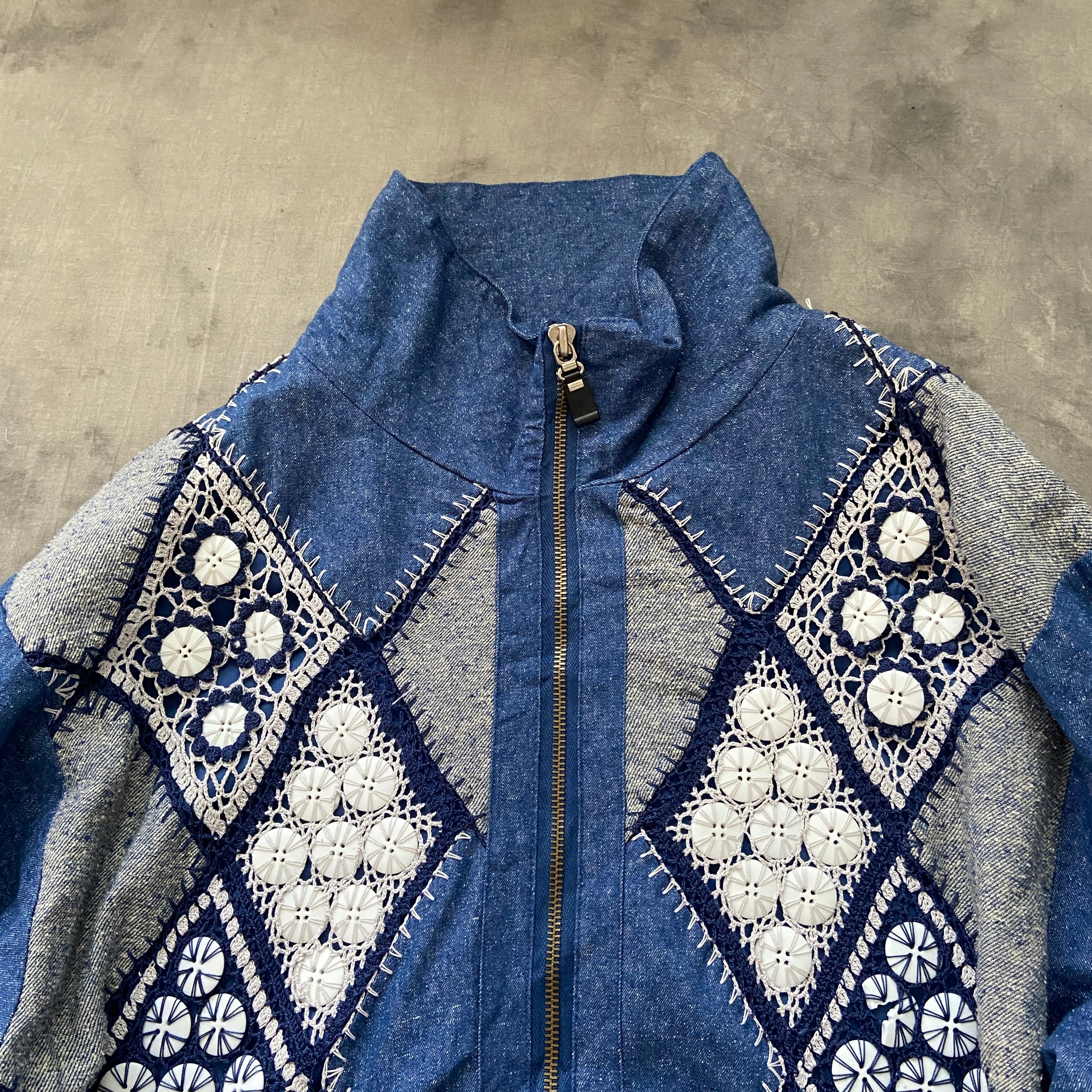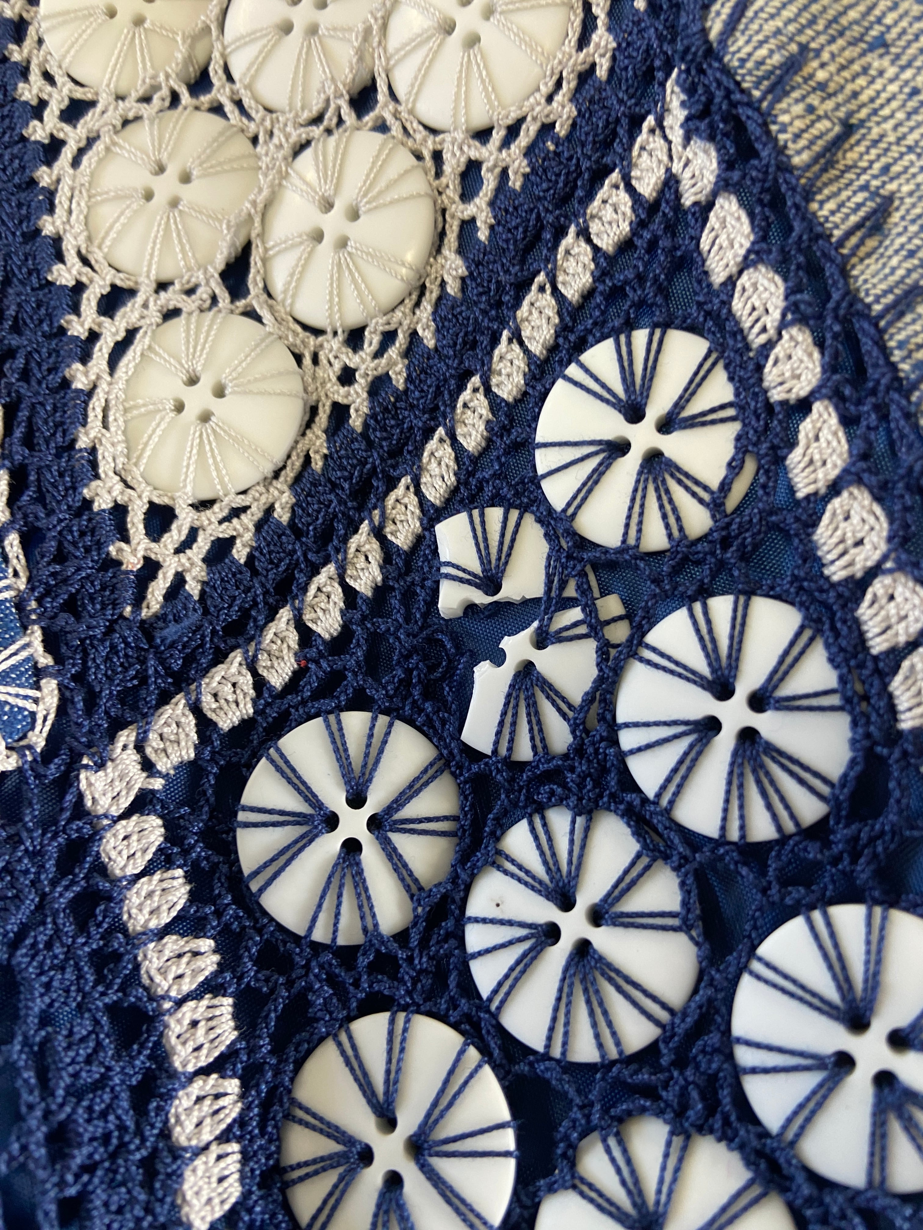 クロシェレースに贅沢にボタンが施された珍しいデザイン