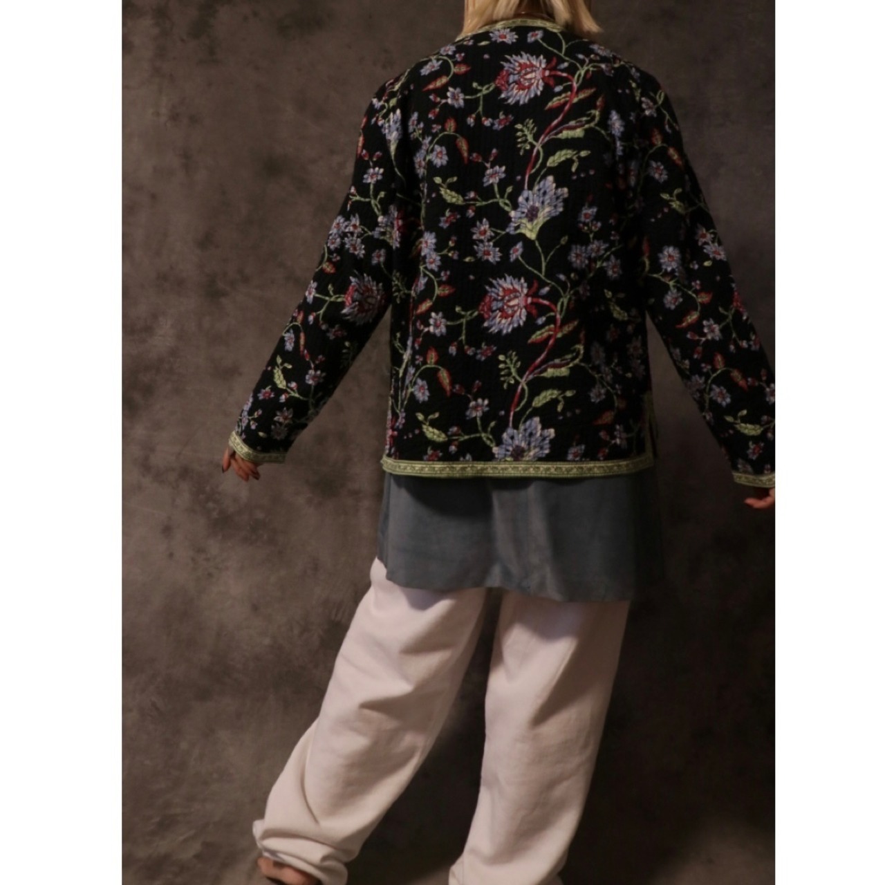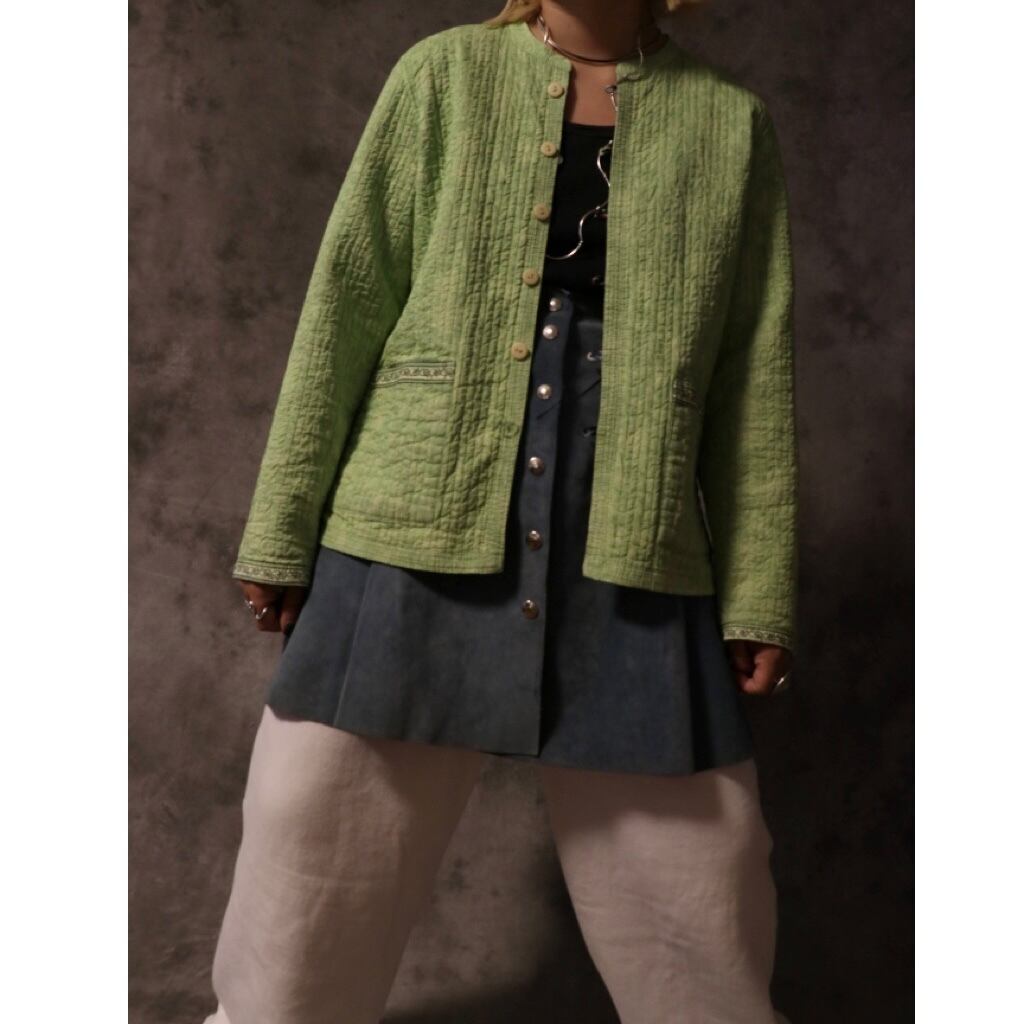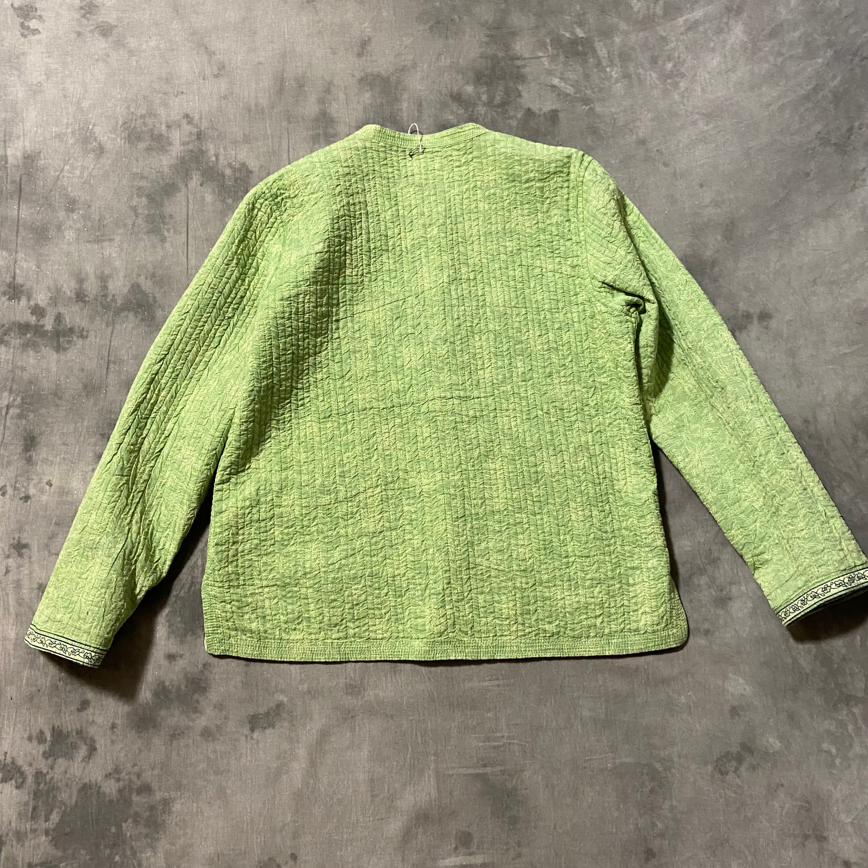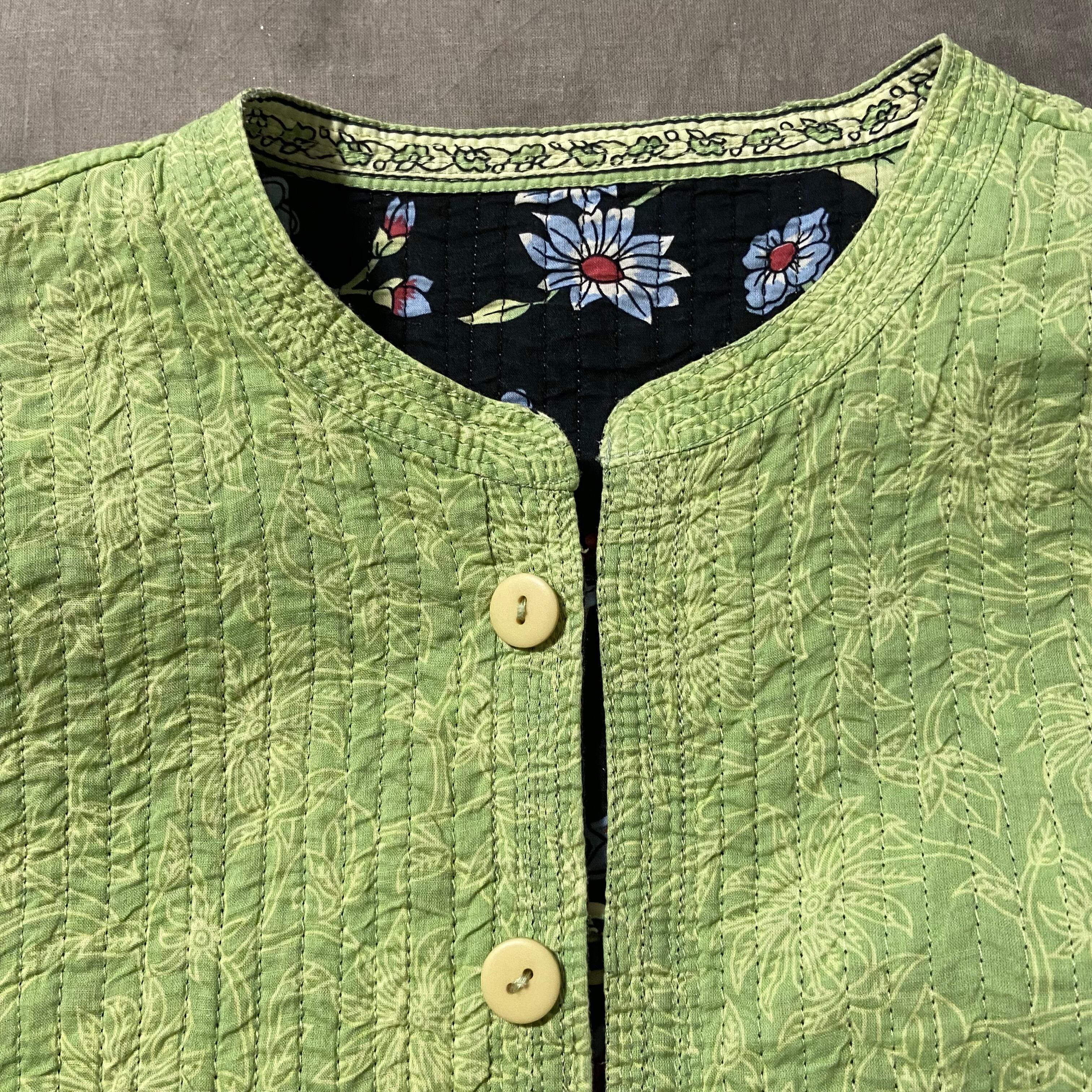 インドのカンタのような生地で全体にステッチの入ったとても手の込んだ生地を使ったリバーシブル