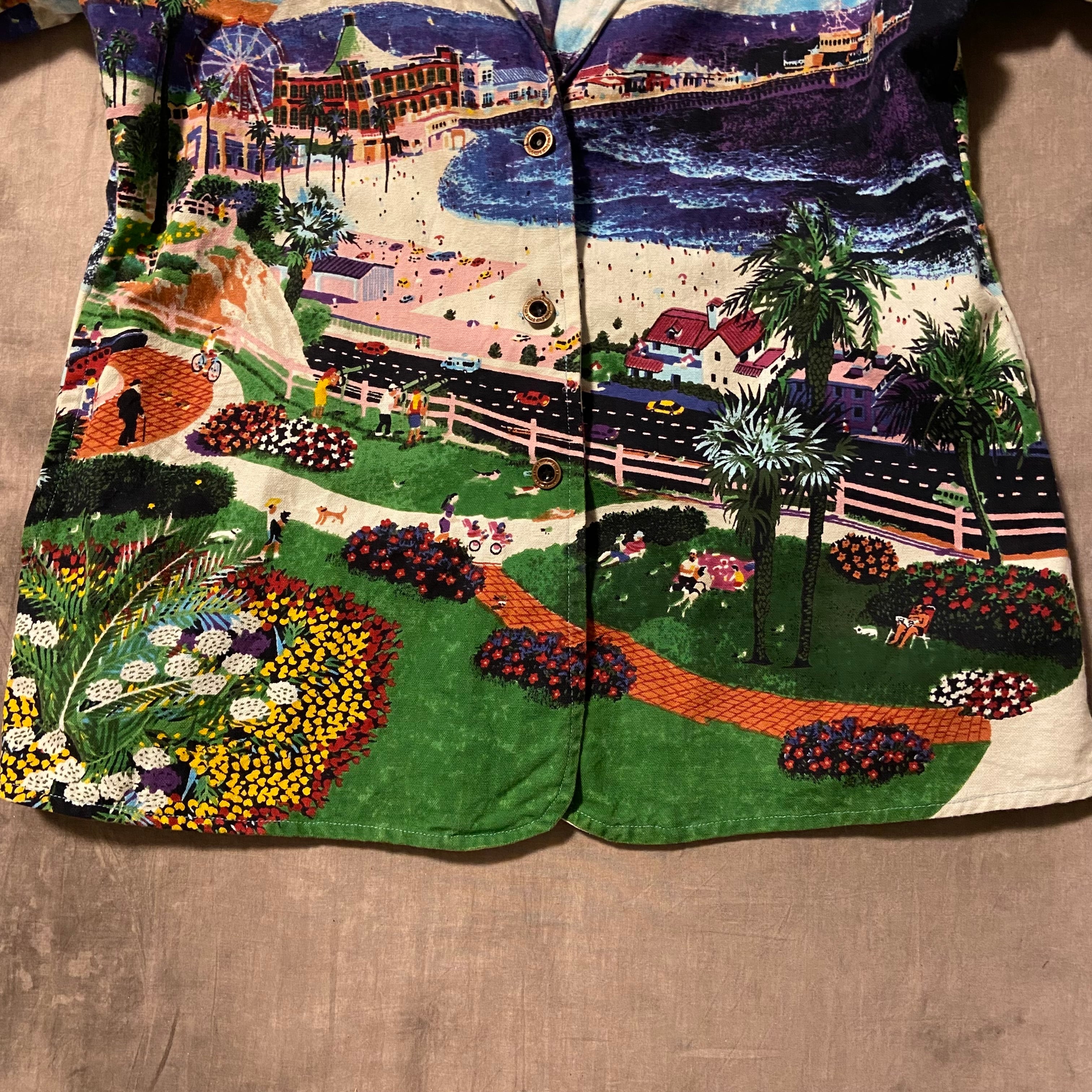 人、観覧車、犬抱いてる人、自転車乗ってる人、海で遊んでる人、杖ついてる人、道路、車、植物、空