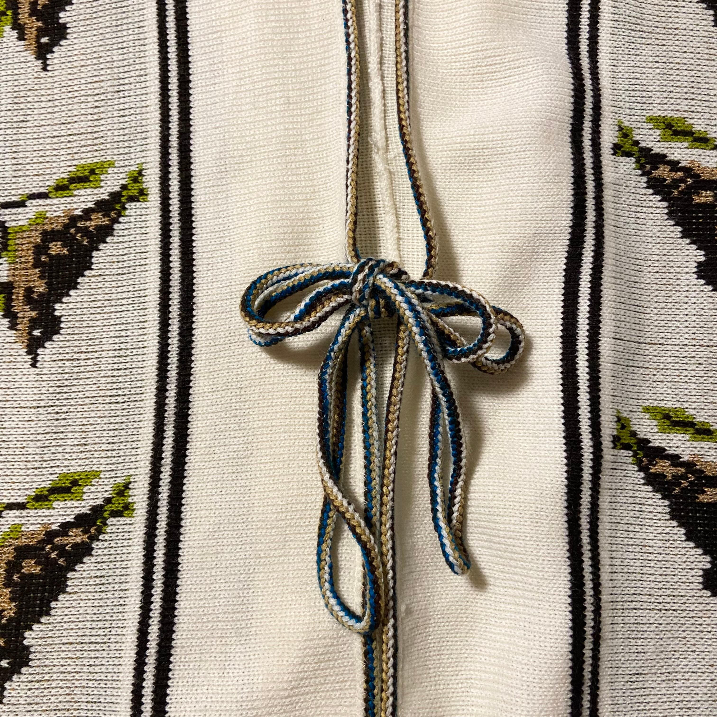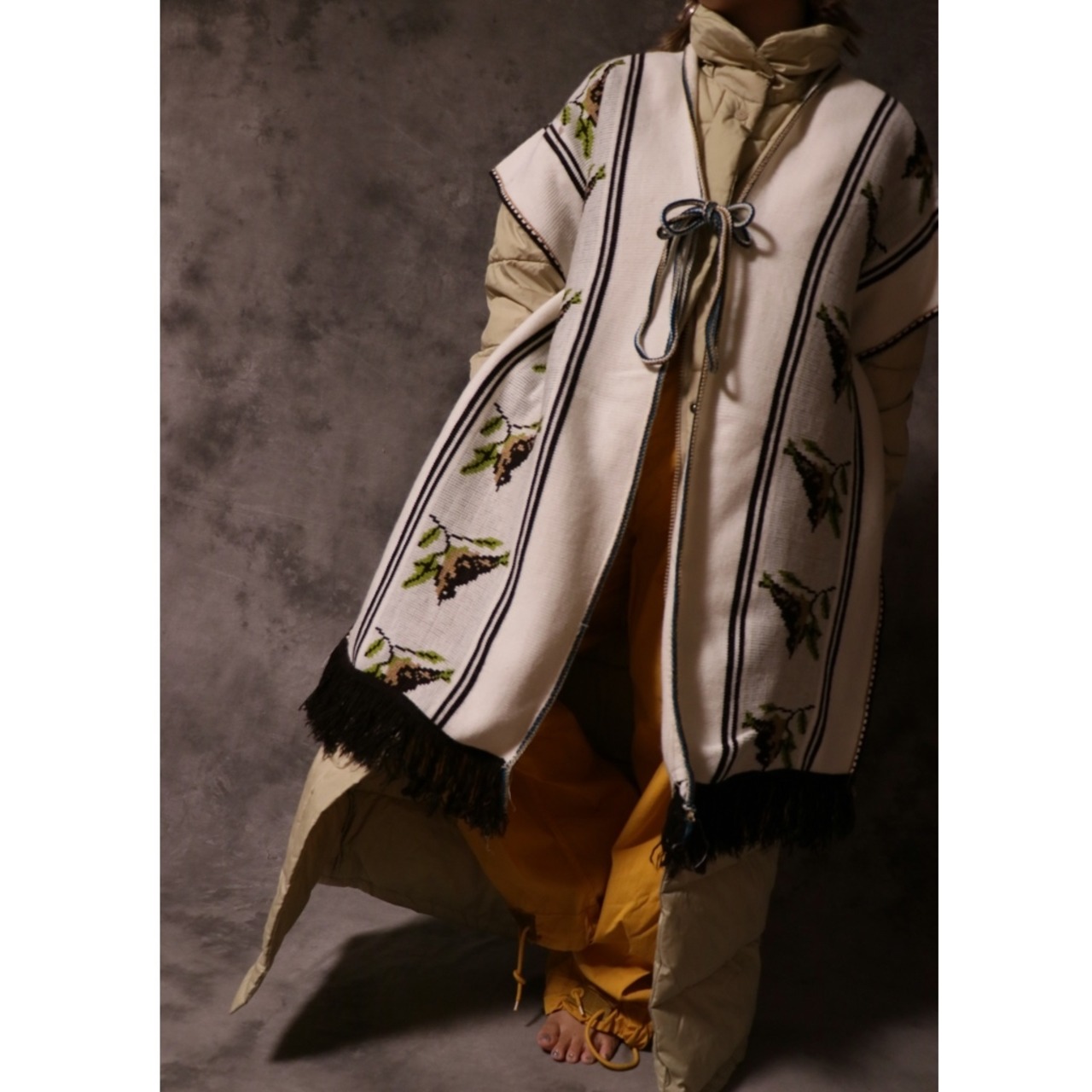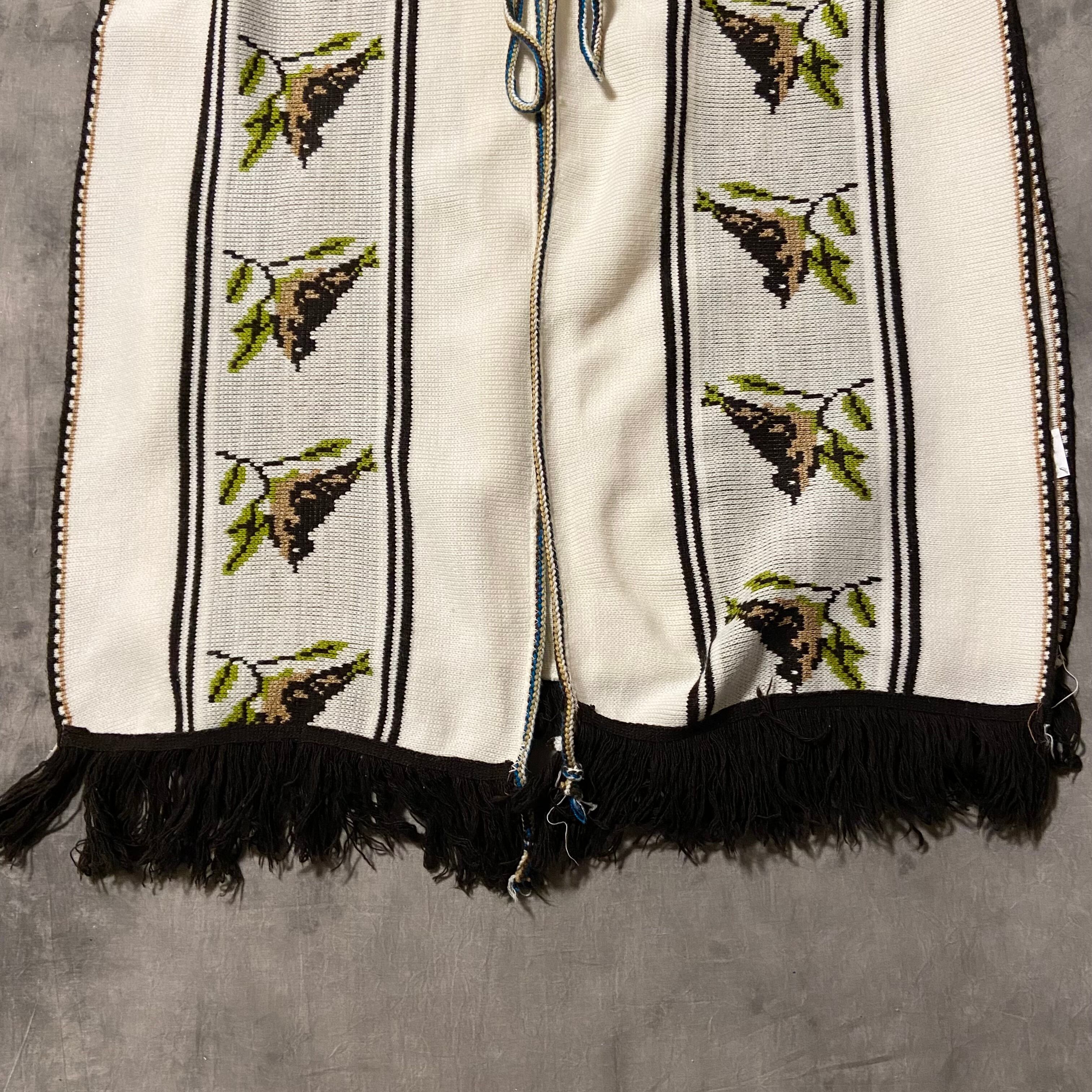 肩幅無し、身幅67cm、袖丈35cm(首元から採寸、)着丈103.5cm(内フリンジ8cm)