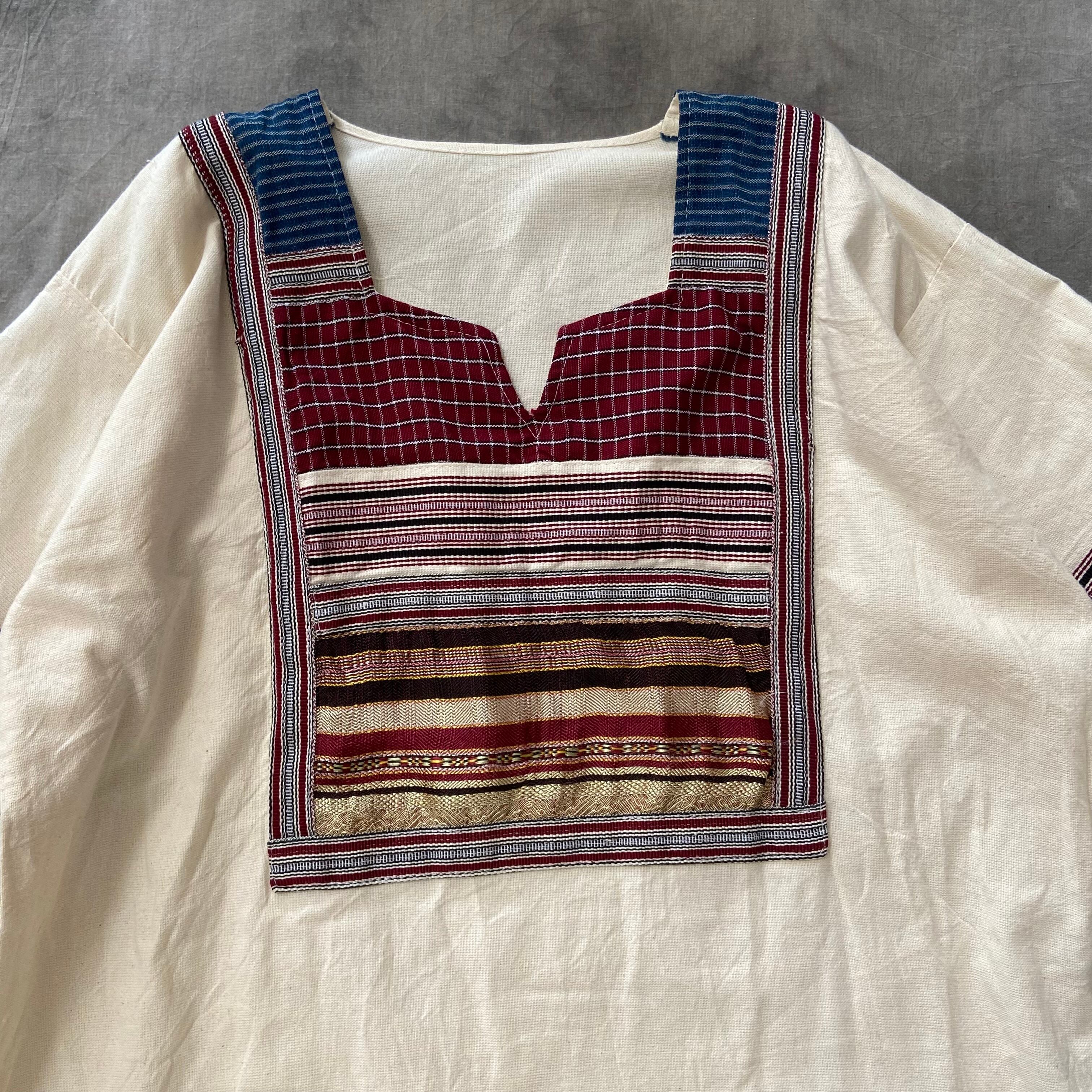 ナチュラリーな生成りボディに織りのデザインが切り替えられた珍しいデザインの1着!!