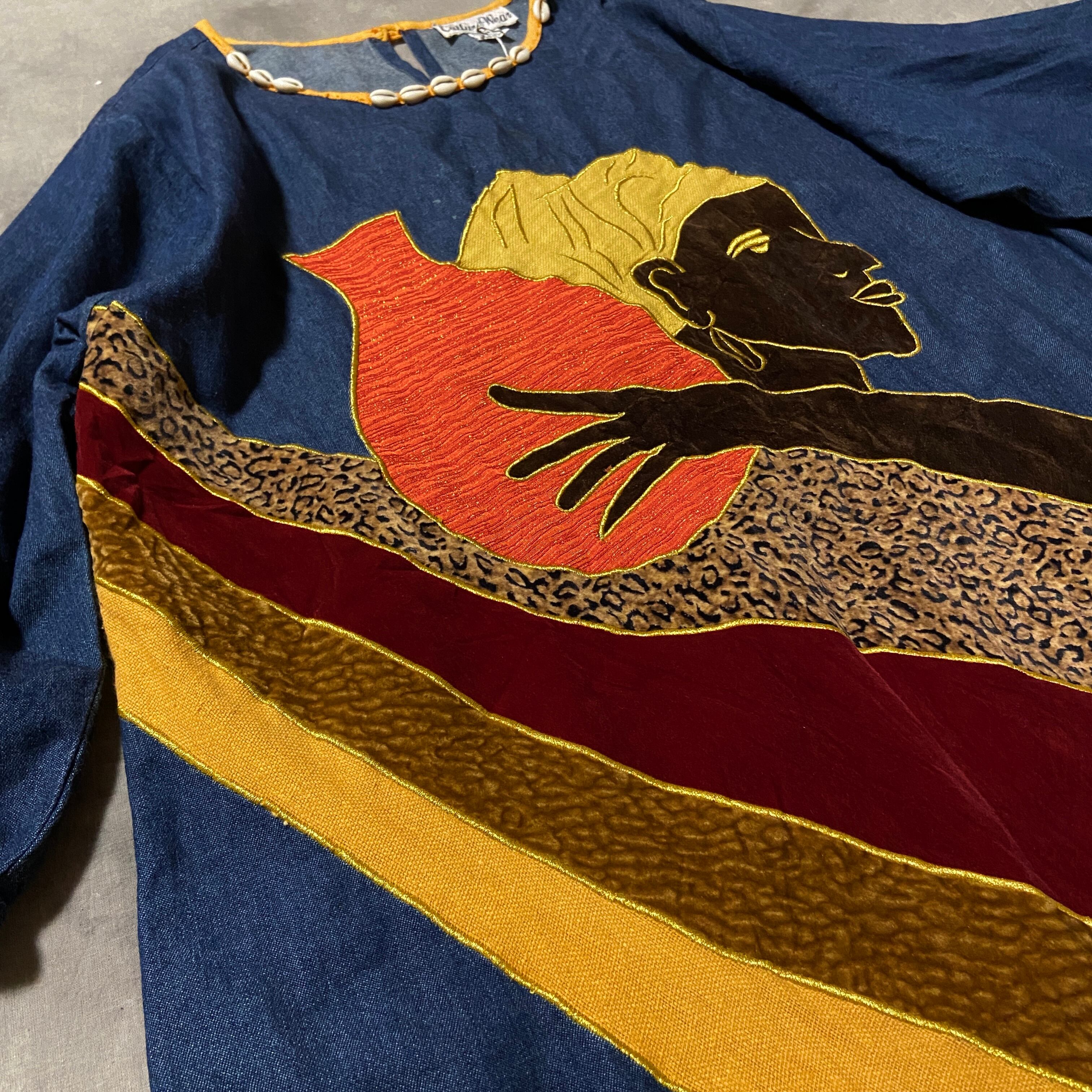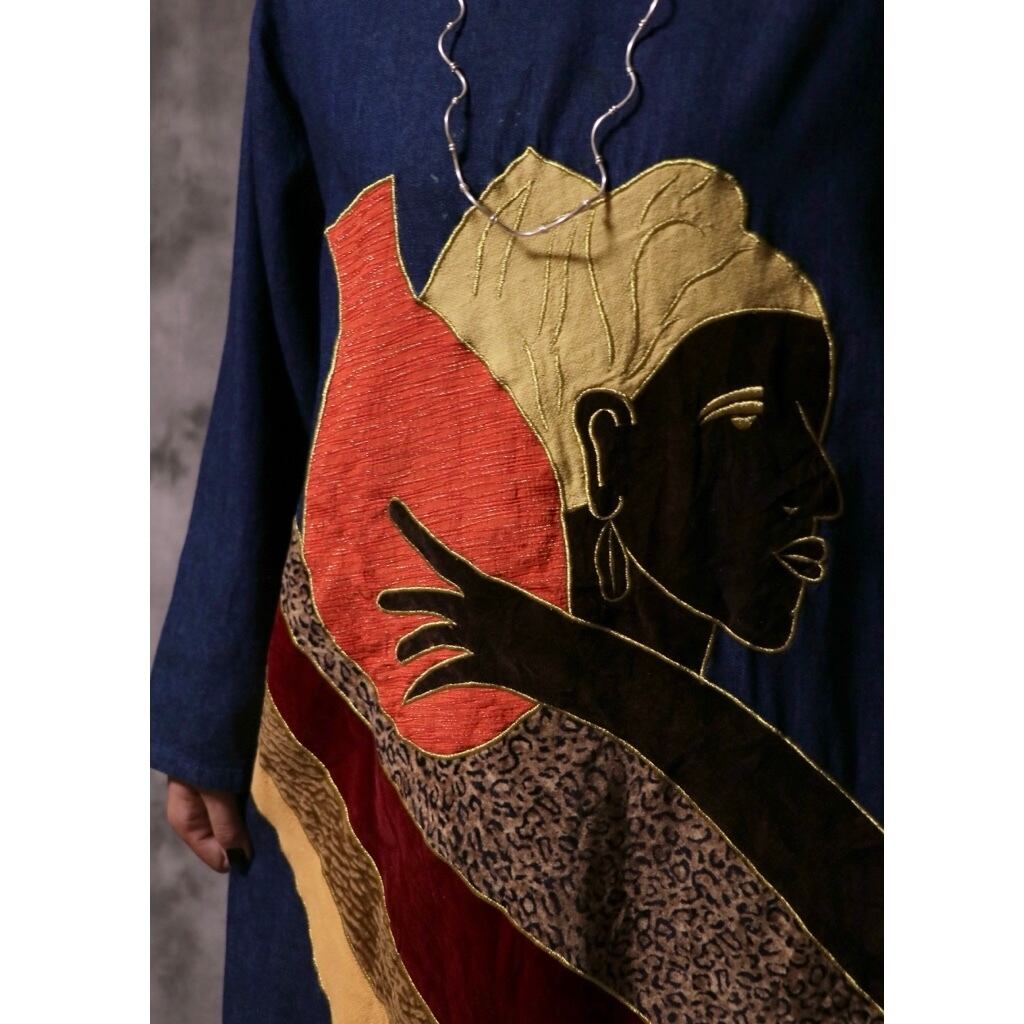 70-80s denim&velours dress