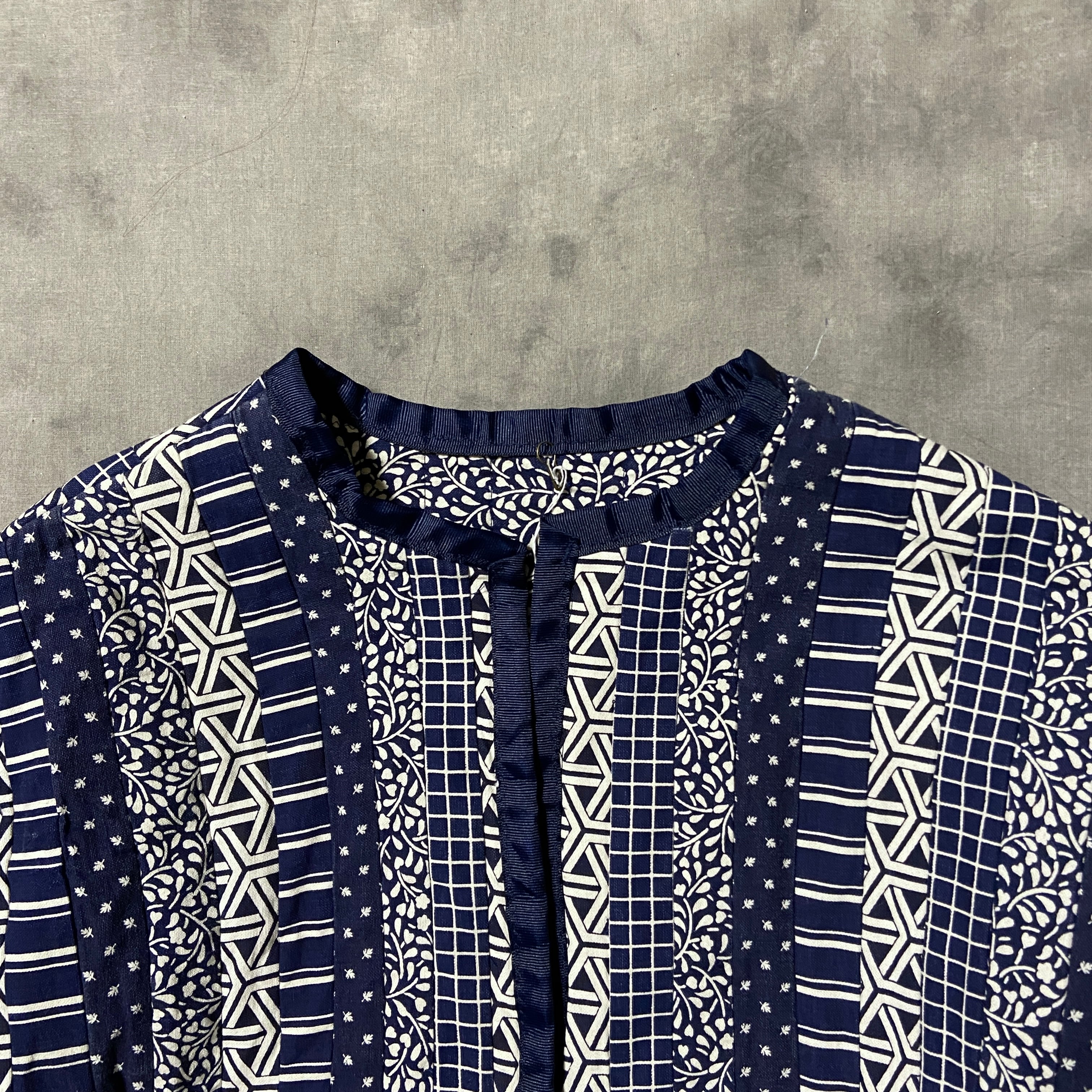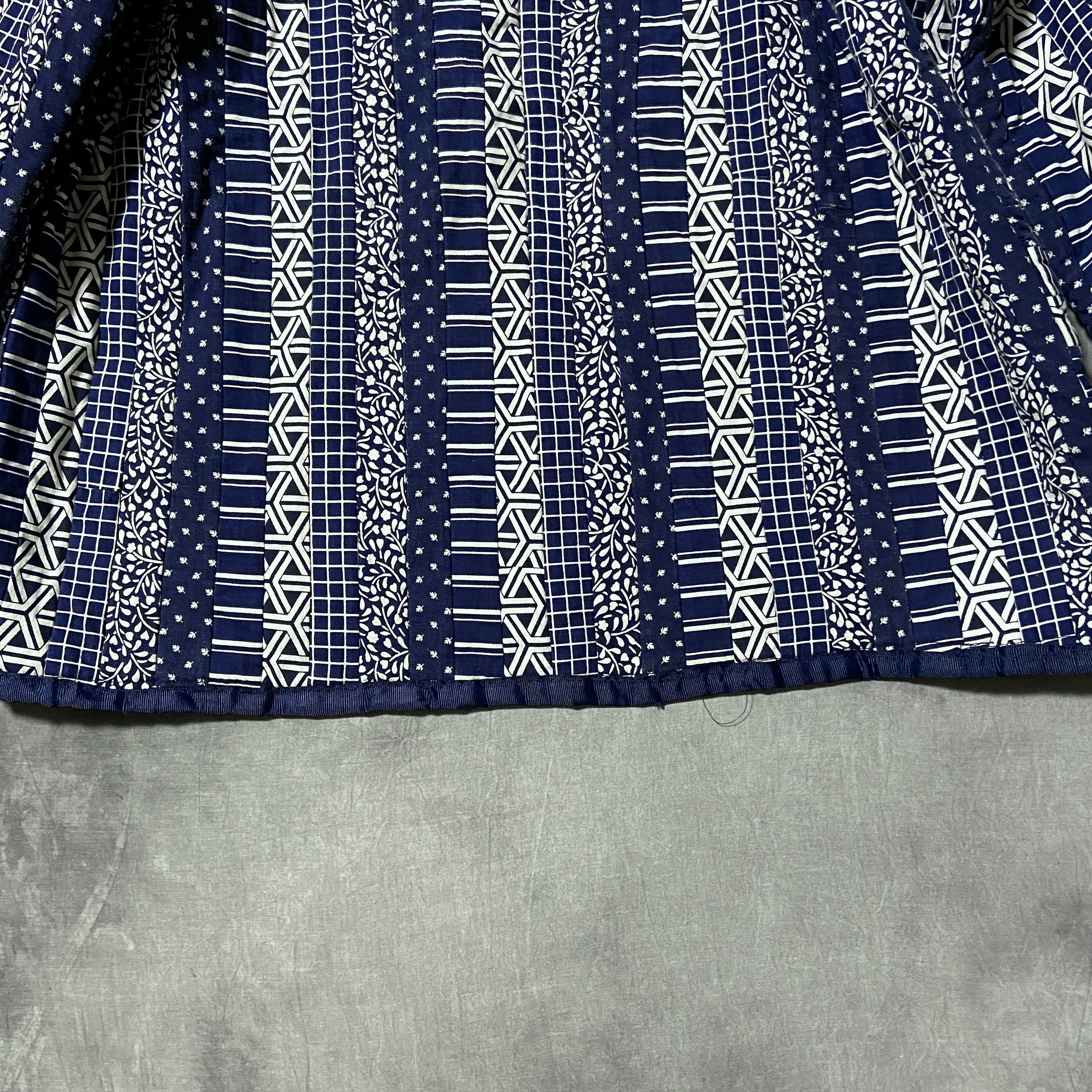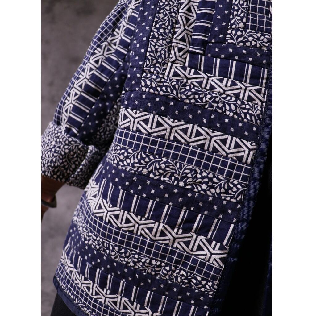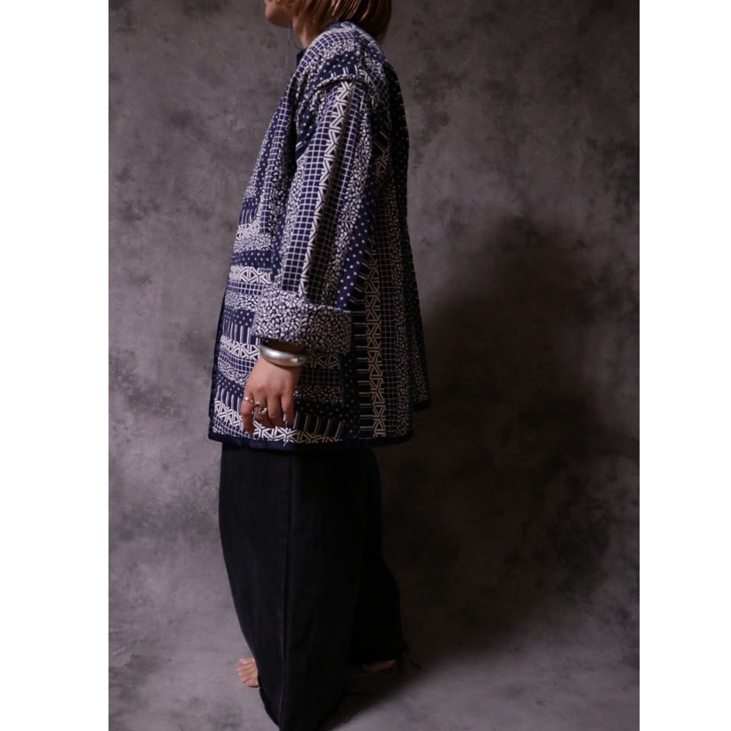 ブルーの統一されたカラーなので可愛らしくなりすぎずに着れるパッチワーク