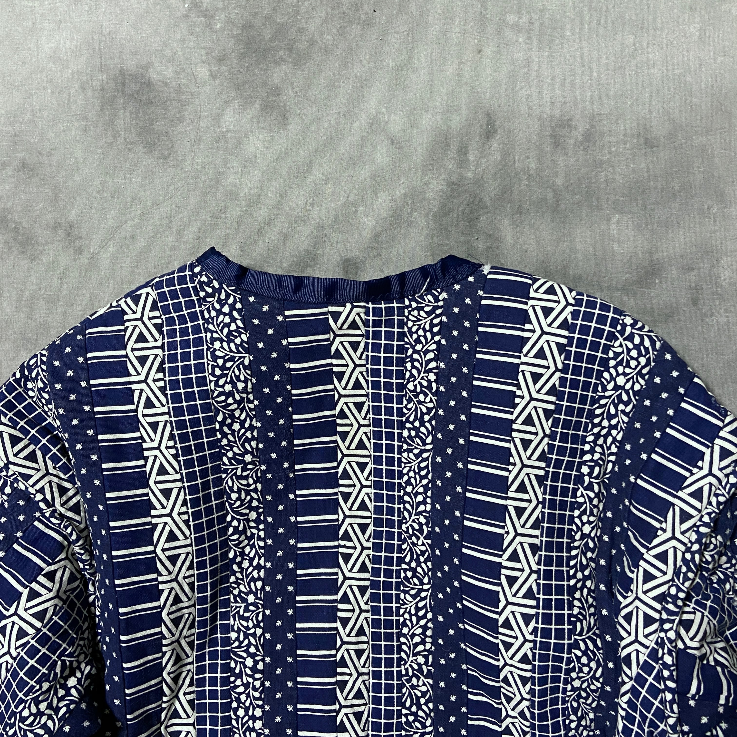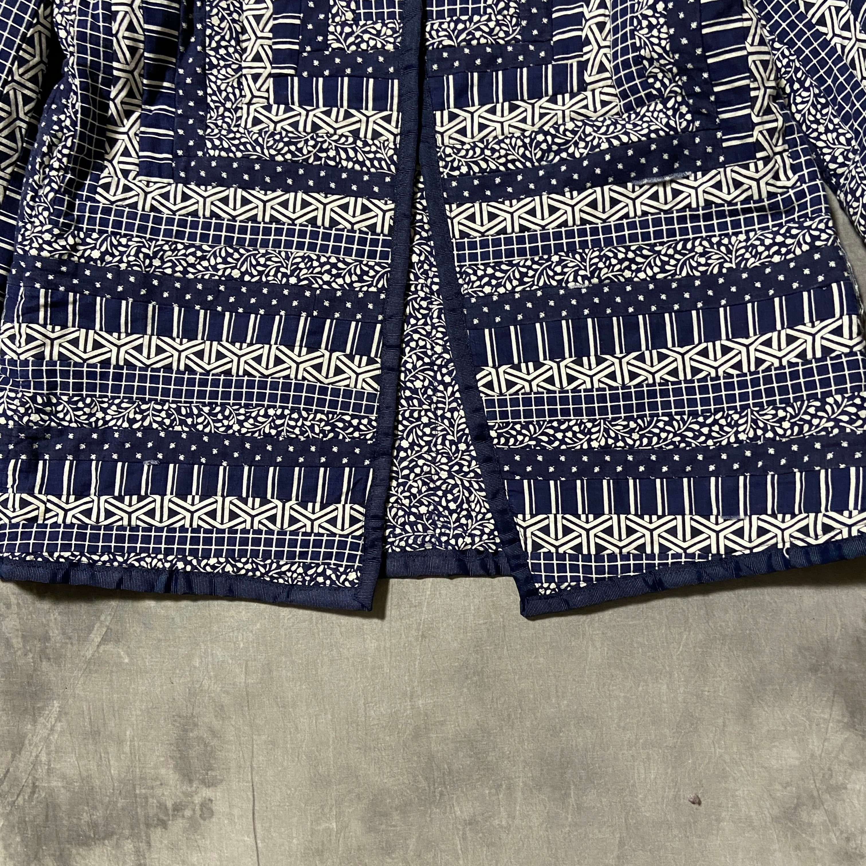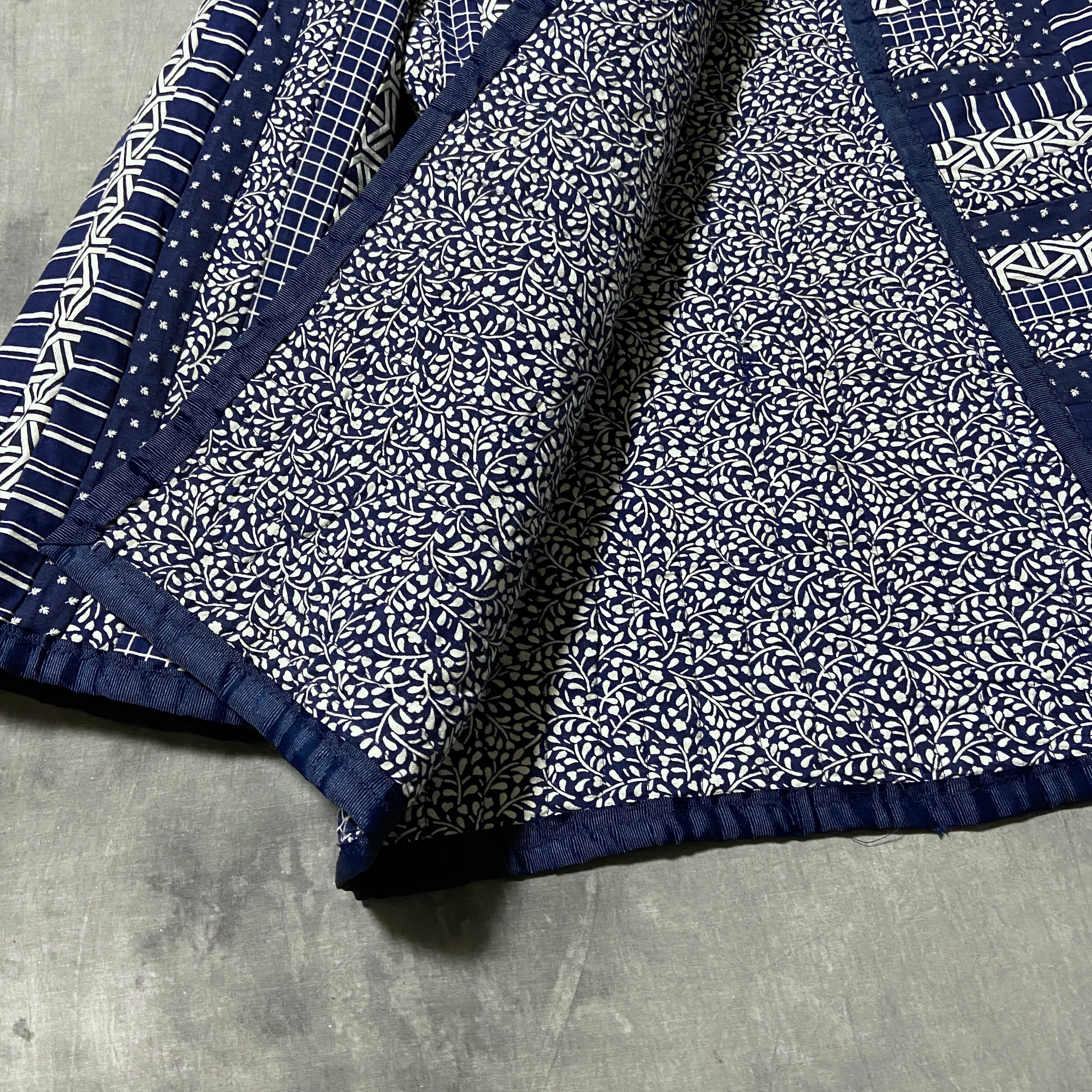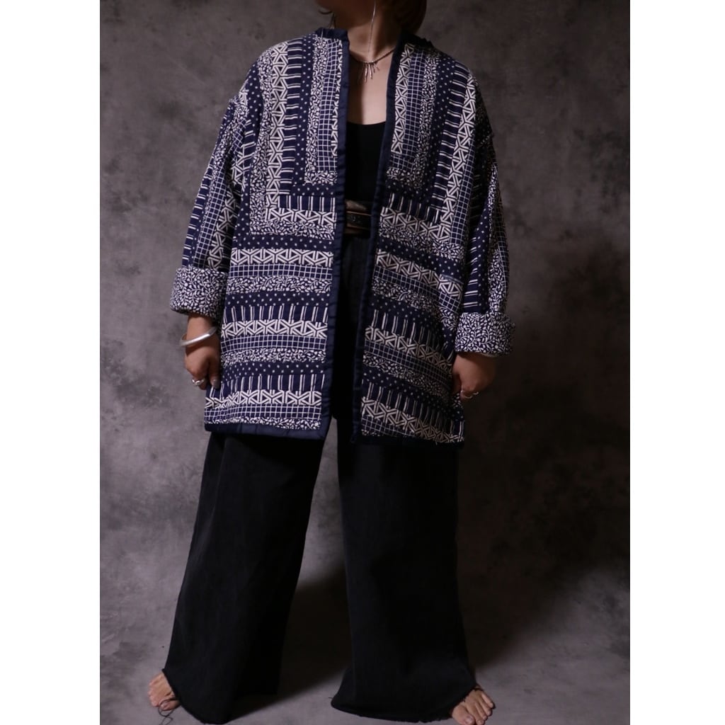 ブルーの統一されたカラーなので可愛らしくなりすぎずに着れるパッチワーク