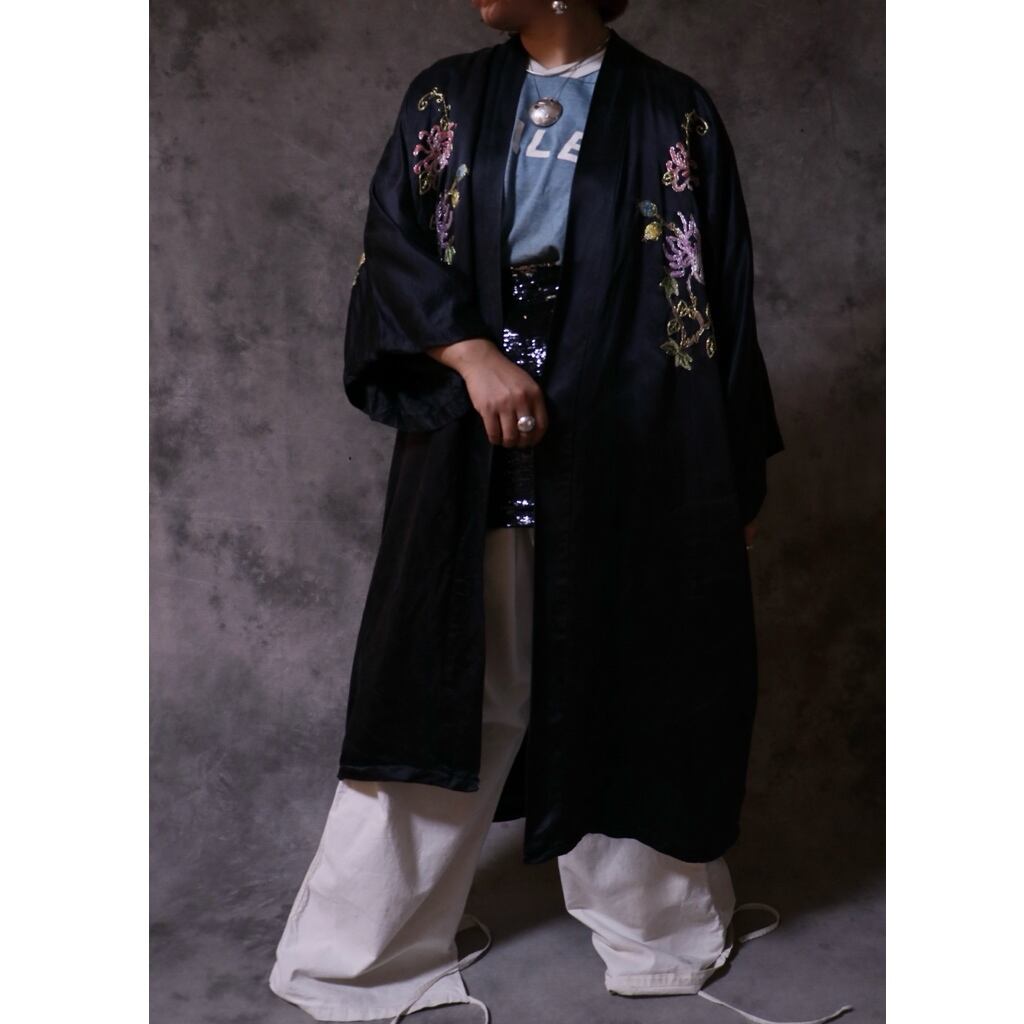 美しいシルクの黒地に施された繊細で上品な刺繍は全て手刺繍。信じられないくらい綺麗です。