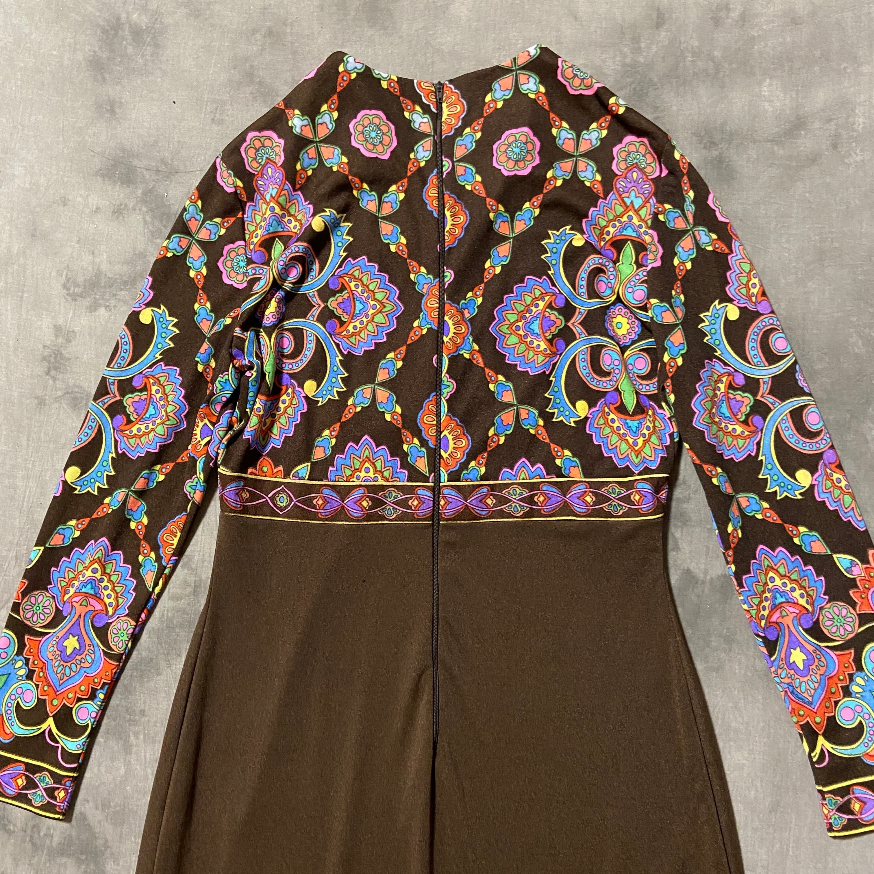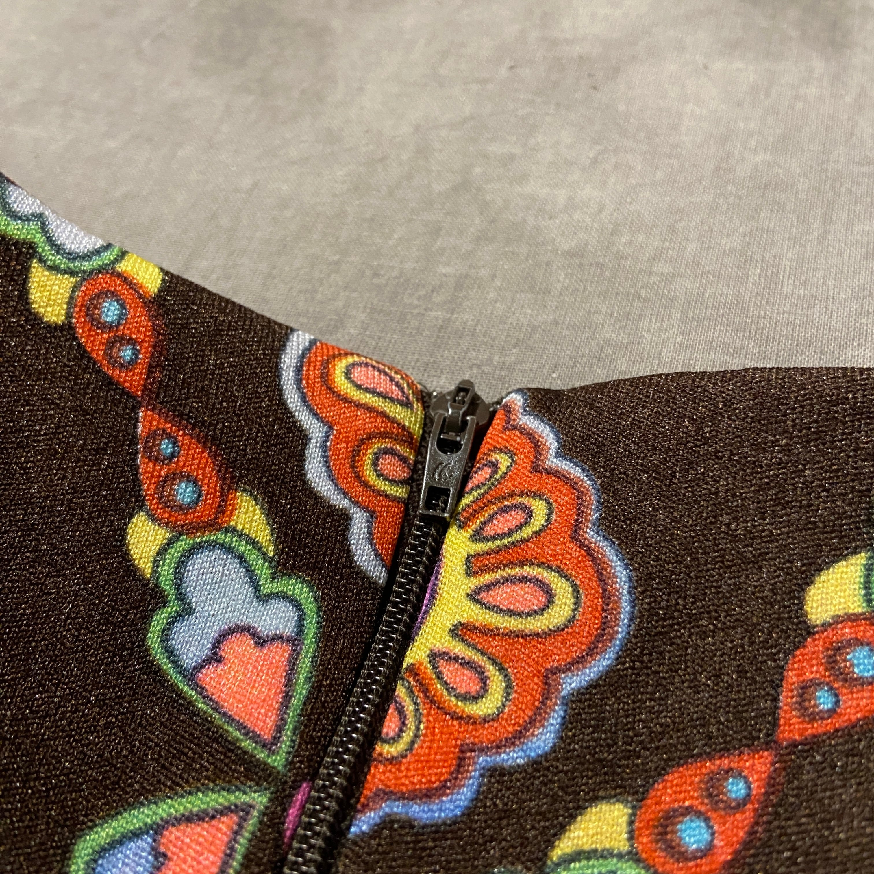 サイケデリックなプリントはこの時代らしいけど、茶色の面積が多くてちょっと控えめな感じが珍しくてたまらない1着。