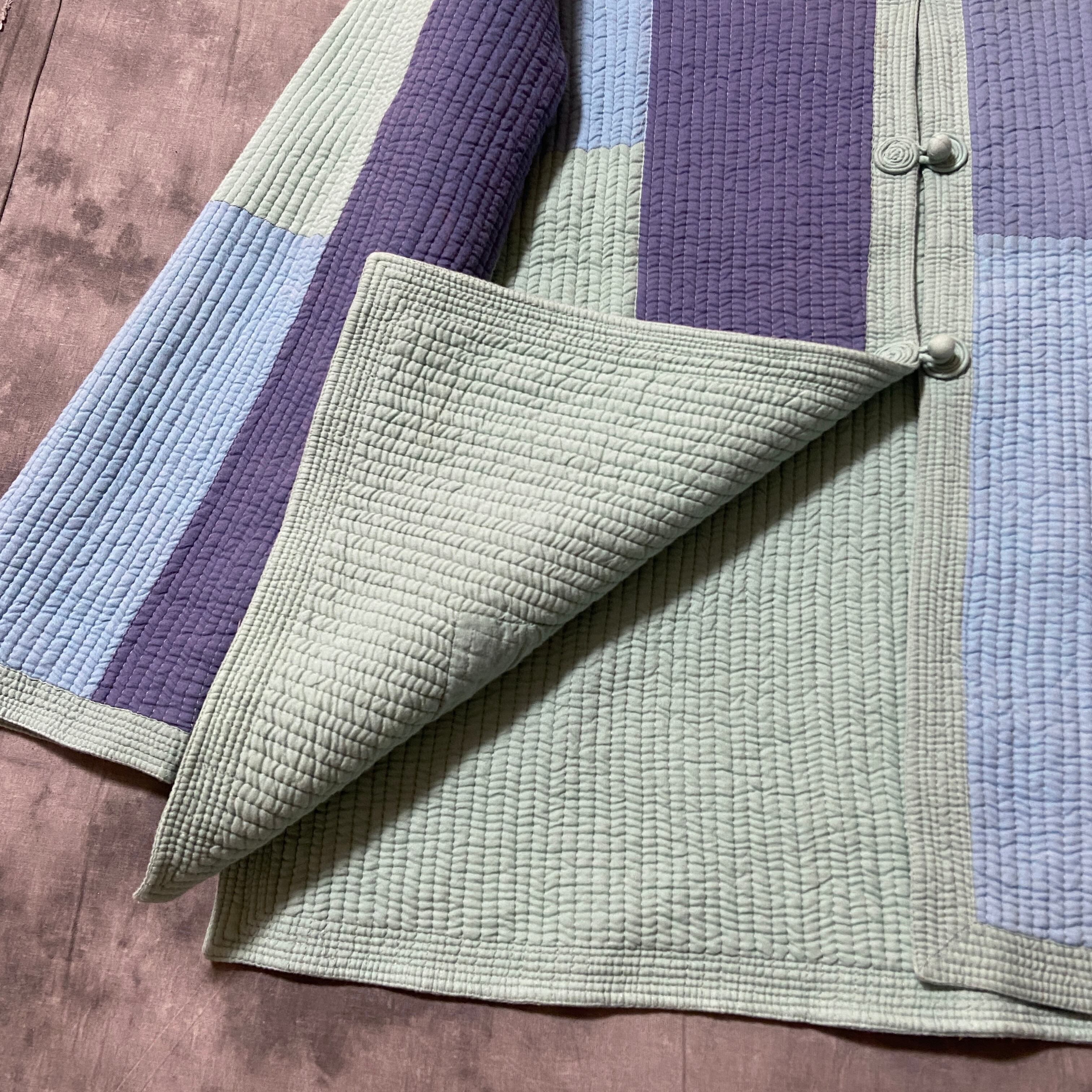 インドのカンタのような生地で、全体にステッチの入ったとても手の込んだ生地を使ったアイテム。