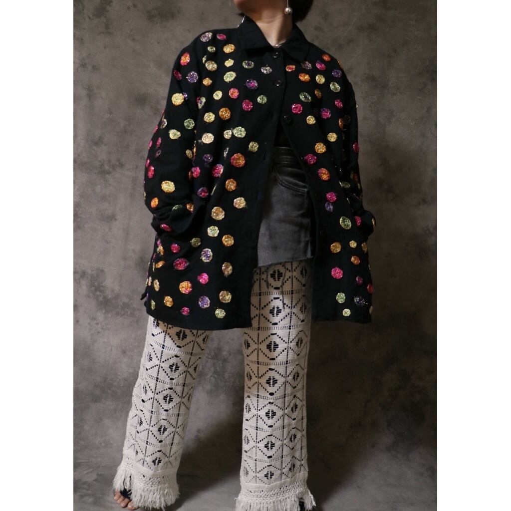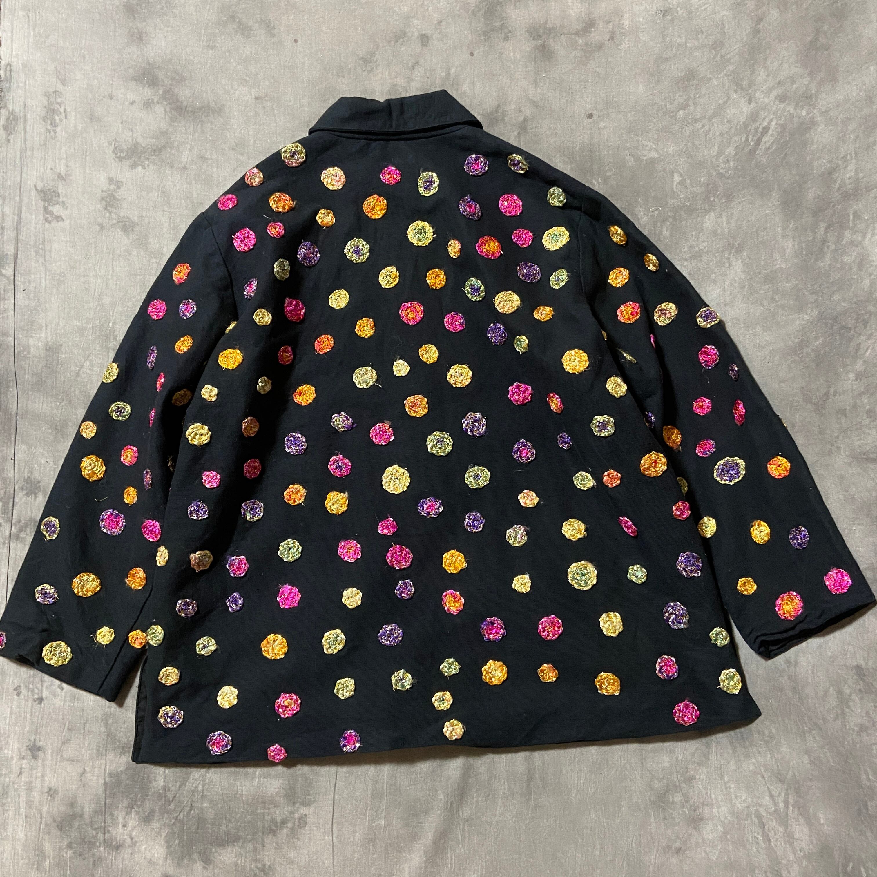 ドットの模様は紐?をぐるぐるして縫い付けてあってめちゃくちゃ手が込んでます!!!!!!!